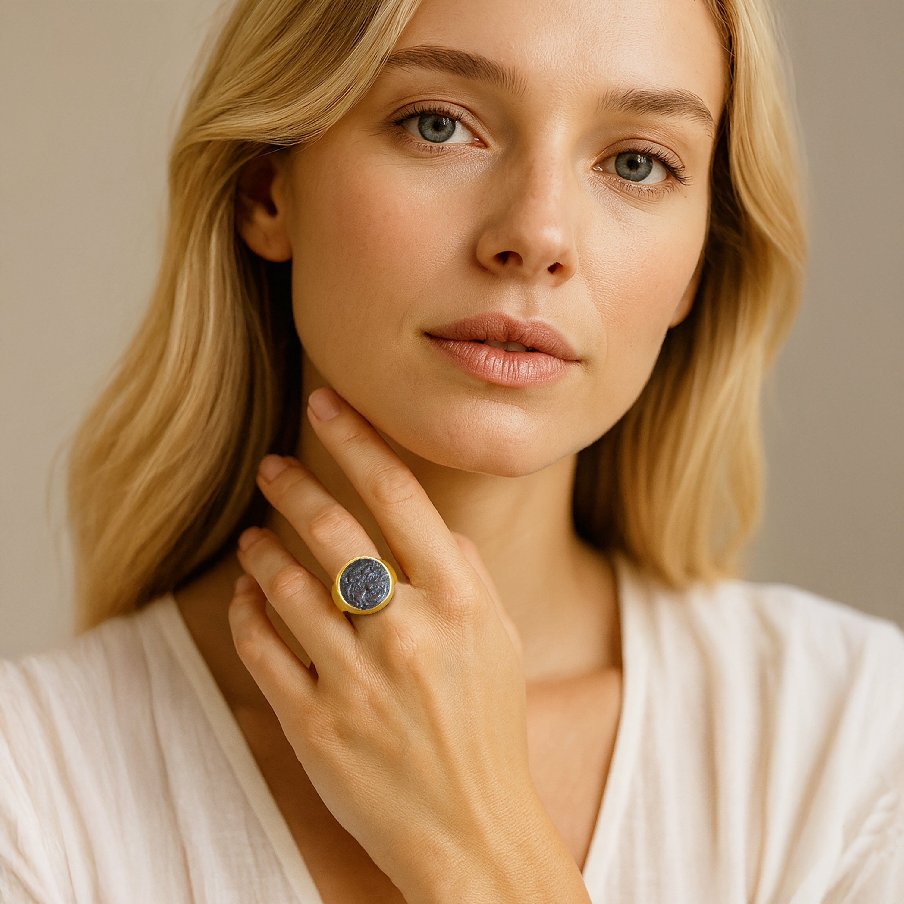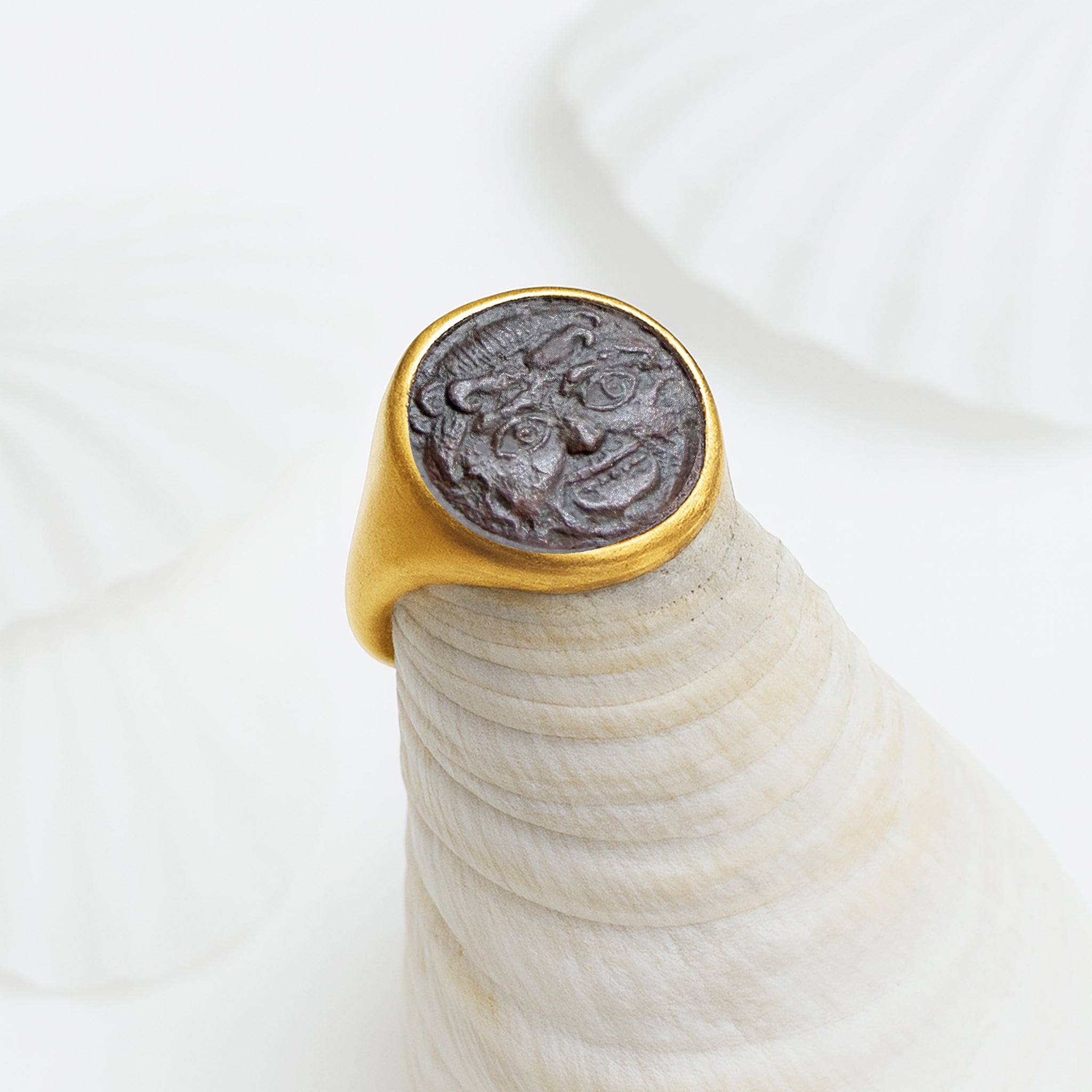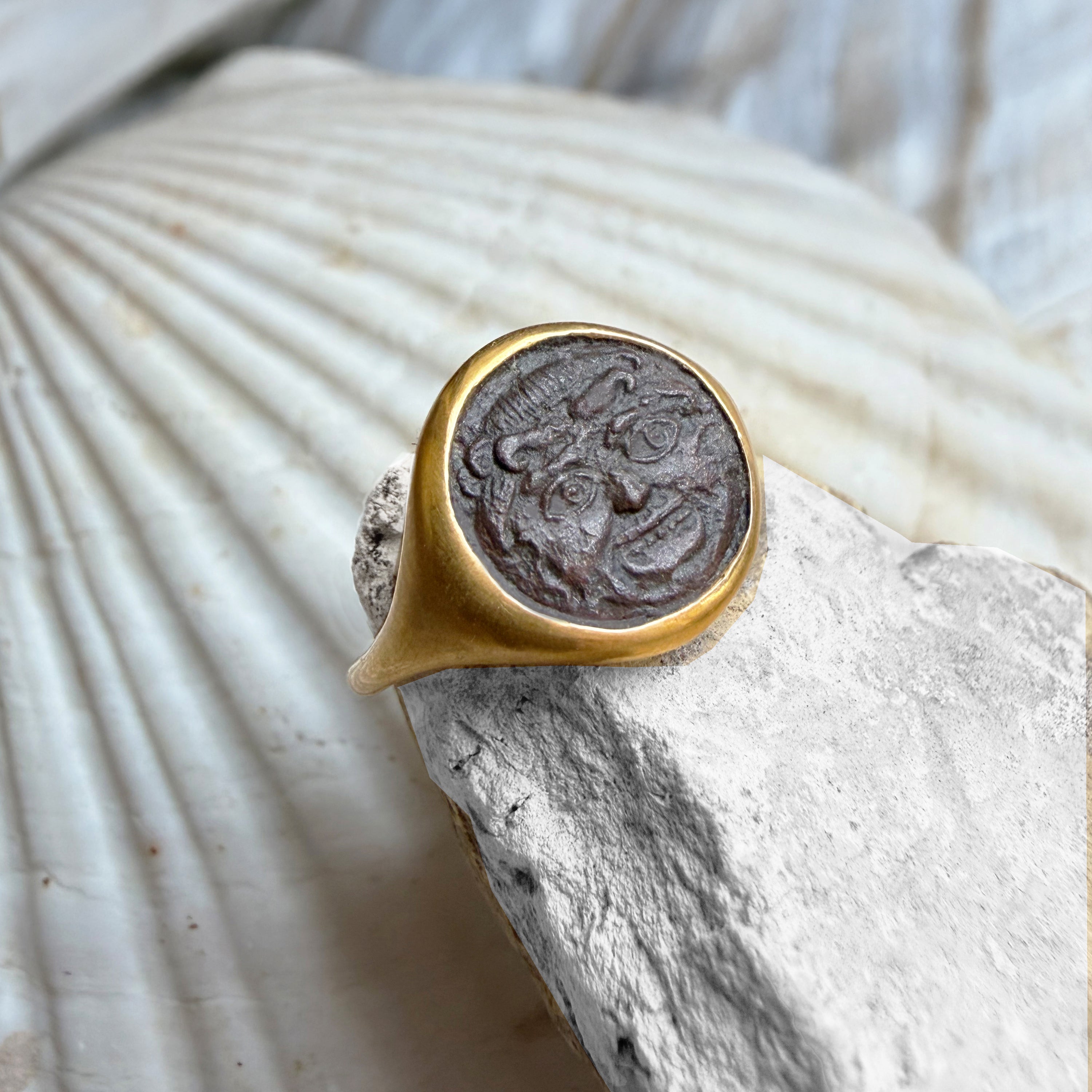 Step into a realm where ancient Rome meets modern elegance with our enchanting Serra rings. Featuring authentic Roman coins delicately embraced in either 18kt Yellow Gold or 925 Sterling Silver settings, these pieces are more than just jewelry: they're captivating tales of history and style, woven into every glance.