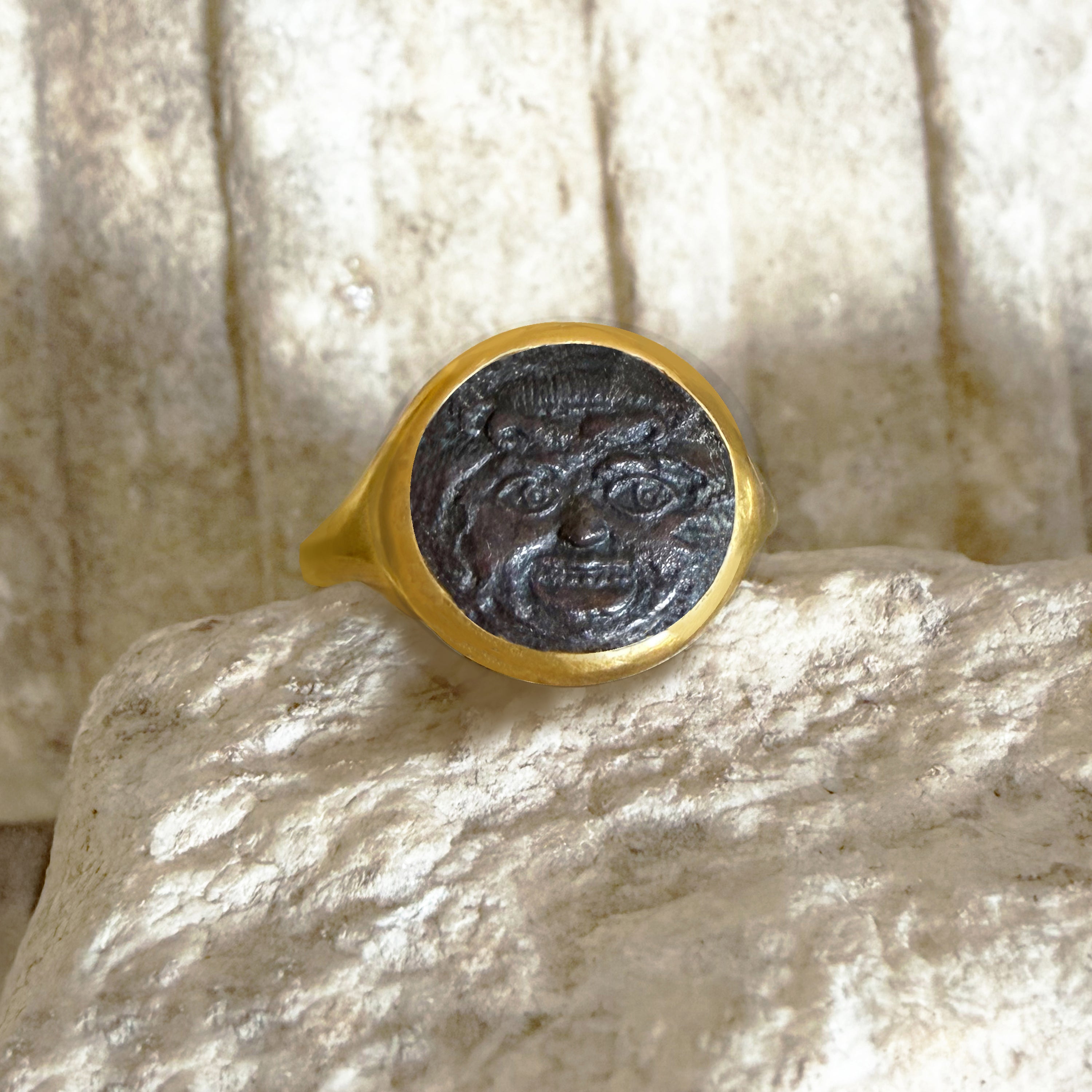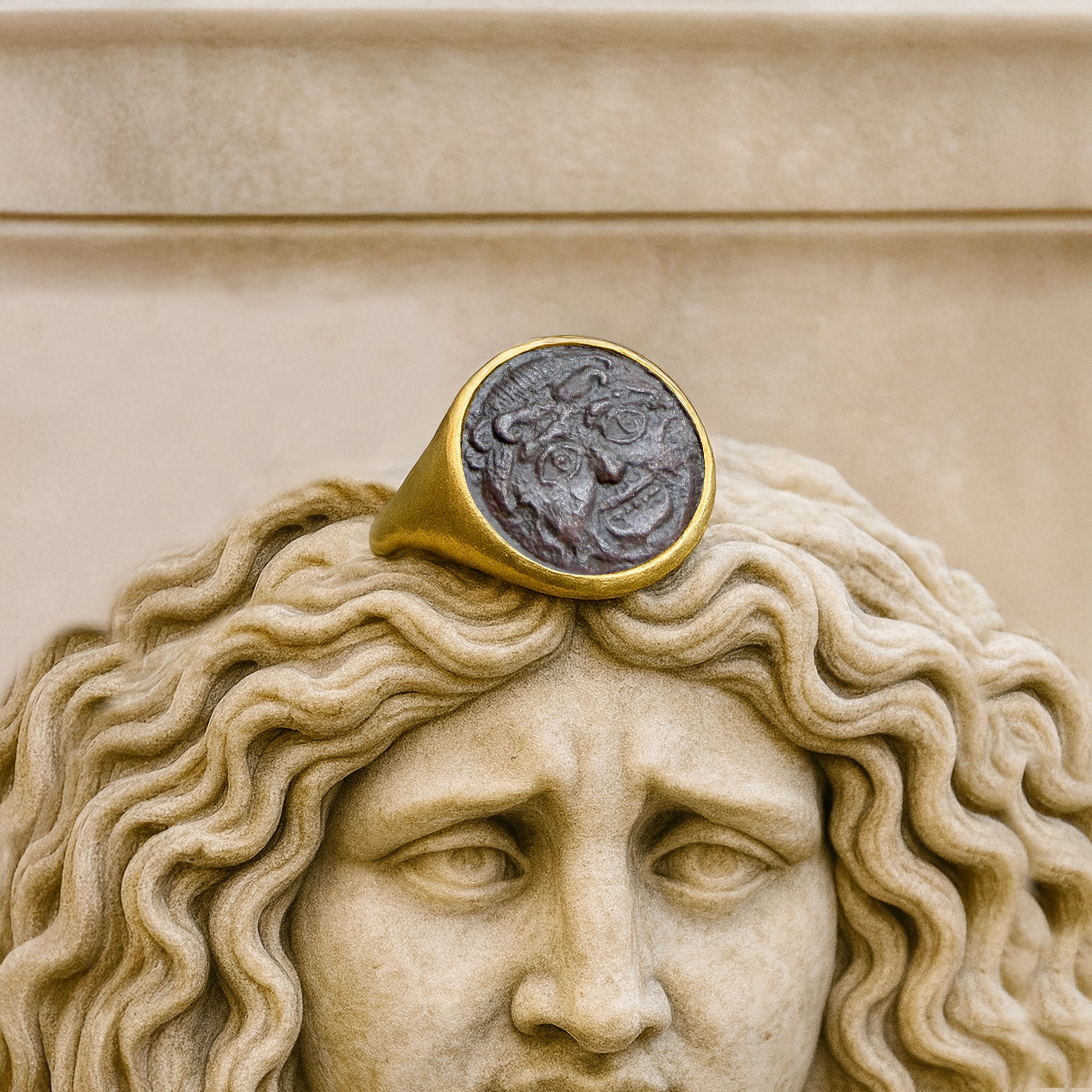 Step into a realm where ancient Rome meets modern elegance with our enchanting Serra rings. Featuring authentic Roman coins delicately embraced in either 18kt Yellow Gold or 925 Sterling Silver settings, these pieces are more than just jewelry: they're captivating tales of history and style, woven into every glance.