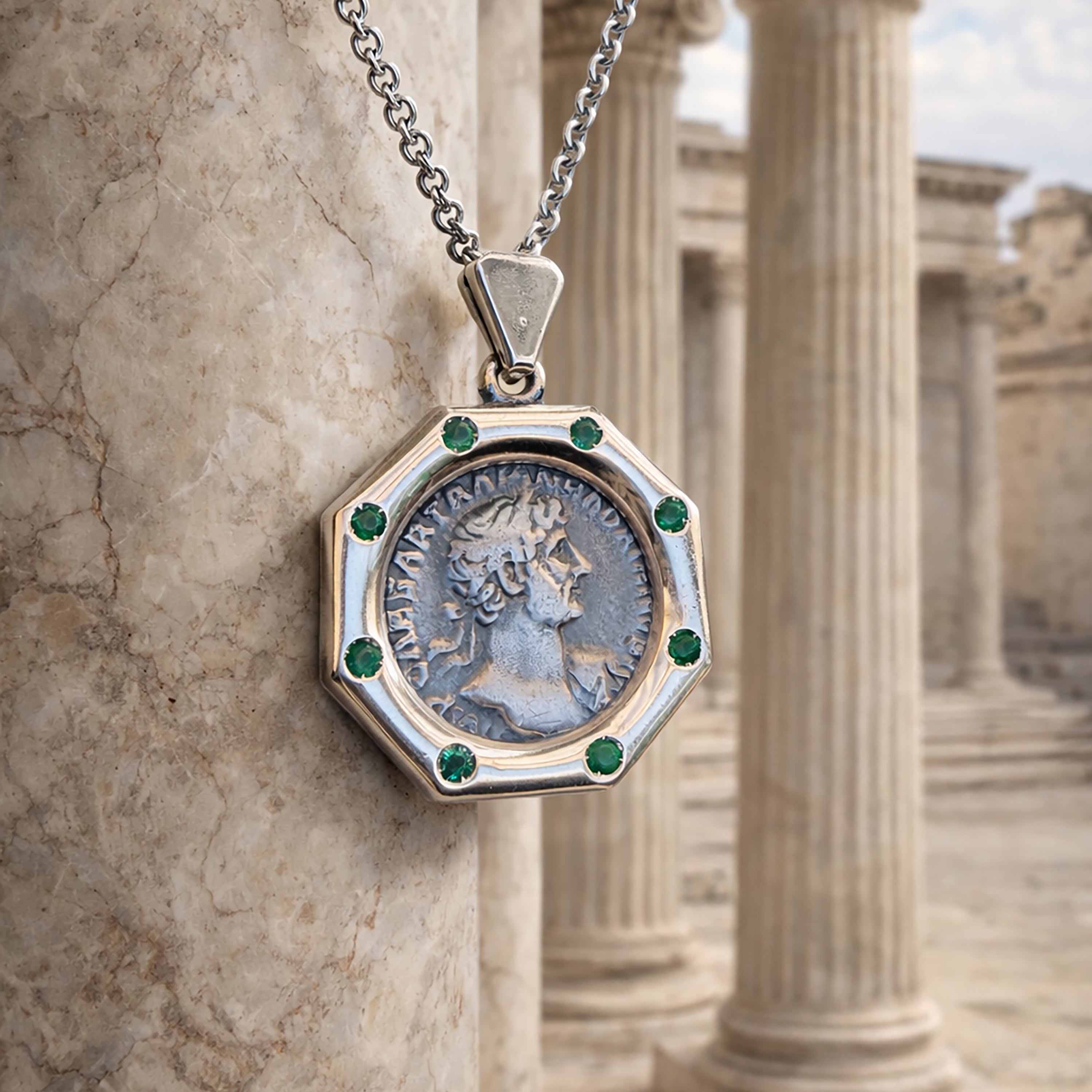 The practice of setting coins to create jewelry dates back to the Greek world and became widespread in Rome from the first to third centuries AD. The Romans believed in the talismanic powers of jewels and valued coins as amulets, giving them a higher worth and utility. At our brand, we continue this ancient tradition by creating unique pieces of jewelry that honor Rome's rich history and serve as symbols of personal significance for those who wear them.