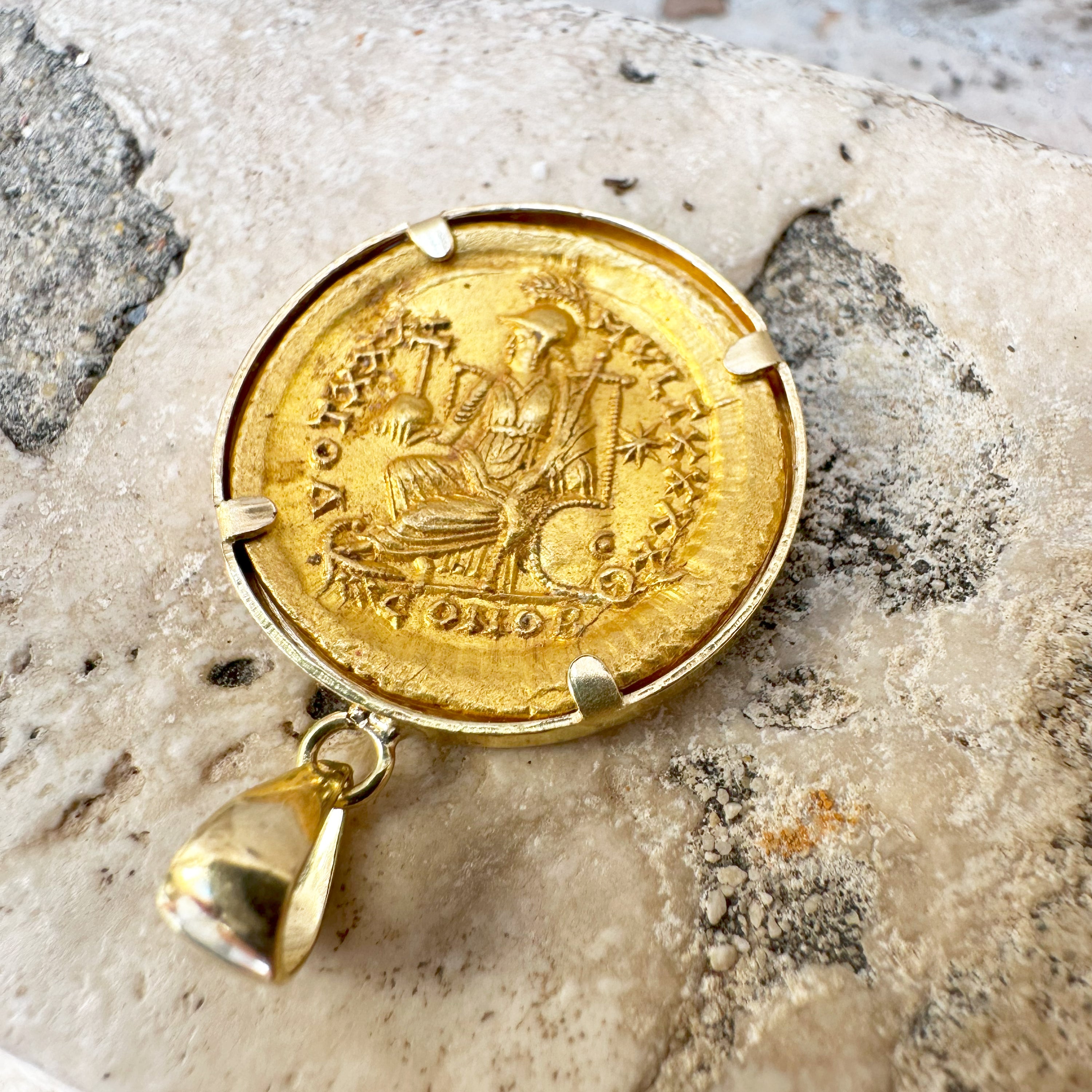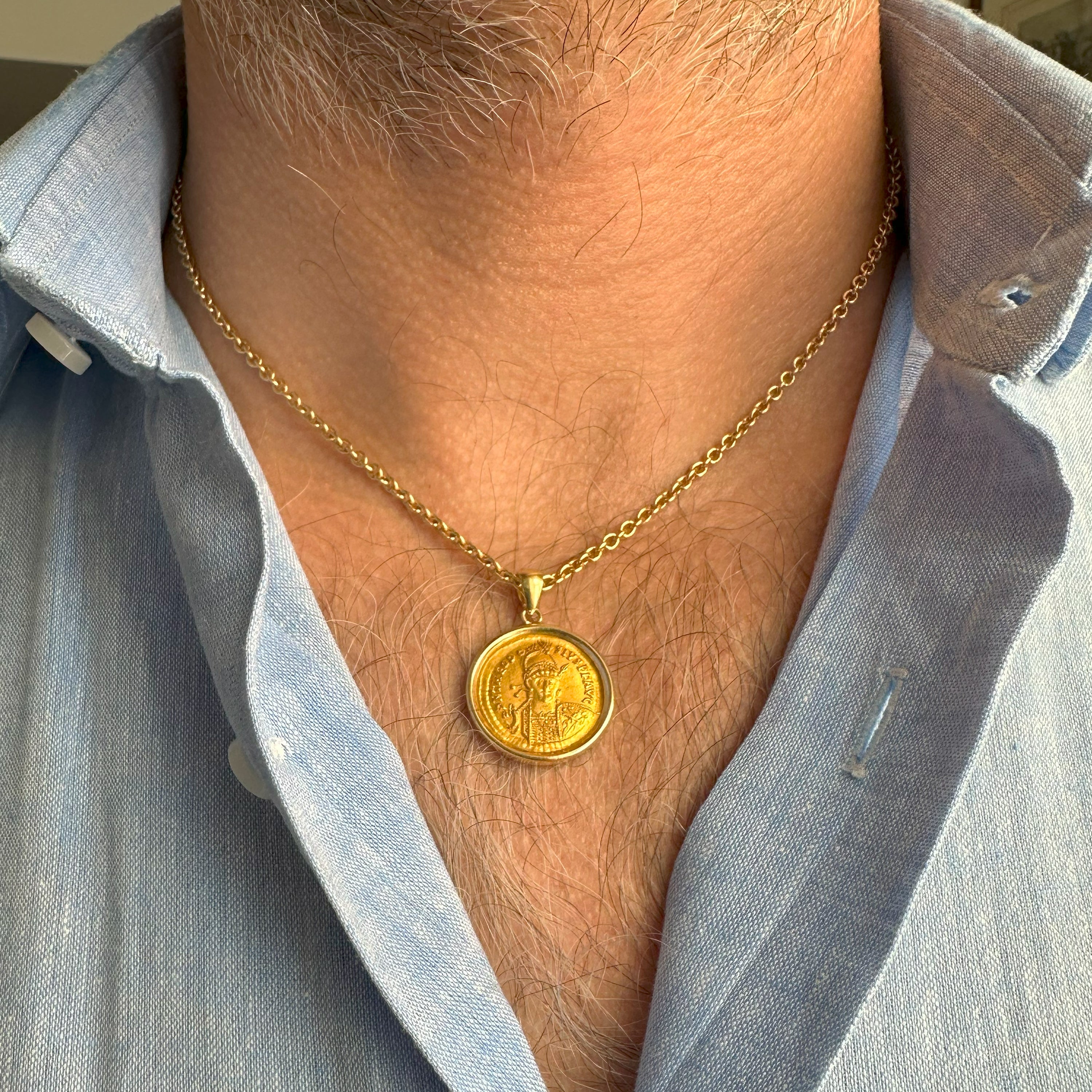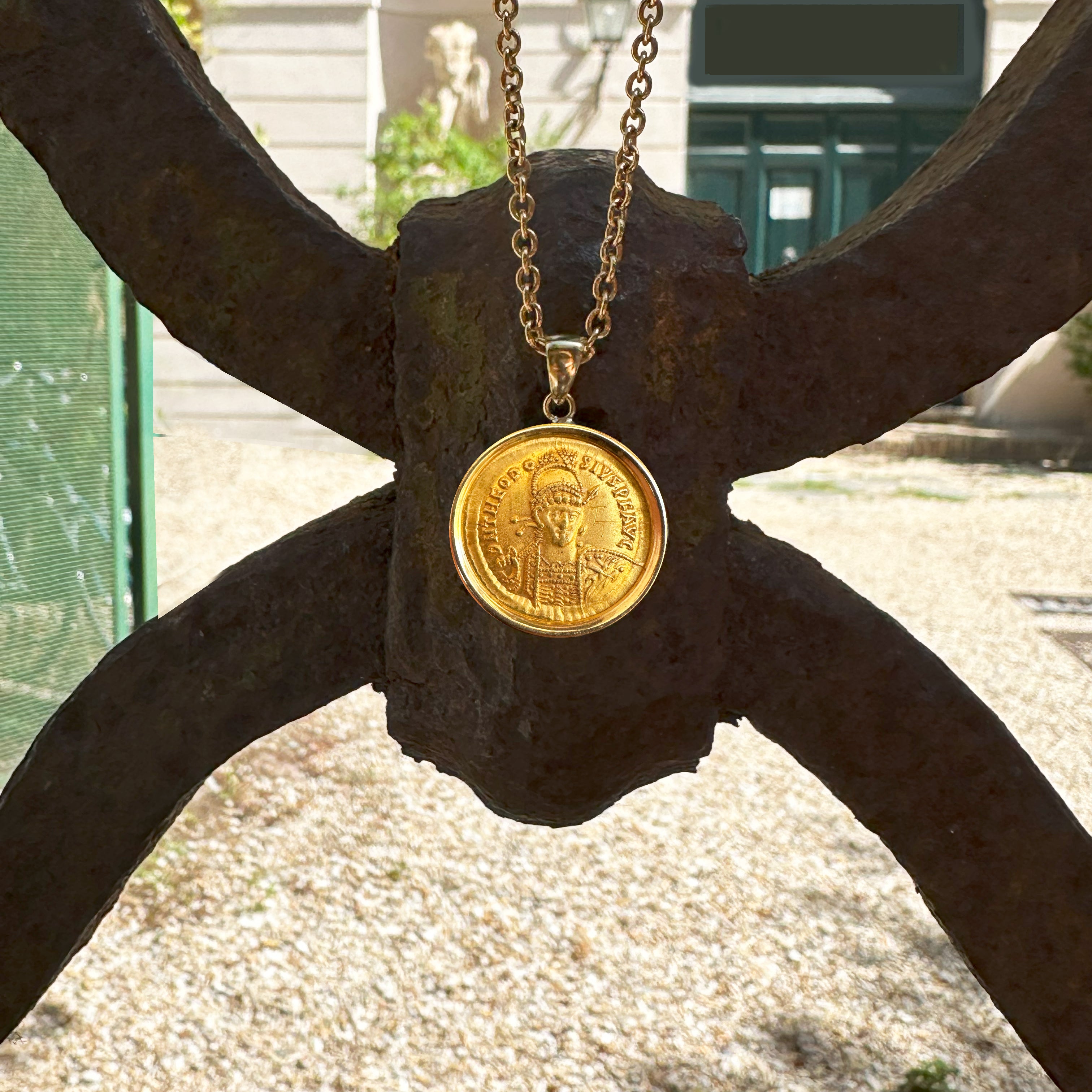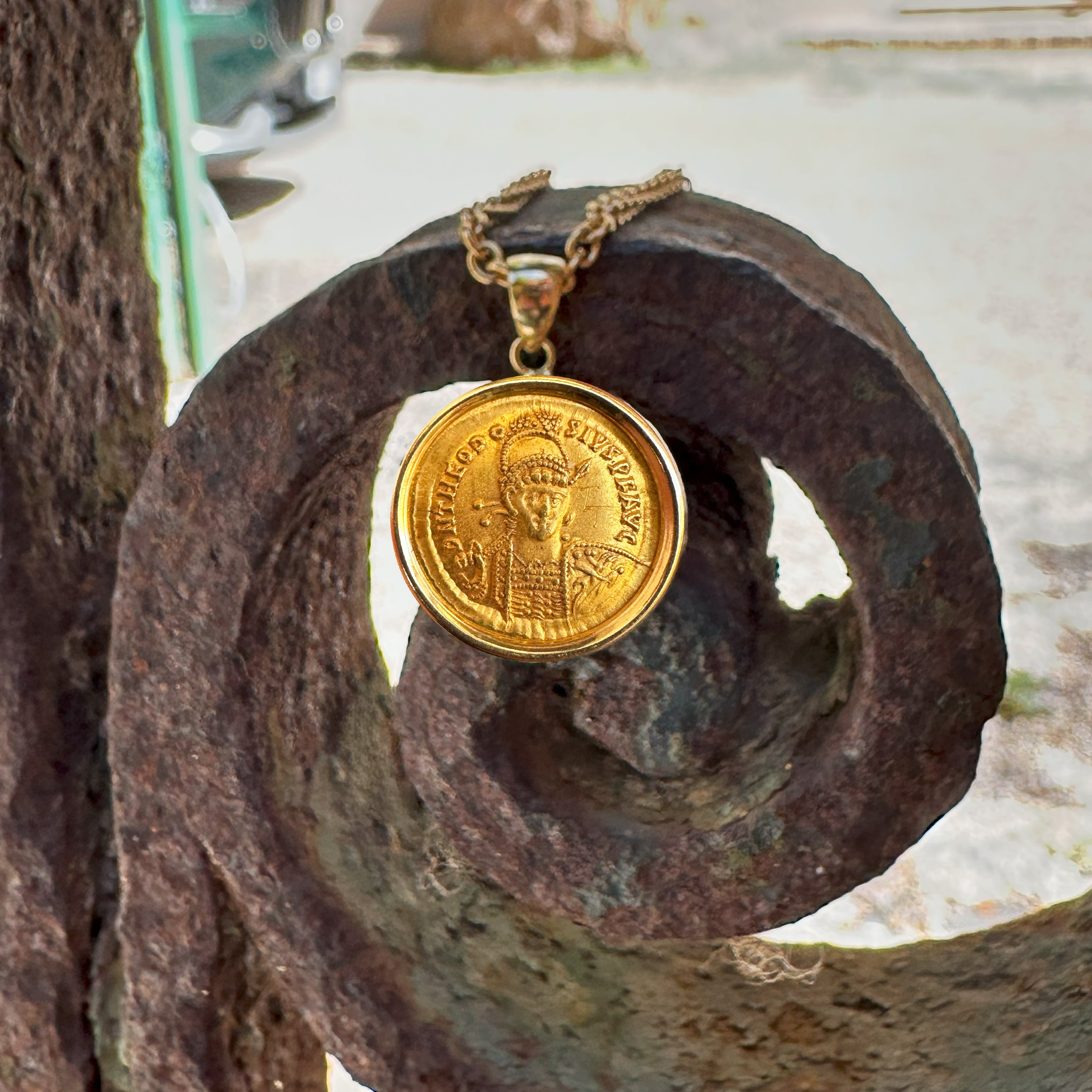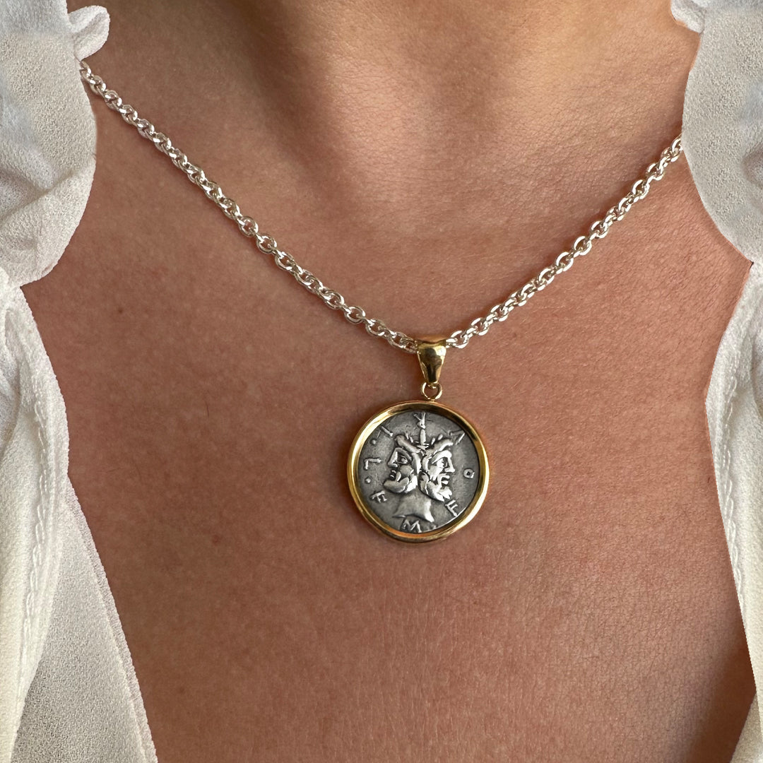 The practice of setting coins to create jewelry dates back to the Greek world and became widespread in Rome from the first to third centuries AD. The Romans believed in the talismanic powers of jewels and valued coins as amulets, giving them a higher worth and utility. At our brand, we continue this ancient tradition by creating unique pieces of jewelry that honor Rome's rich history and serve as symbols of personal significance for those who wear them.