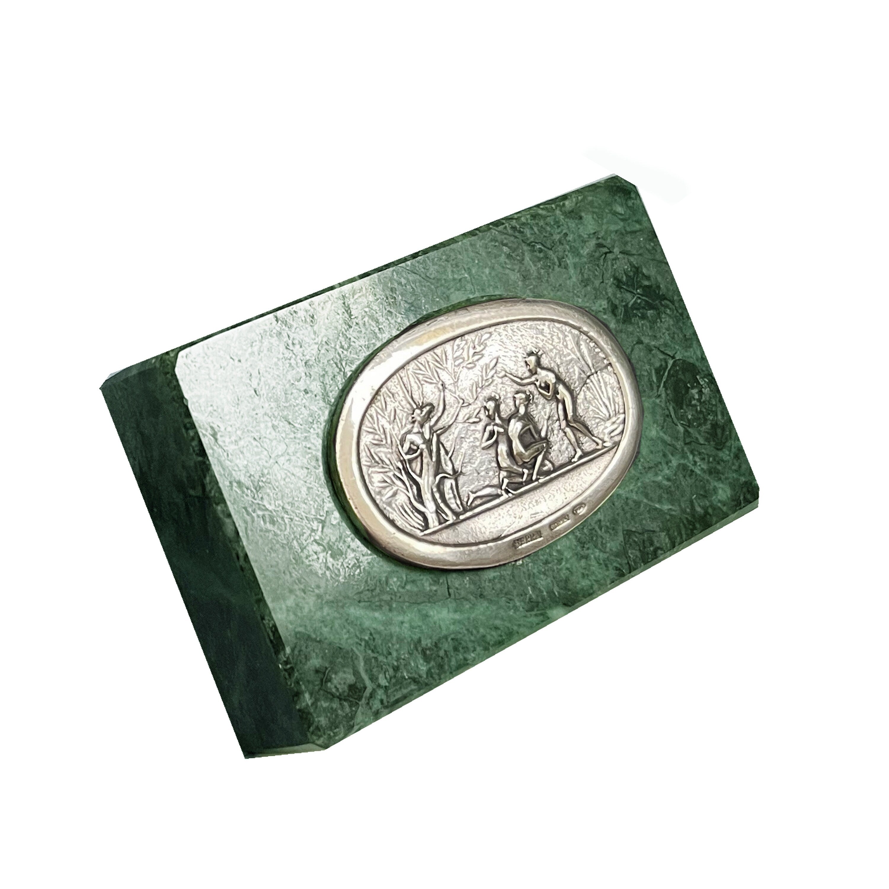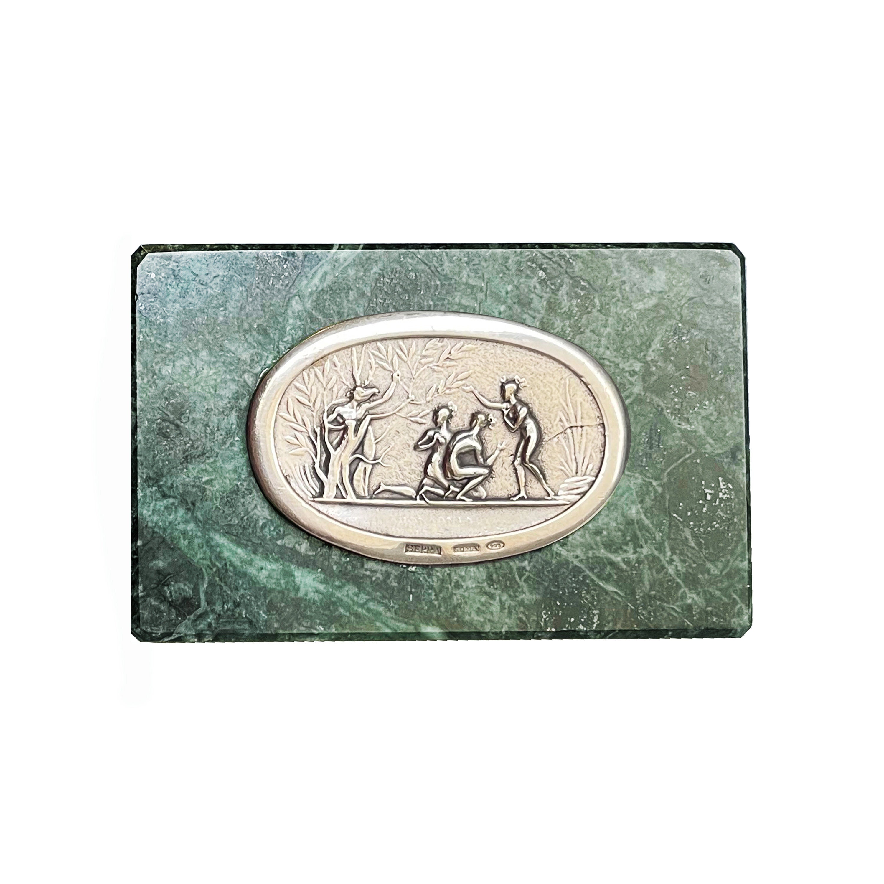 God Dionysus and Bacchantes sterling silver plaque (on Italian Green Alpi marble)