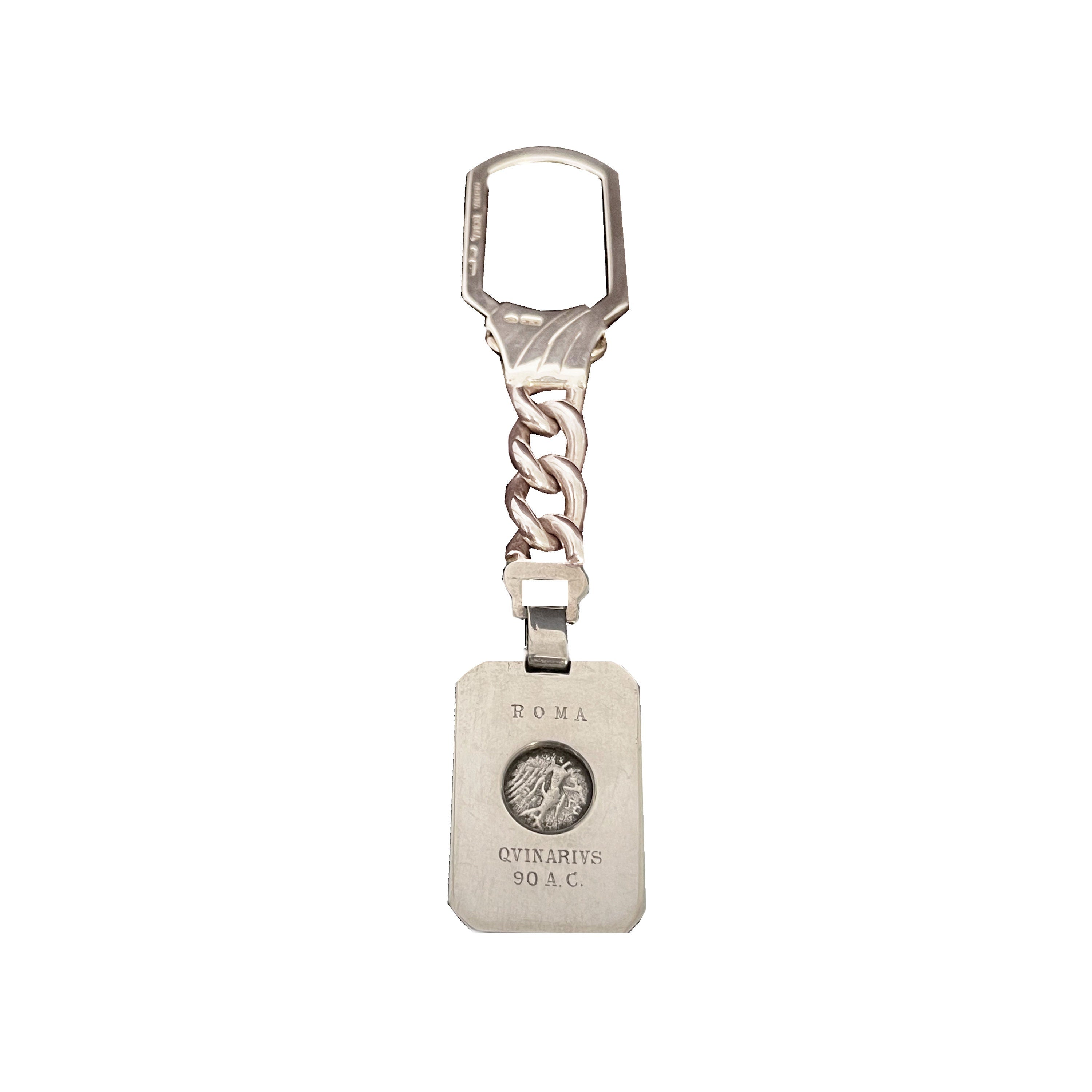 Roman coin (90 BC) depicting the god Apollo mounted in a sterling silver keychain