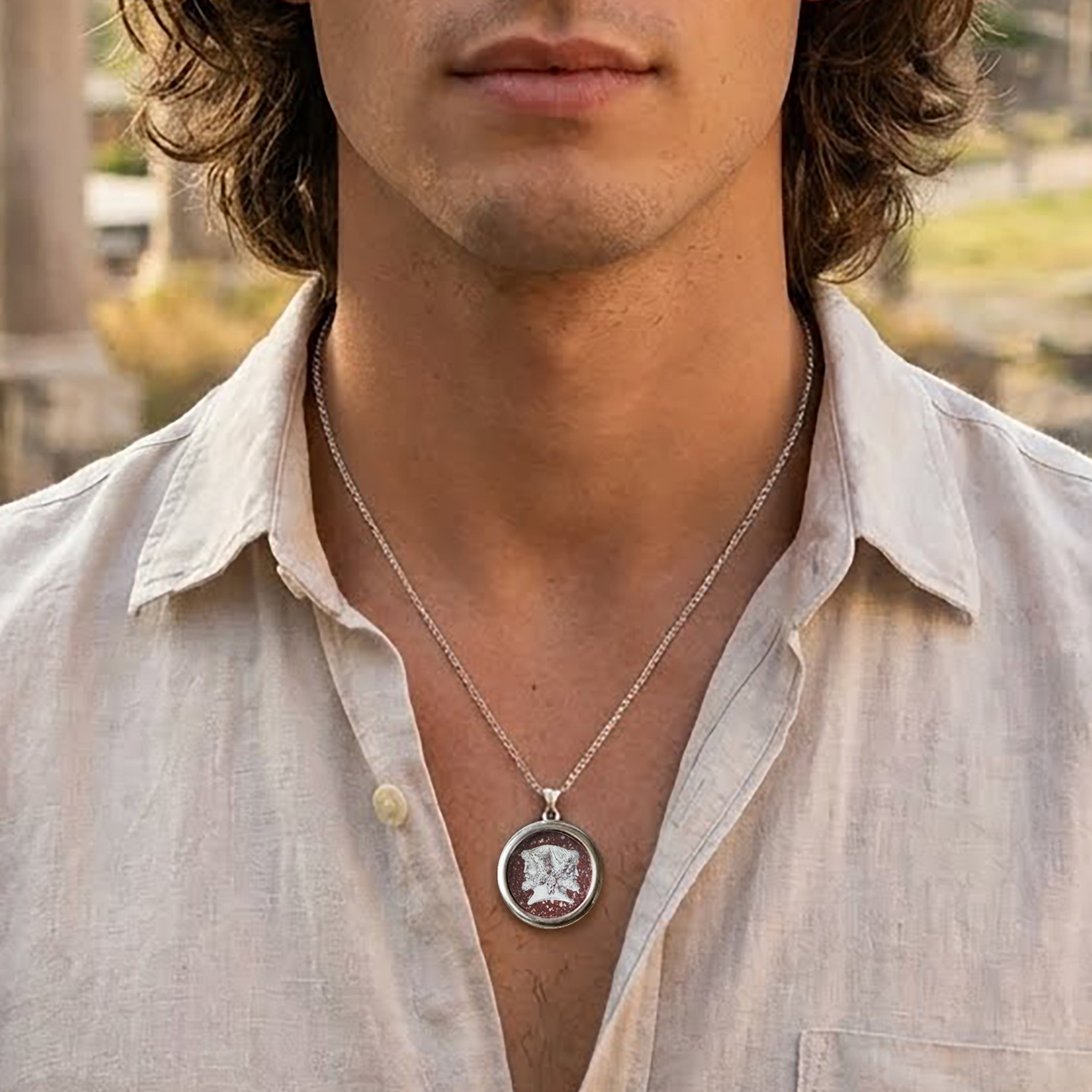 HERACLES Hand-Painted Silver Pendant on Onyx