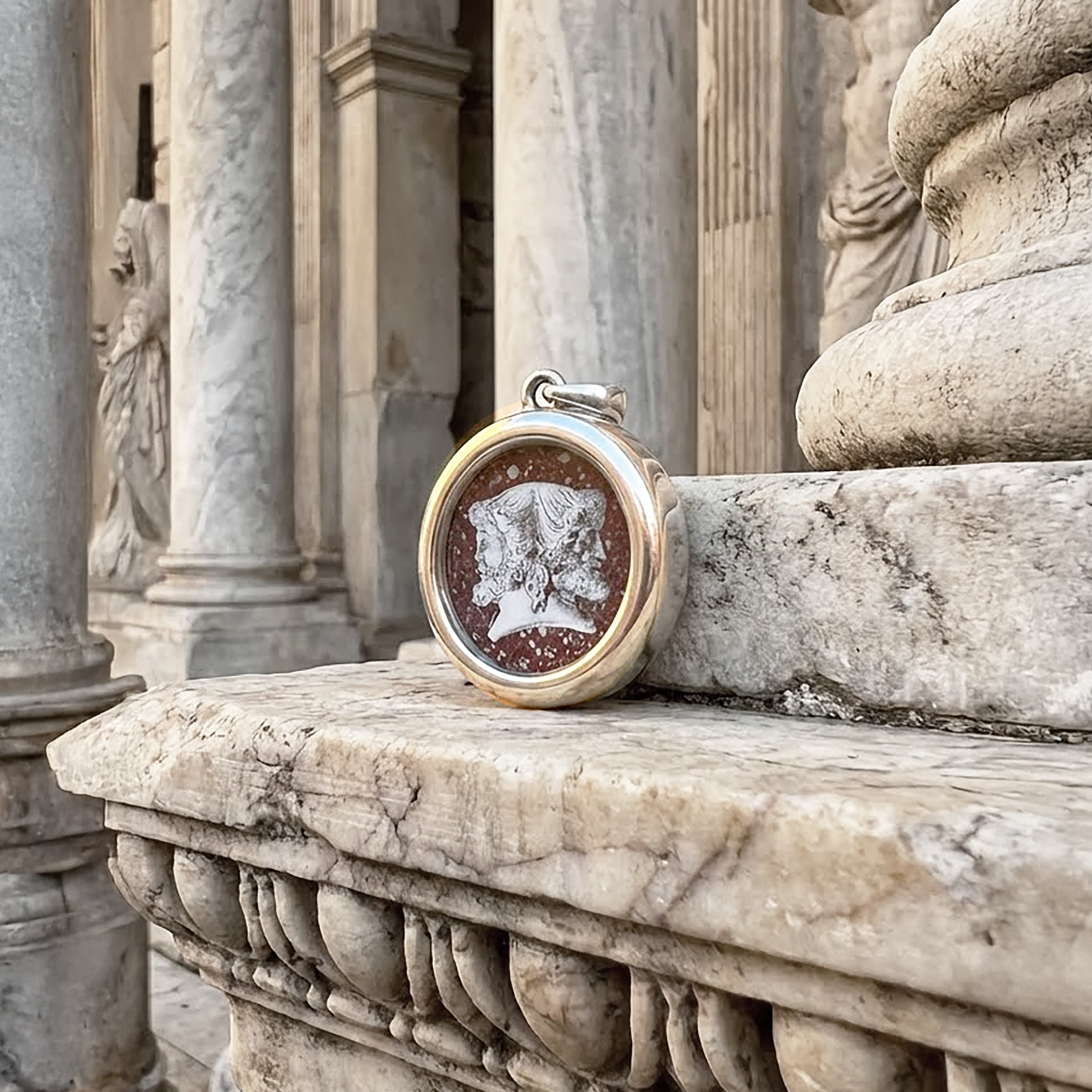 MARCUS AURELIUS Hand-Painted Silver Pendant on Red Porphyry