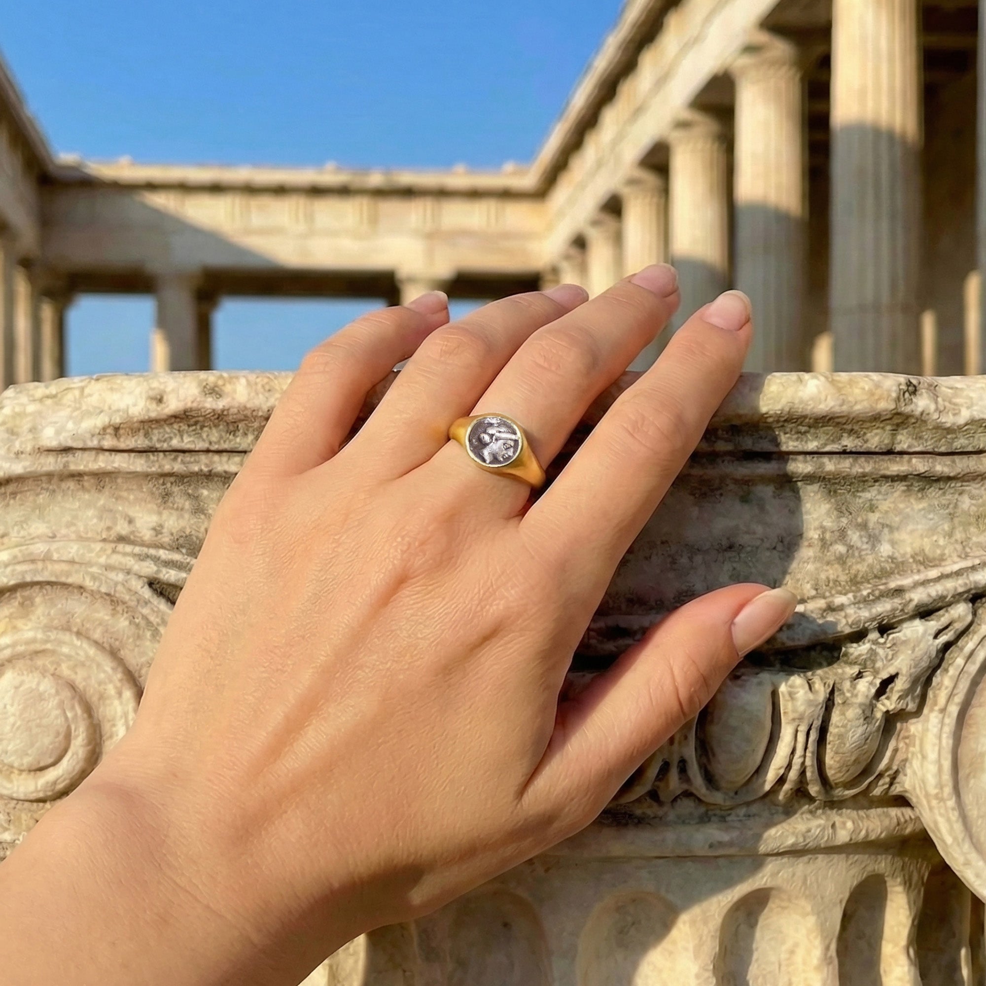 VENUS Authentic Greek Silver Coin 4th Century B.C. 18 kt Gold Ring