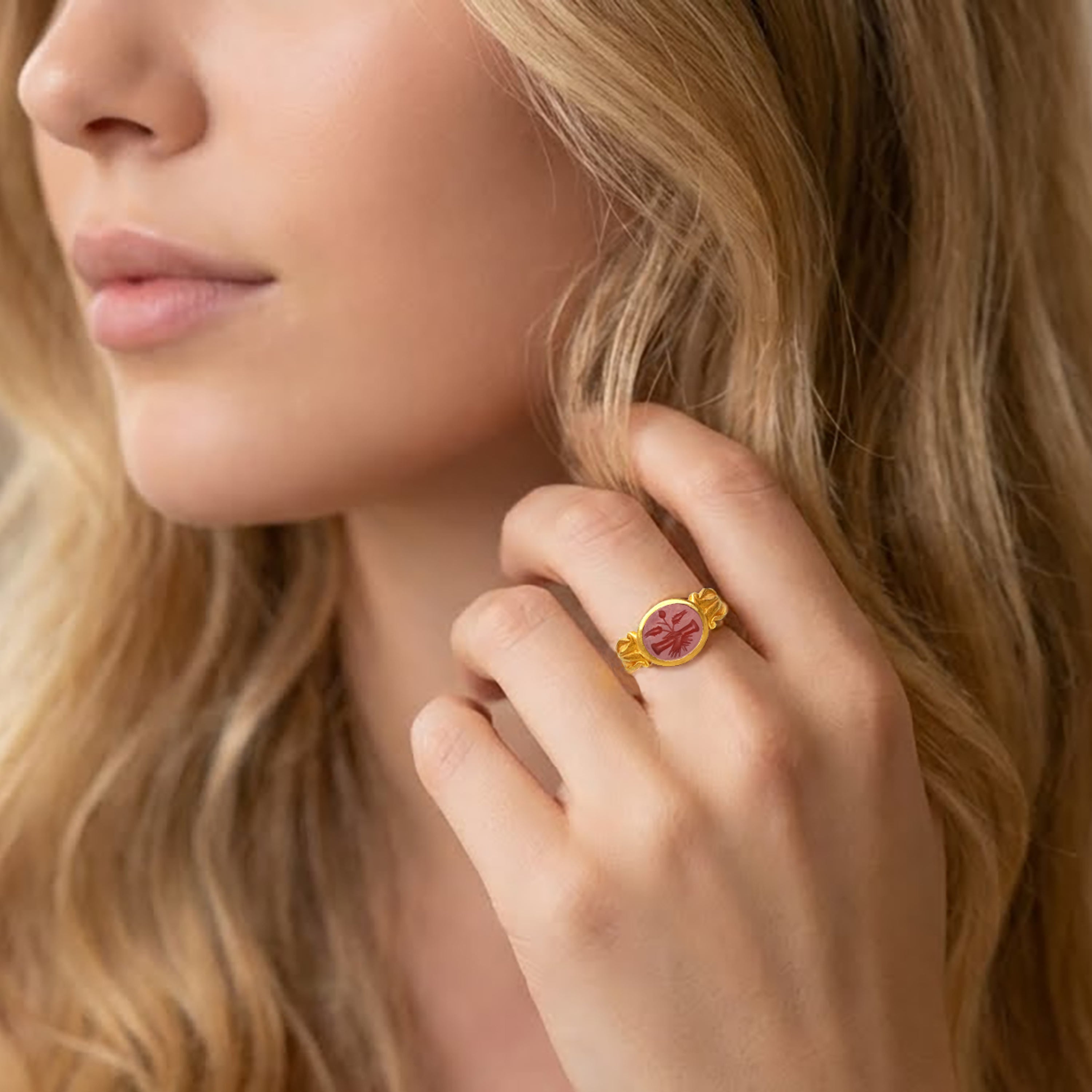 • Authentic Ancient Roman Intaglio 1st-2nd Cent. AD • Handmade 100% Made in Italy • Ring material: 22 Kt Gold • Size: 7 3/4 US Adjustable • Worldwide Delivery Time: 1-5 Business Days * Free Express and Insured Worldwide Shipping