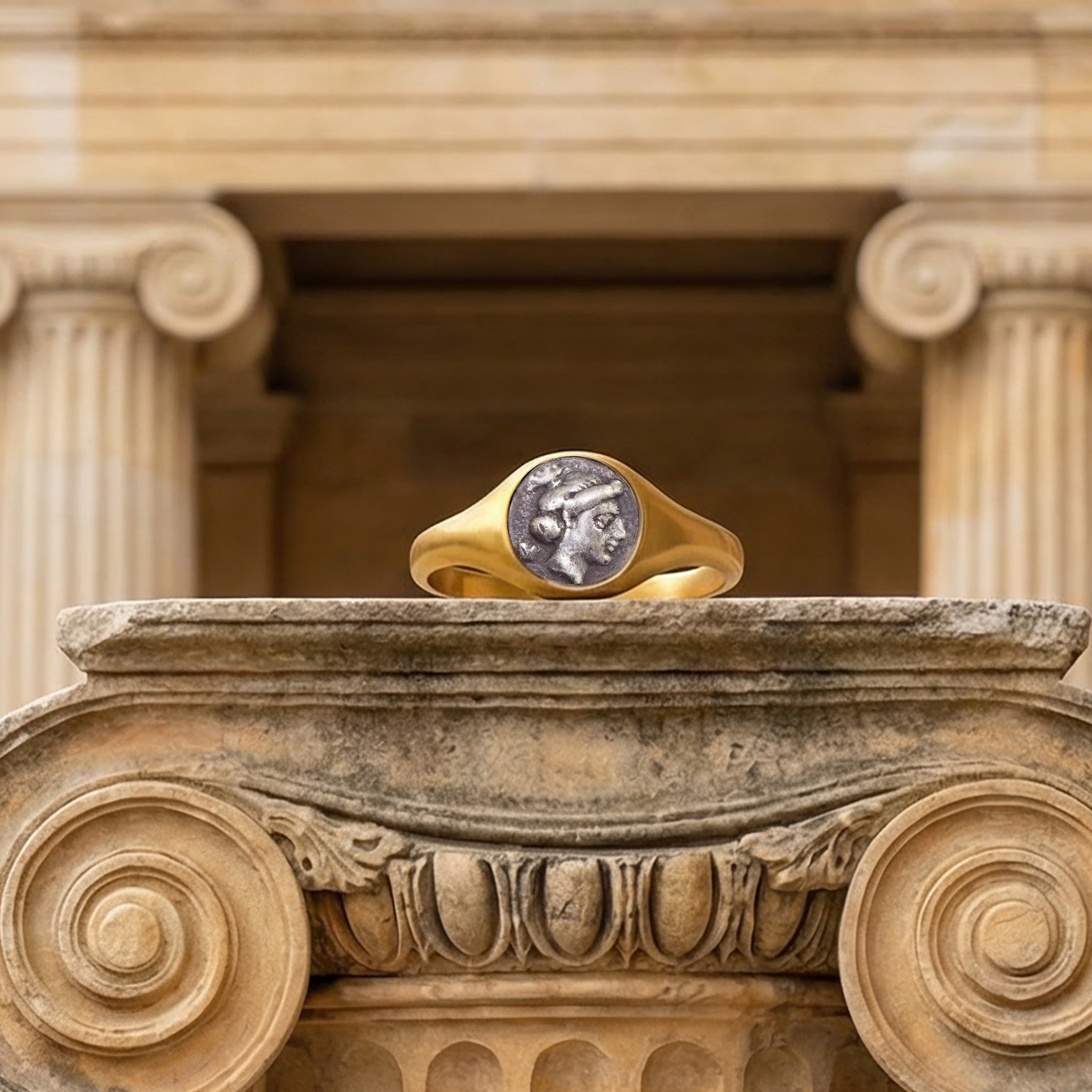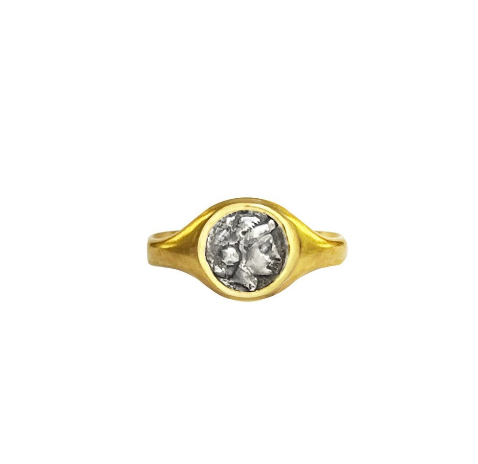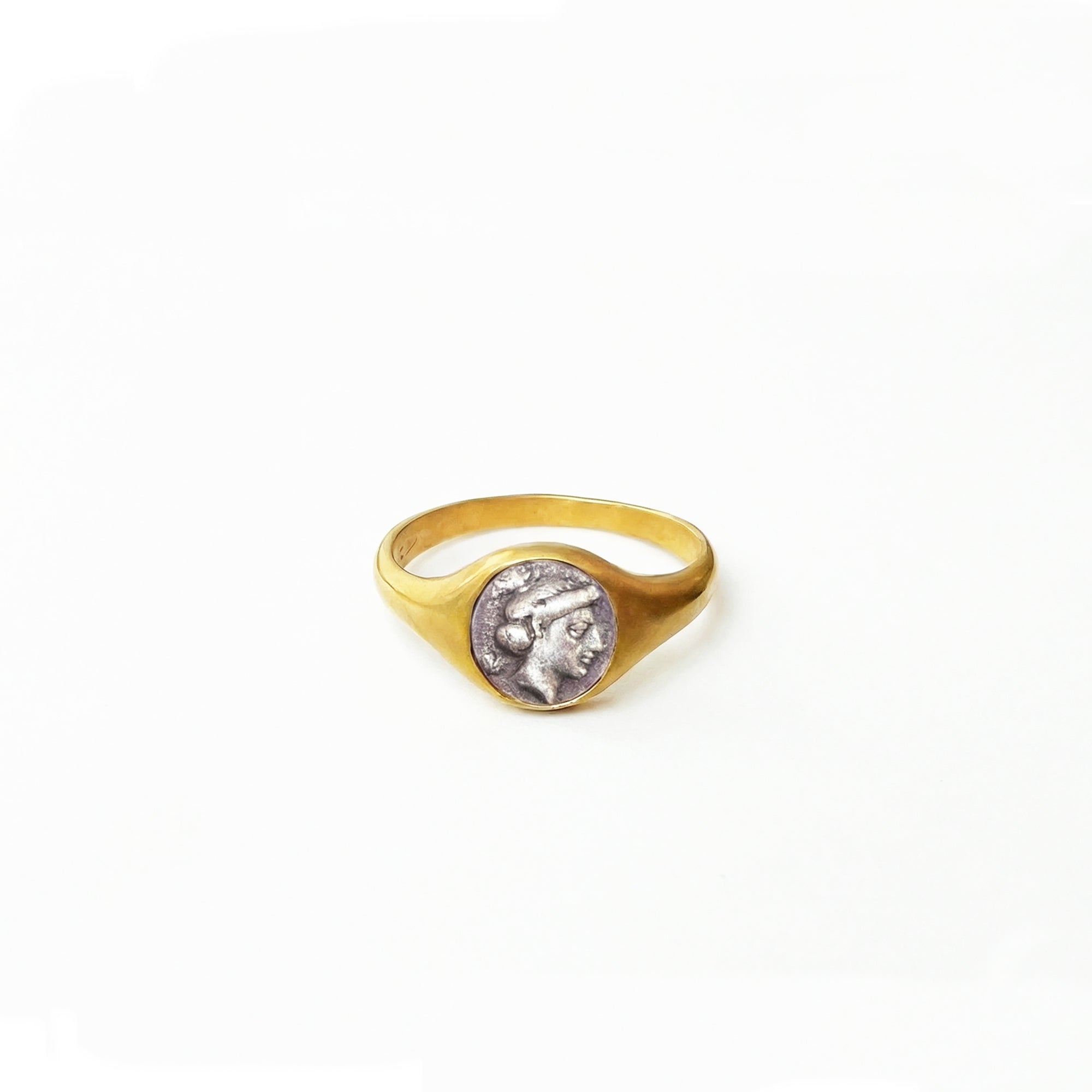 VENUS Authentic Greek Silver Coin 4th Century B.C. 18 kt Gold Ring