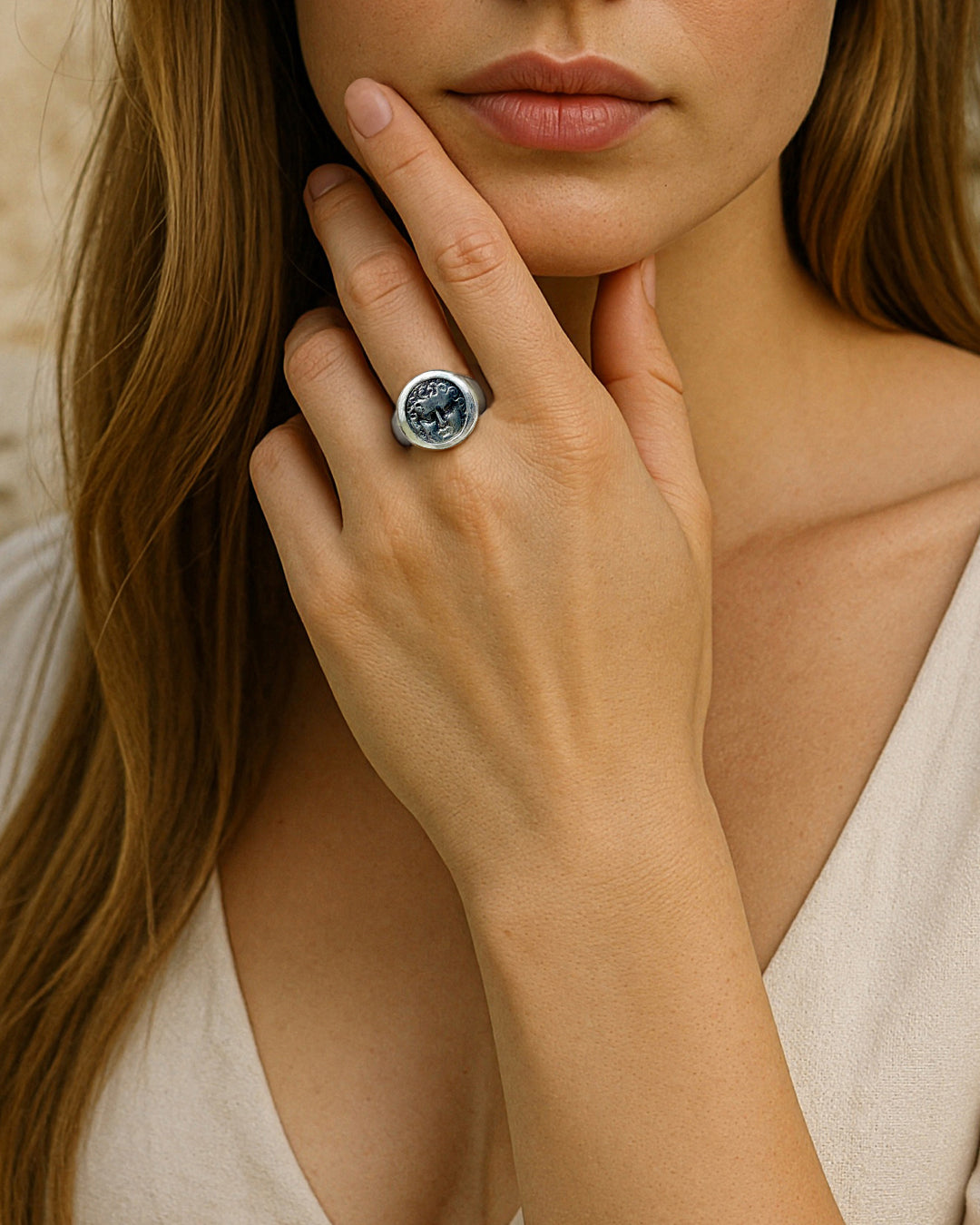 MEDUSA Authentic Ancient Greek Coin 4th Cent. AD Silver Ring