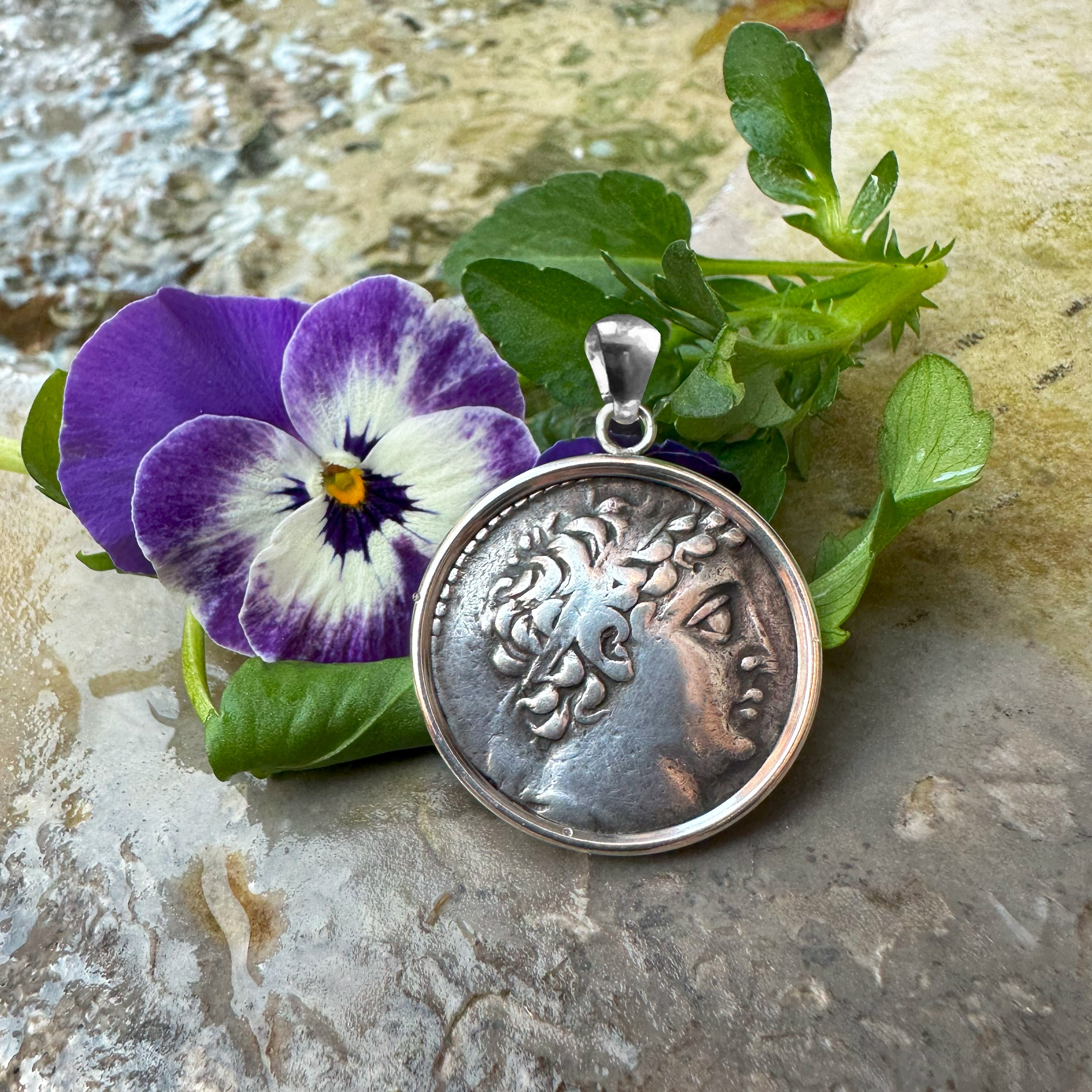 DEMETRIOS II Genuine Ancient Greek coin 145-125 BC Silver Pendant