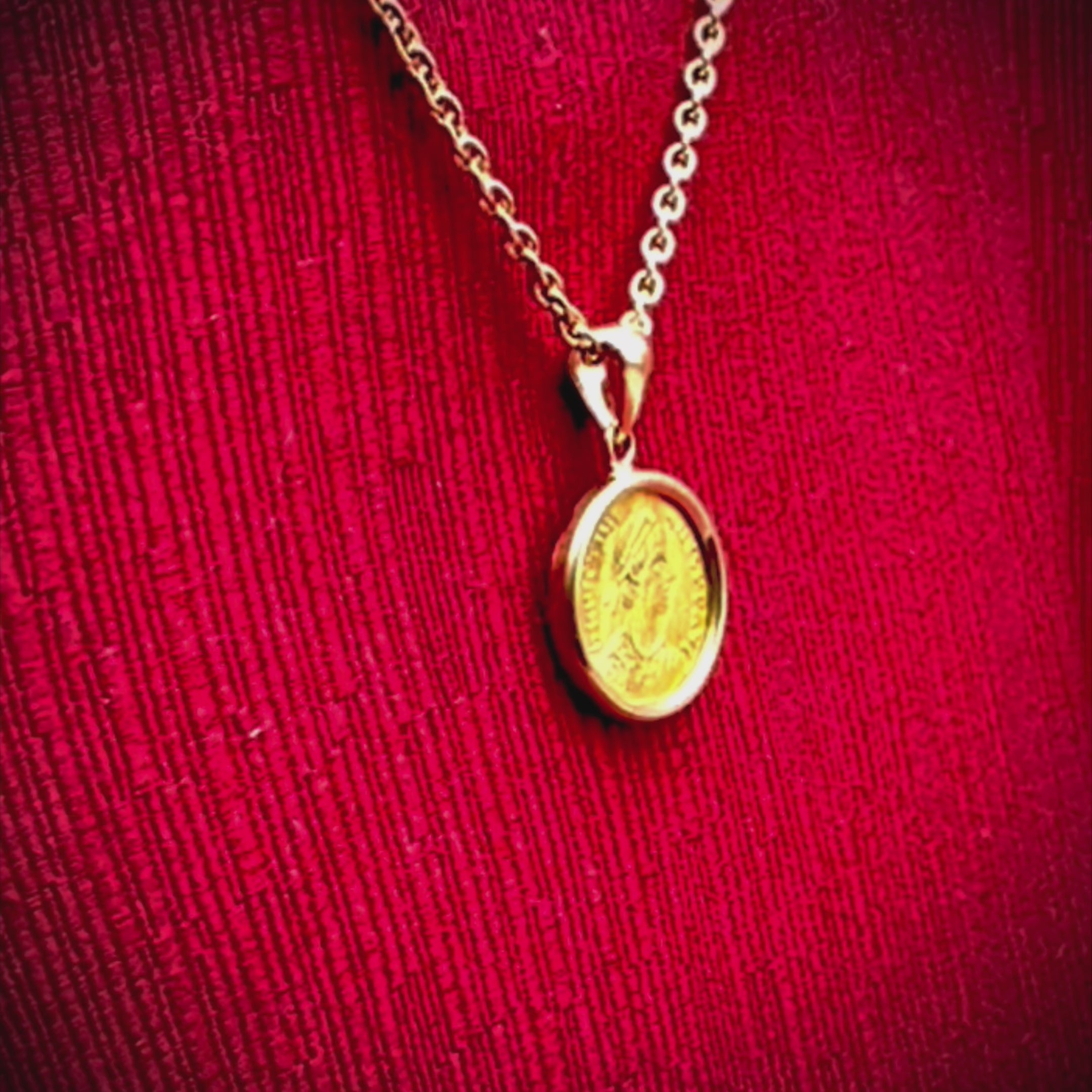 EMPEROR JUSTINIAN I Genuine Byzantine 24Kt Gold Coin 6th Cent. AD 18kt Pendant