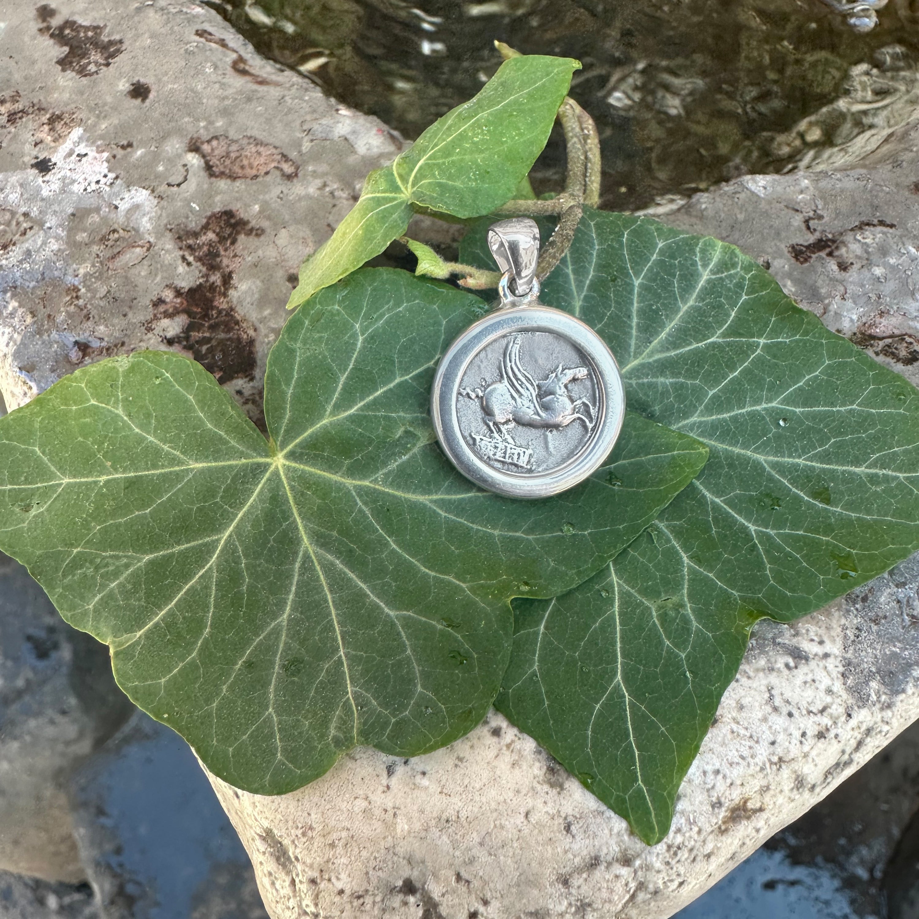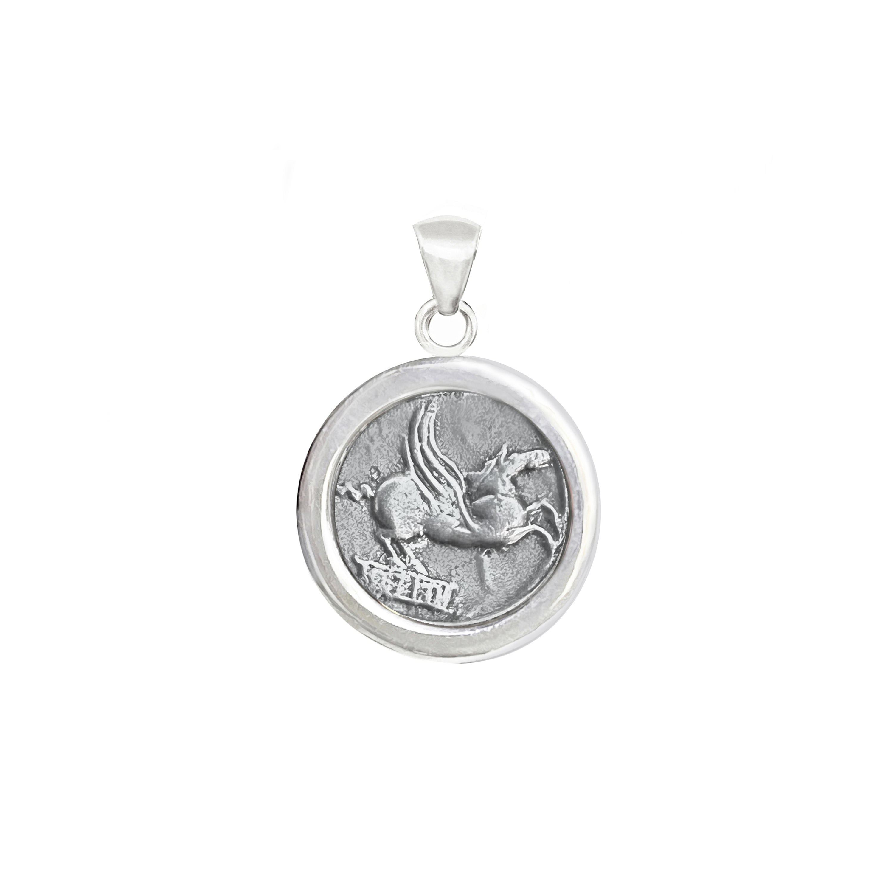 WINGED HORSE PEGASUS Genuine Ancient Greek Coin 1st Cent Silver Pendant