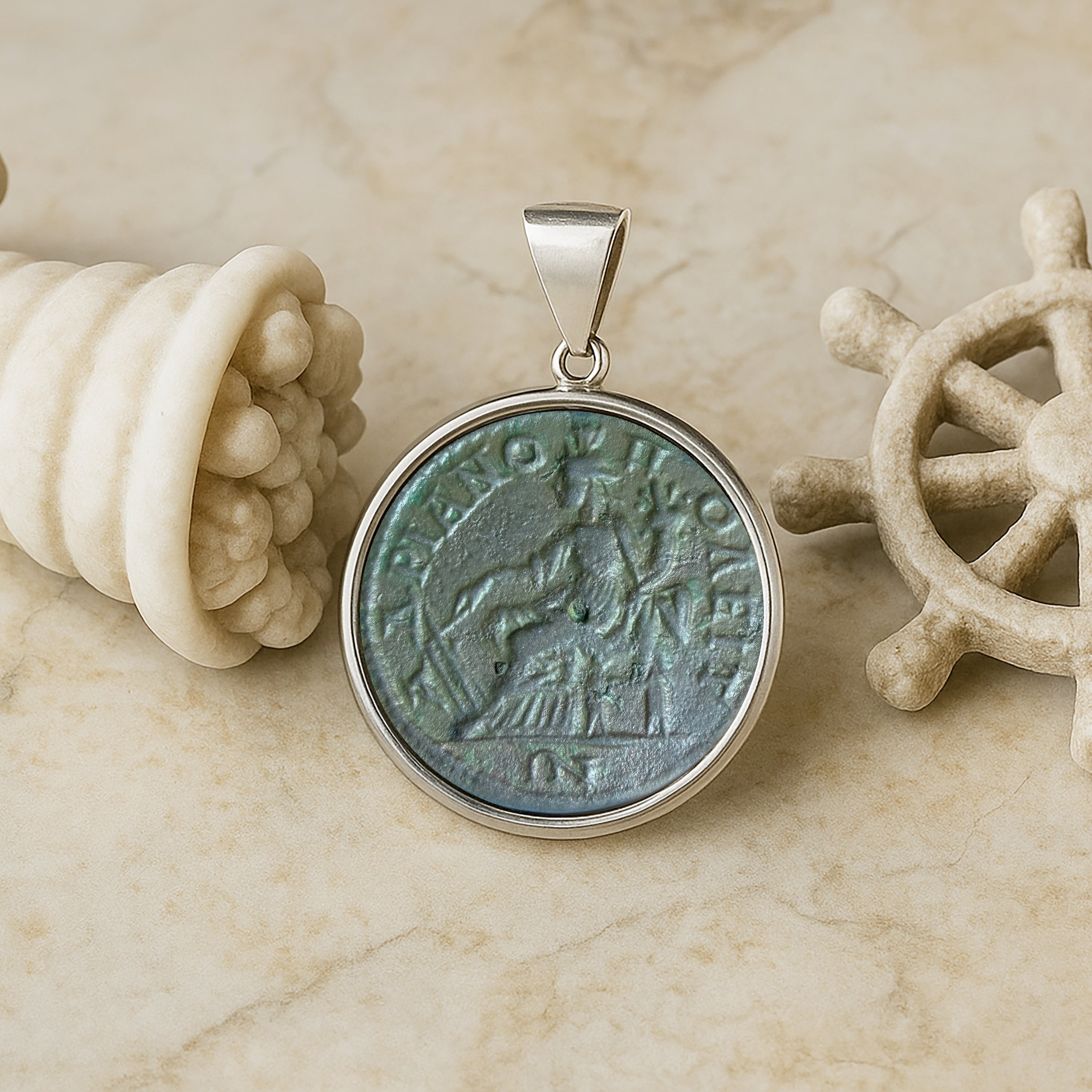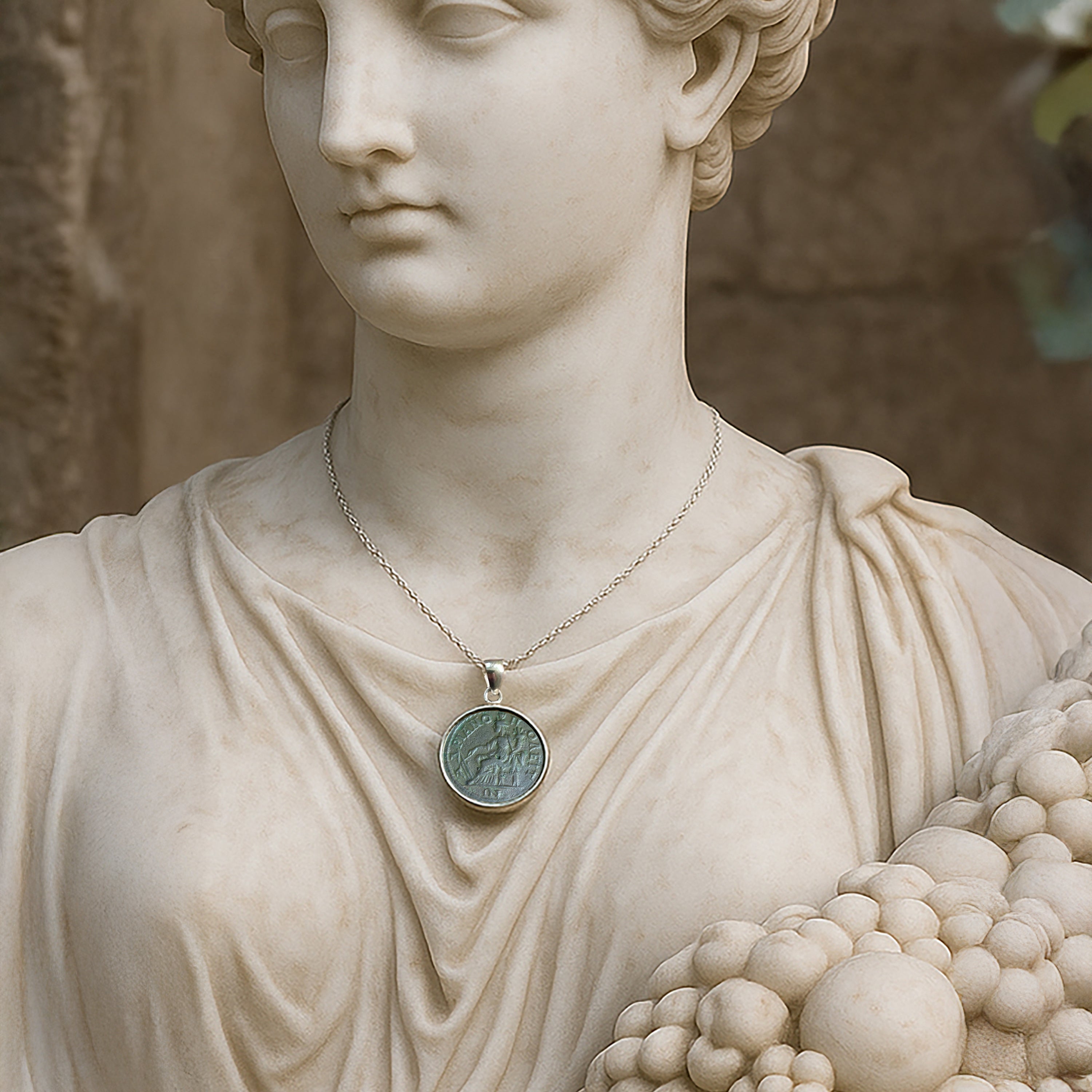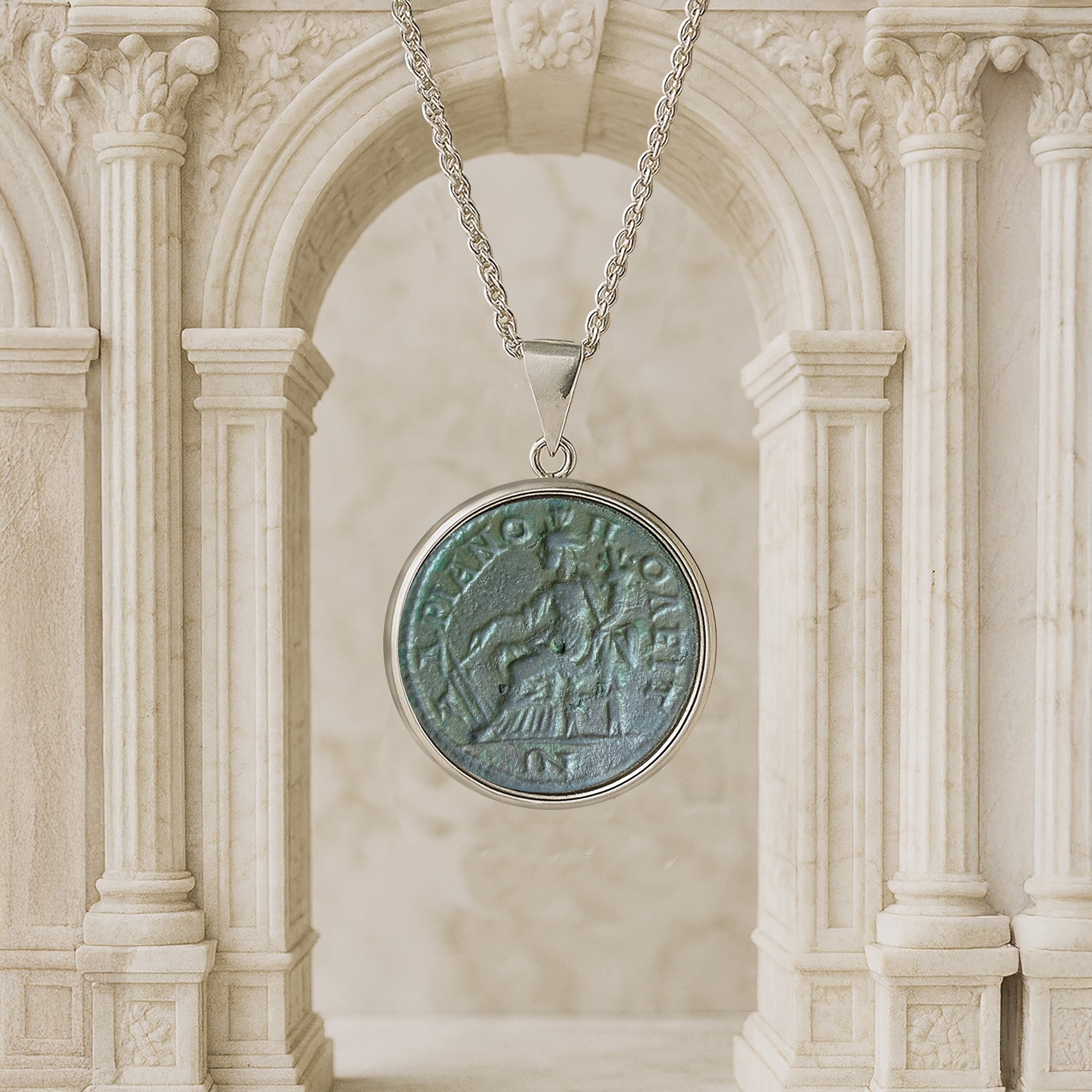 This pendant unites history and symbolism, combining the auspicious image of Fortuna with the legacy of one of Rome’s youngest emperors. A timeless piece that captures the enduring allure of the ancient world.