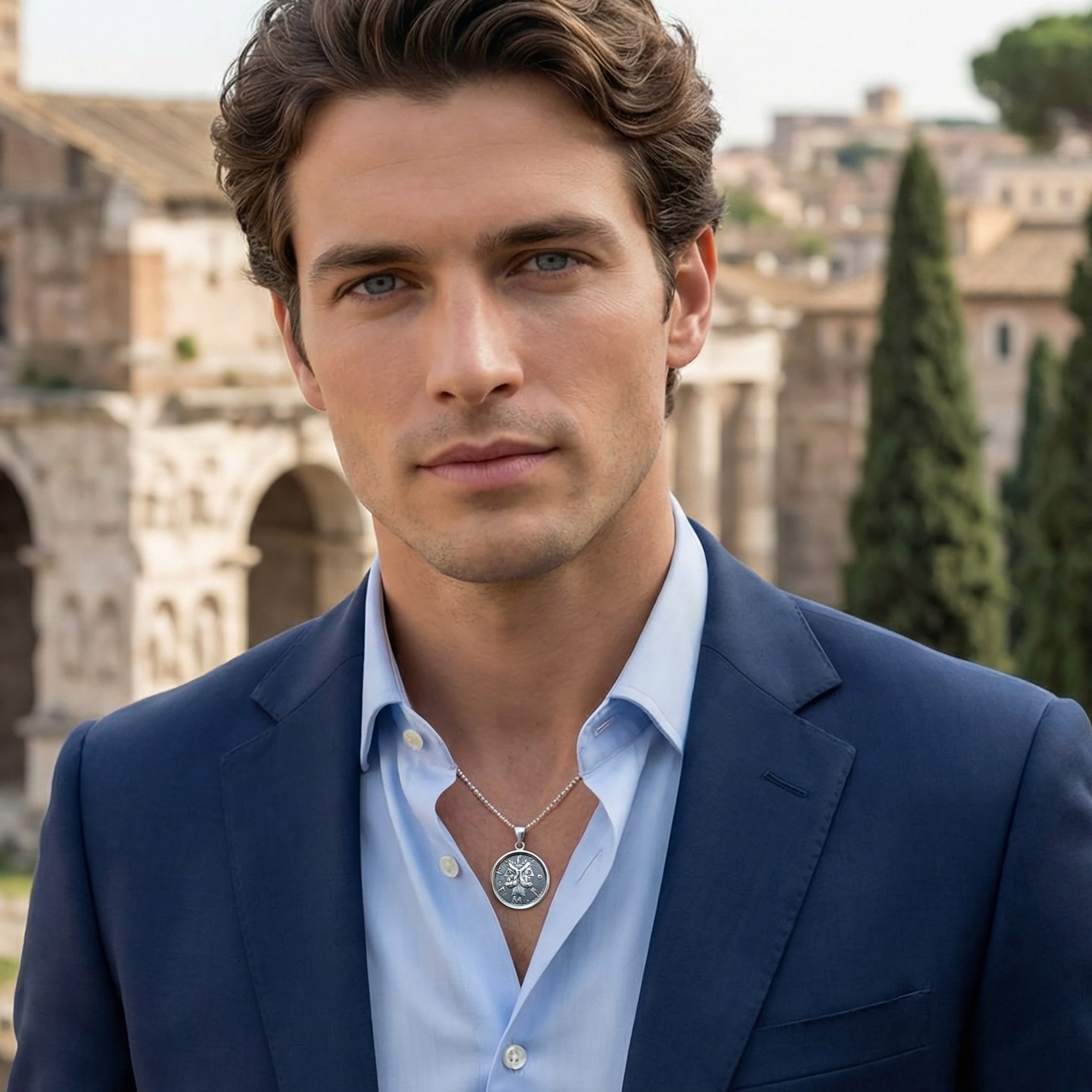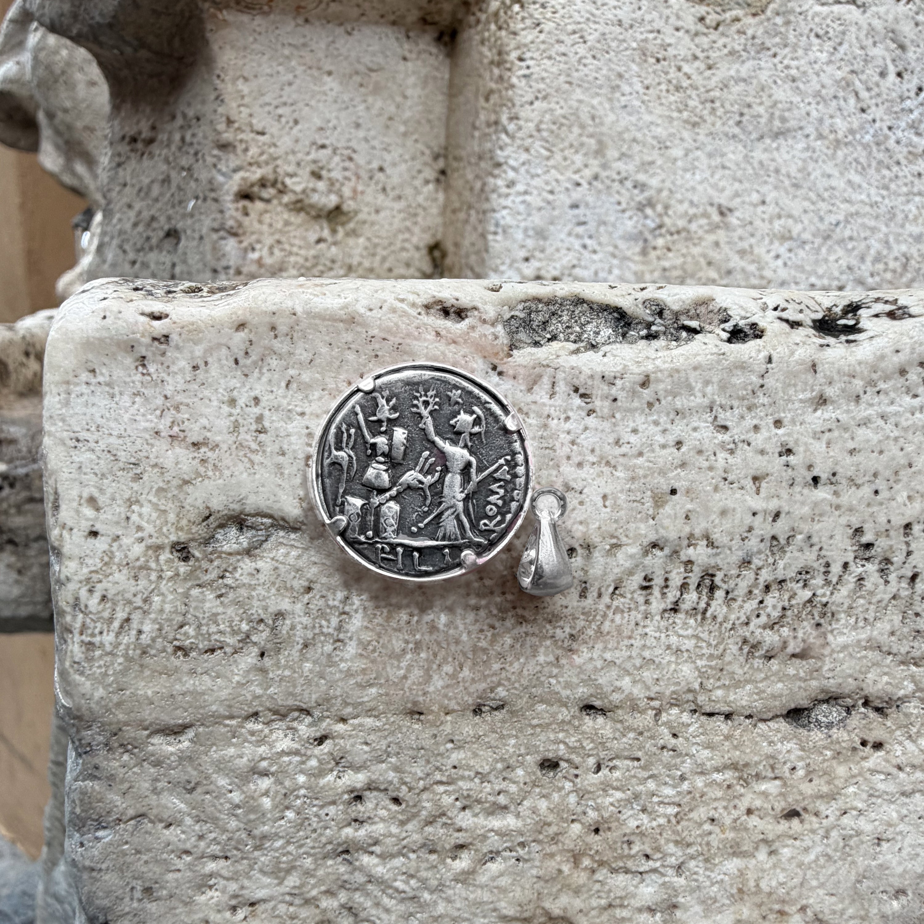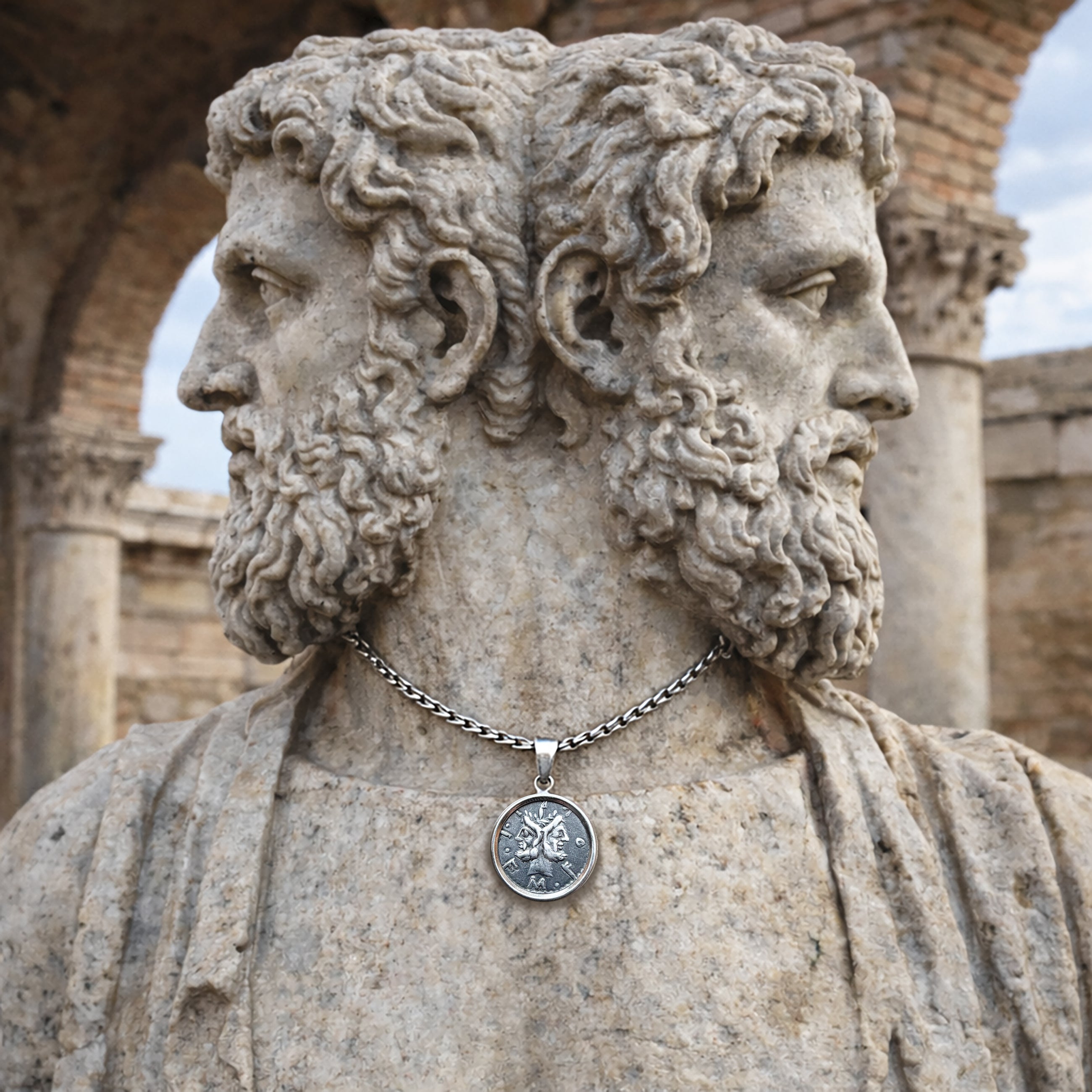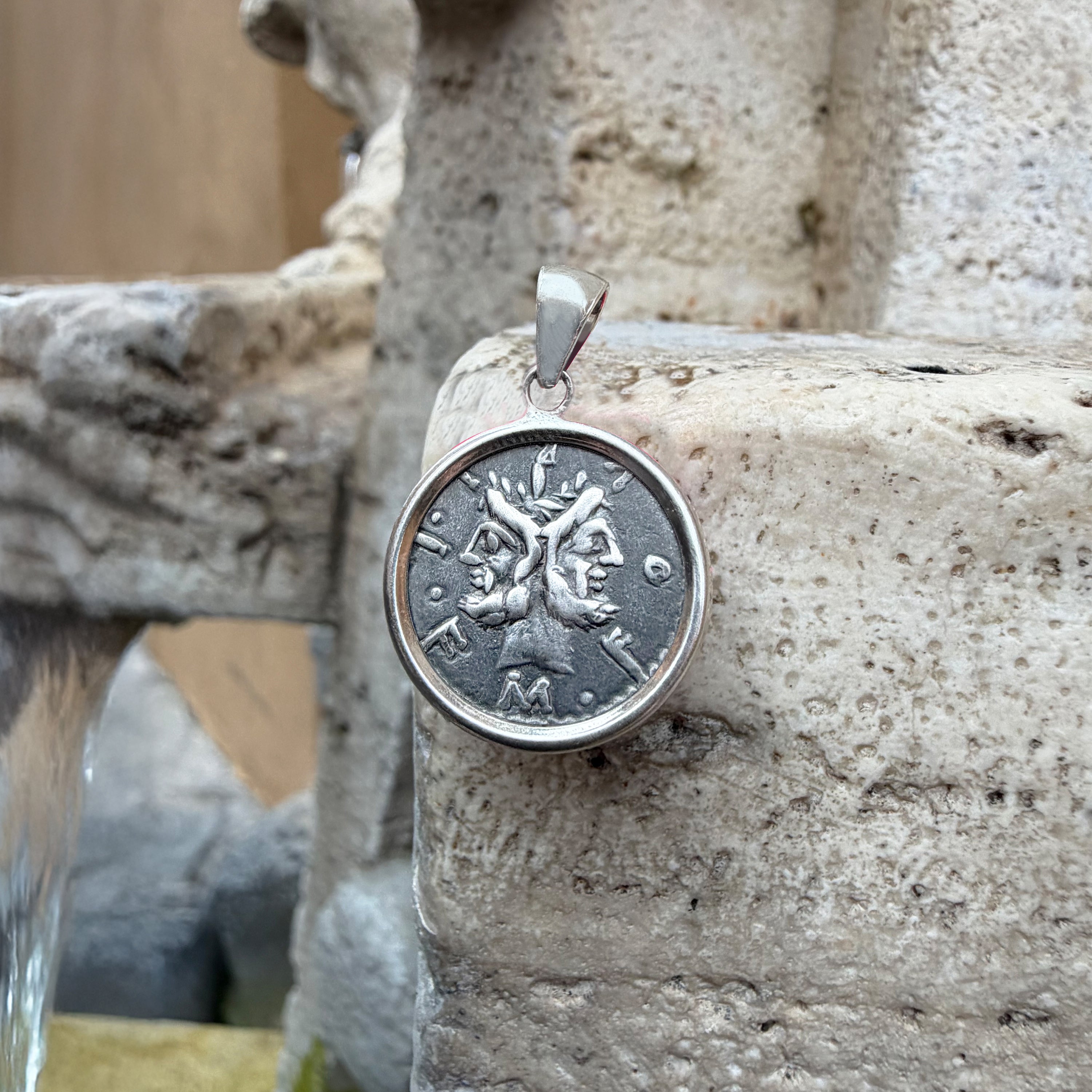GOD JANUS Genuine Ancient Roman Coin 120 BC Silver Pendant