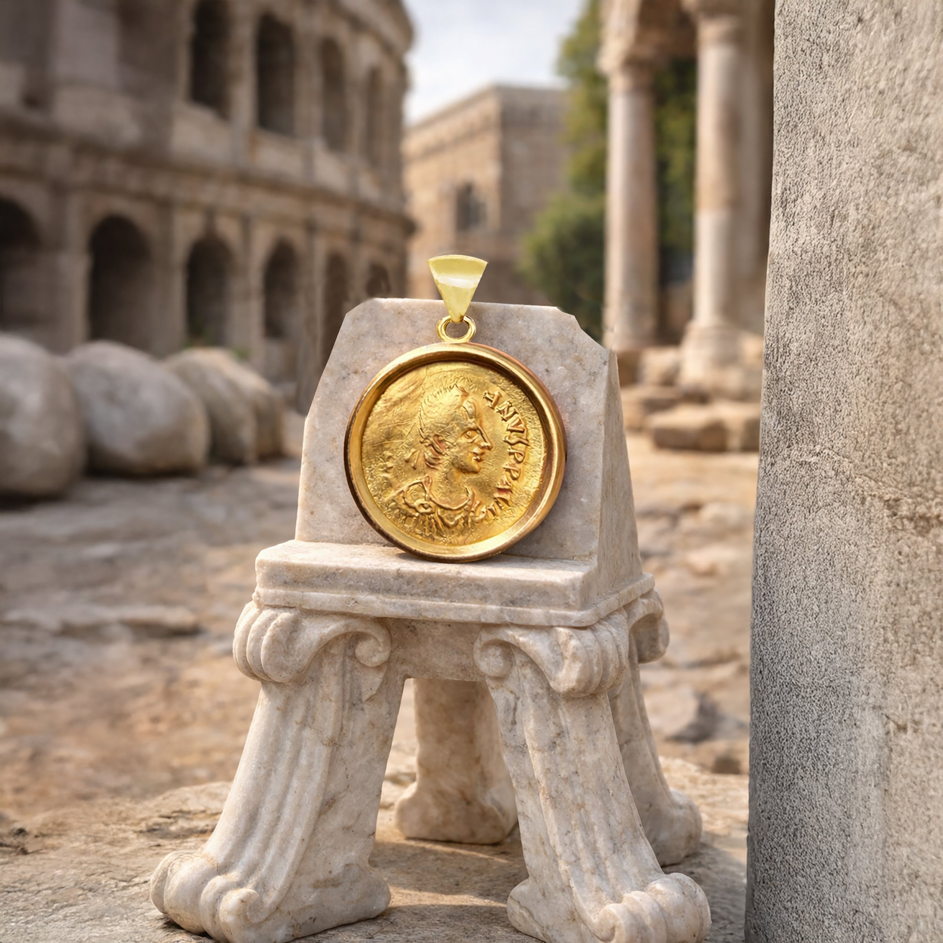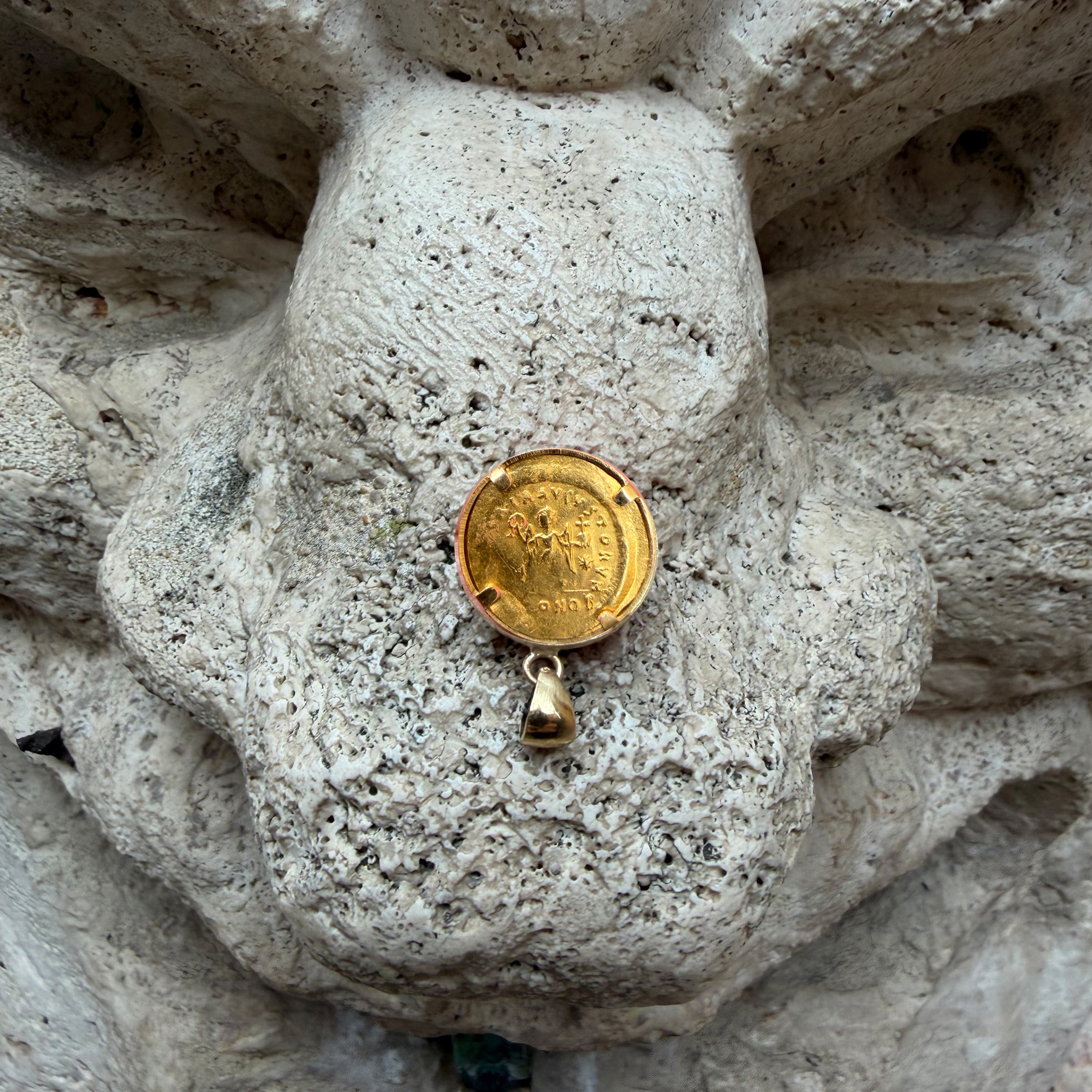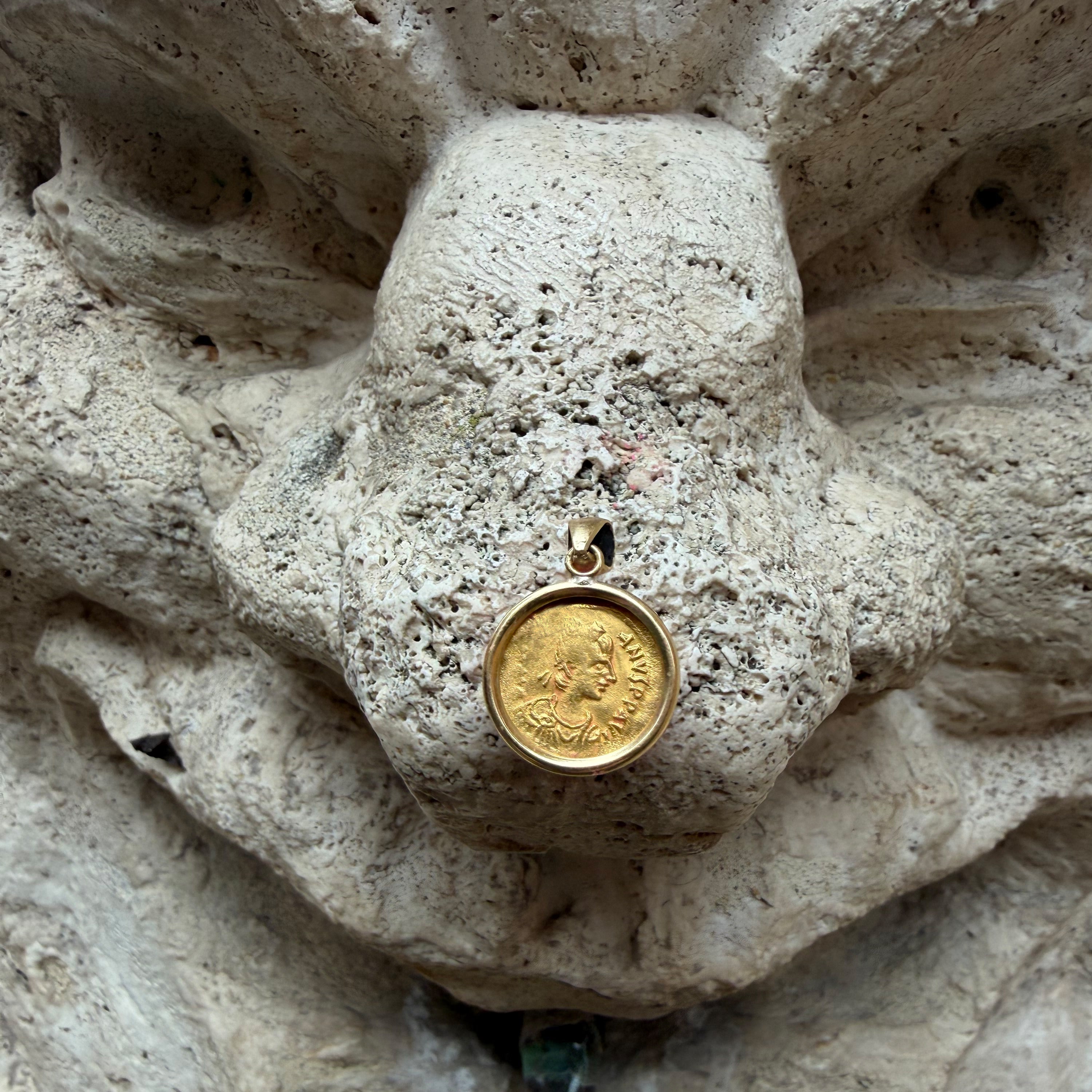 EMPEROR JUSTINIAN I Genuine Byzantine 24Kt Gold Coin 6th Cent. AD 18kt Pendant