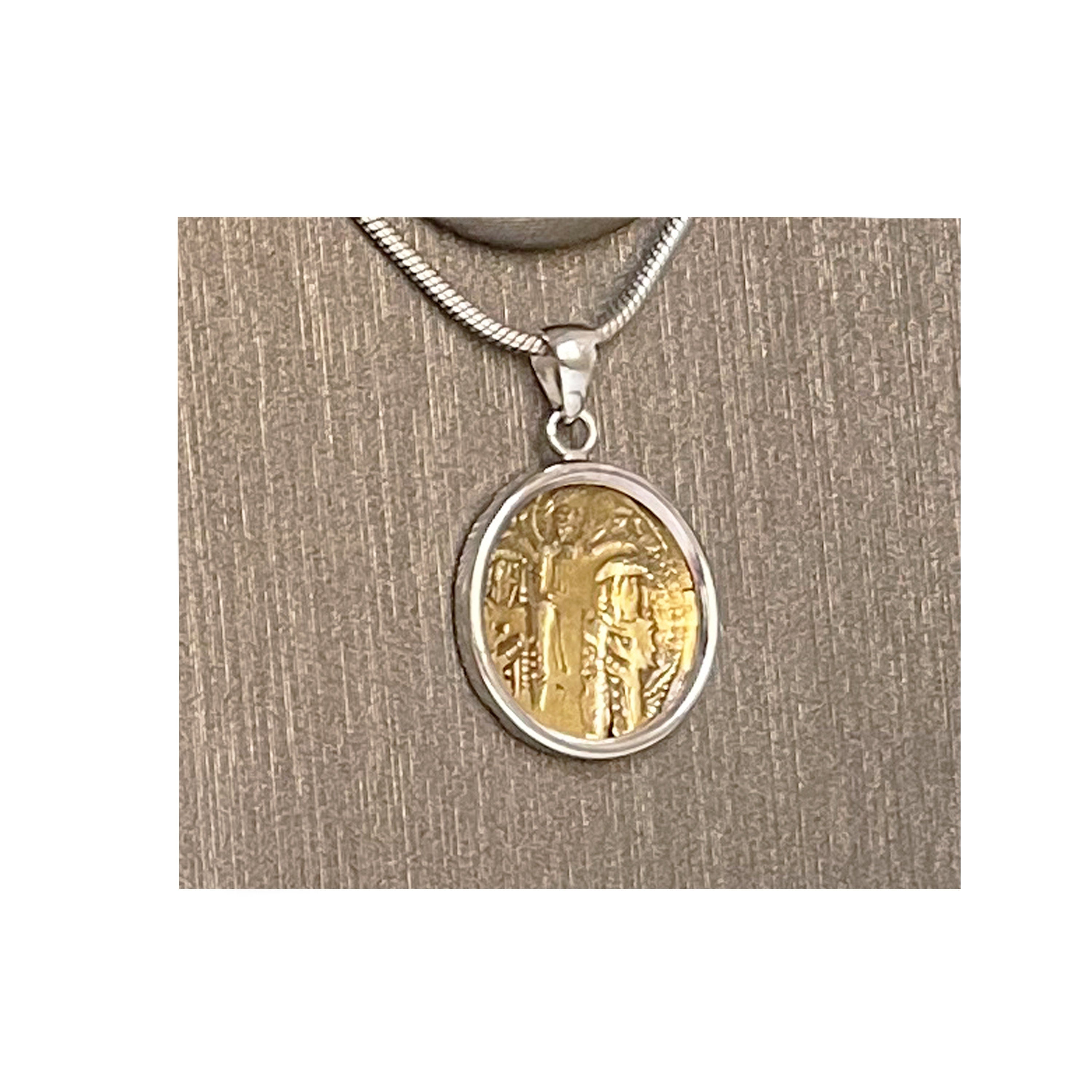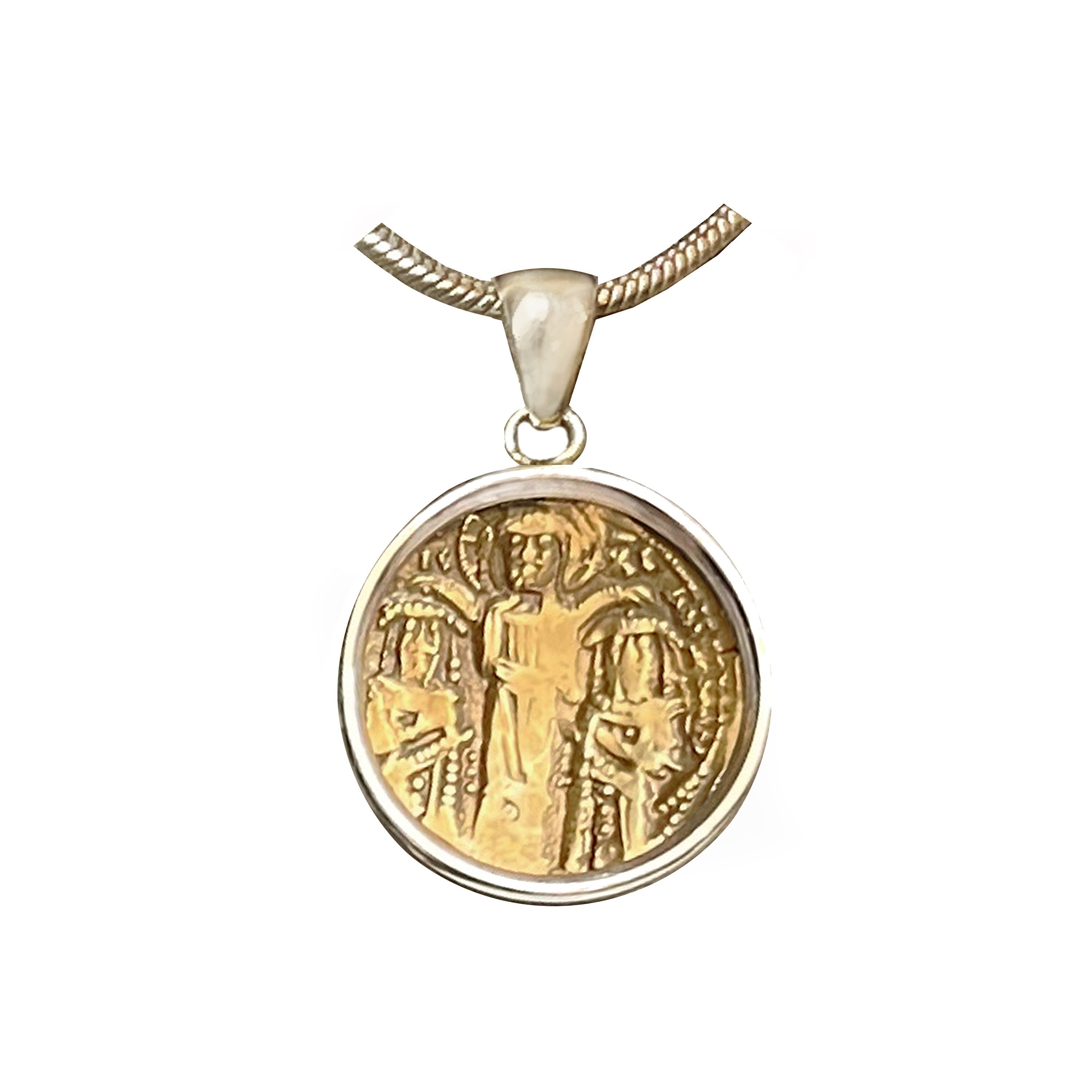 Genuine Byzantine Gold Coin Silver Pendant depicting Jesus, Andronikos and Michael IX