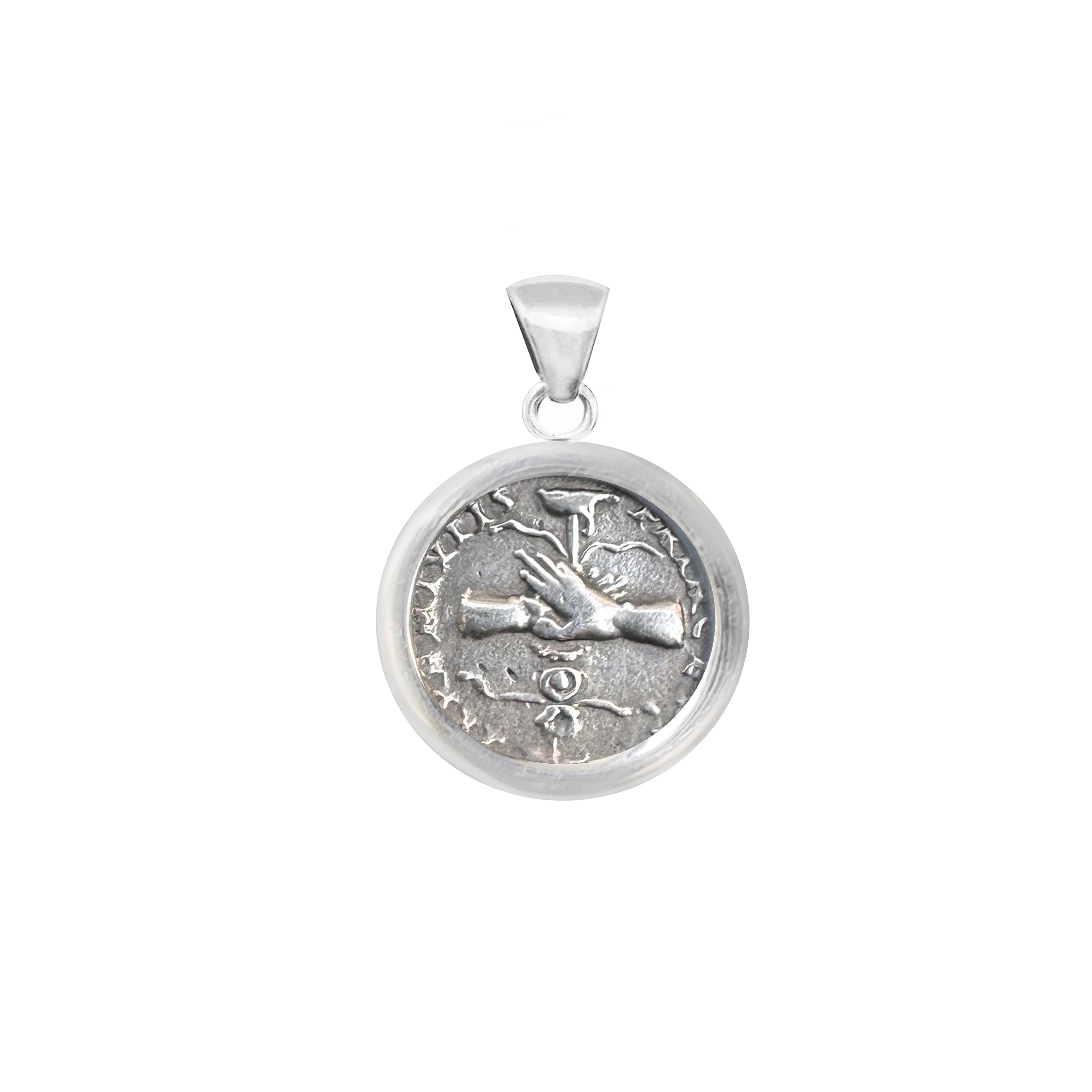 DEXTRARUM IUNCTIO Authentic Ancient Roman silver Coin 81-96 AD Pendant; Domitian on Rear