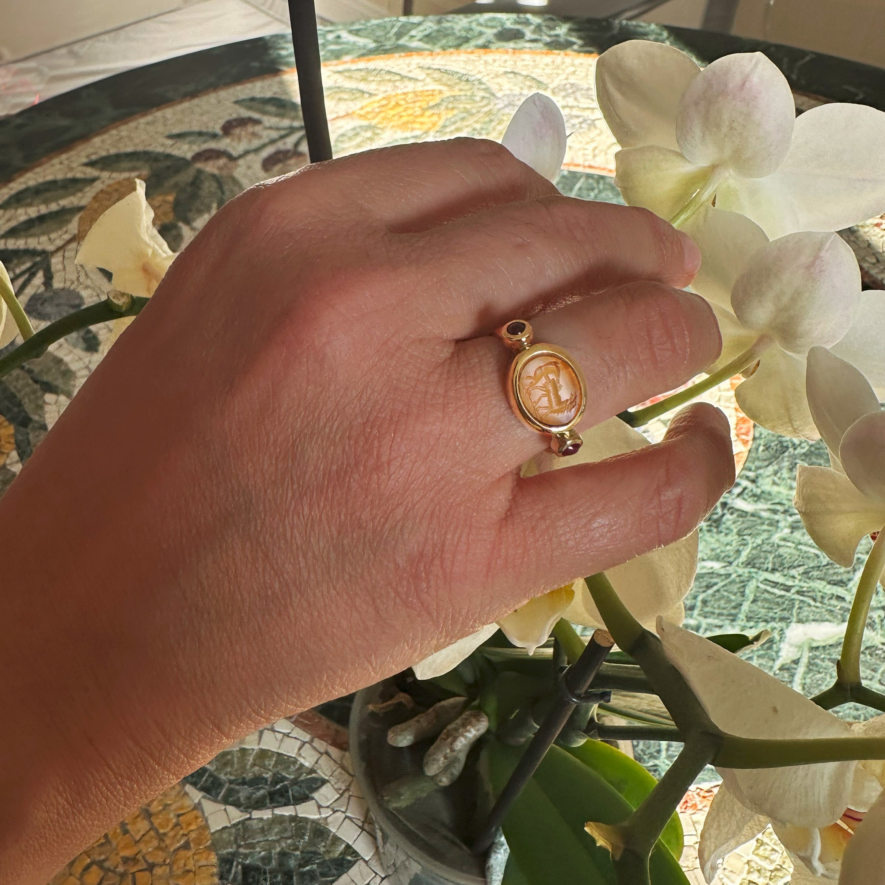 • Handmade 100% Made in Italy • Authentic Intaglio 1st-2nd cent AD • Gemstone: Carnelian • Size: 7 US Adjustable • Band material: Gold 18KT • Order Processing Time: 1 Business Day • Worldwide Delivery Time: 1-5 Business Days