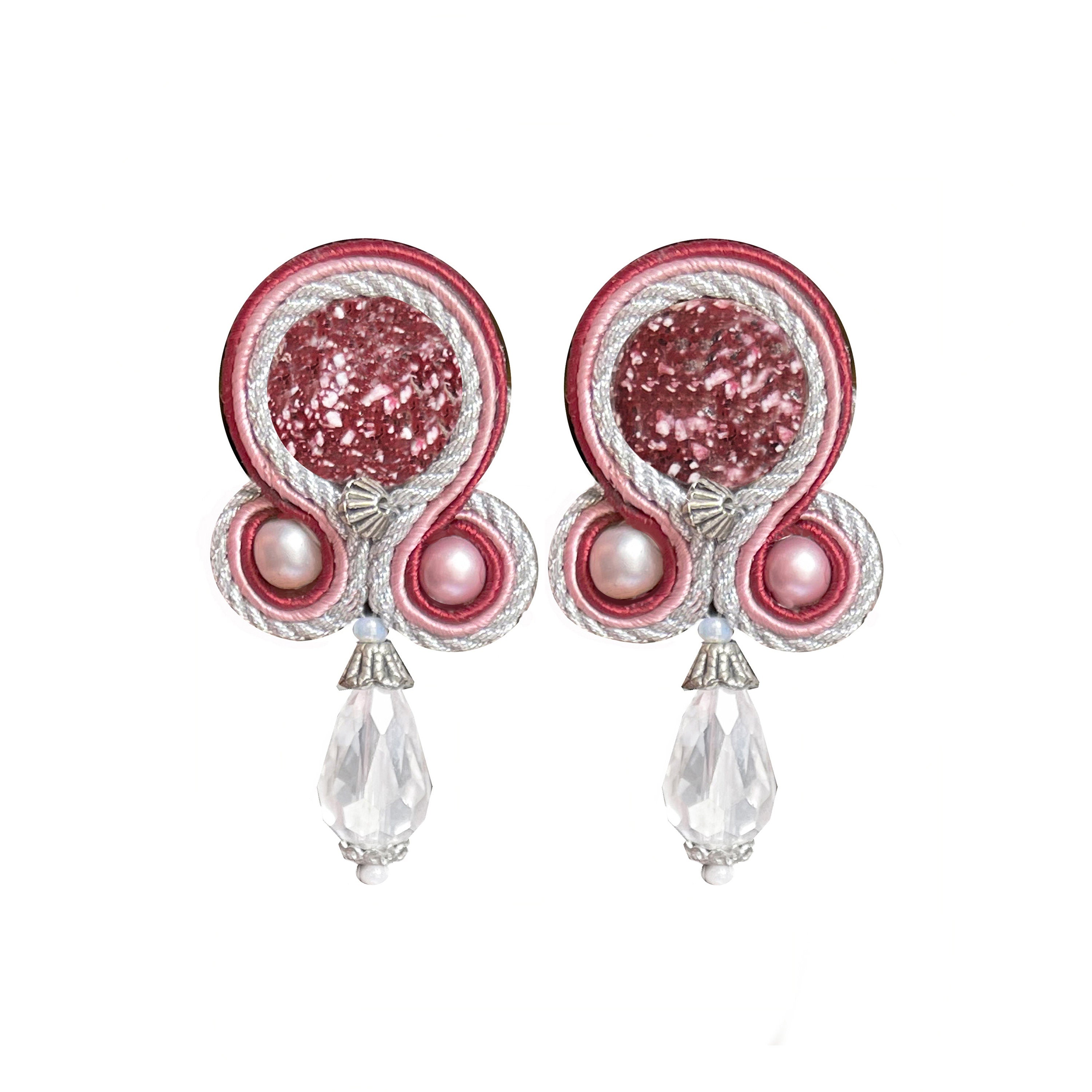 Red Porphyry Marble Earrings made with the Soutache Technique