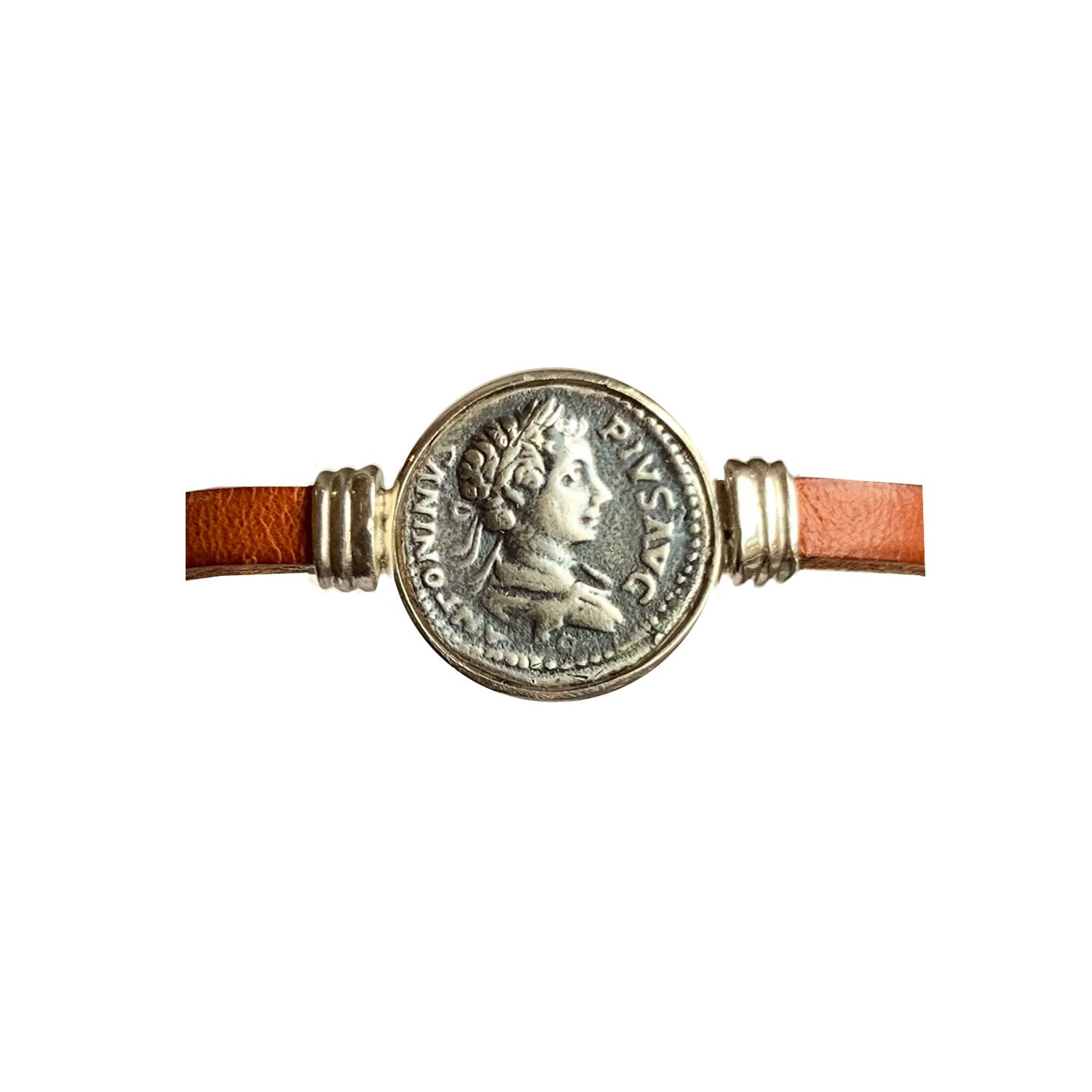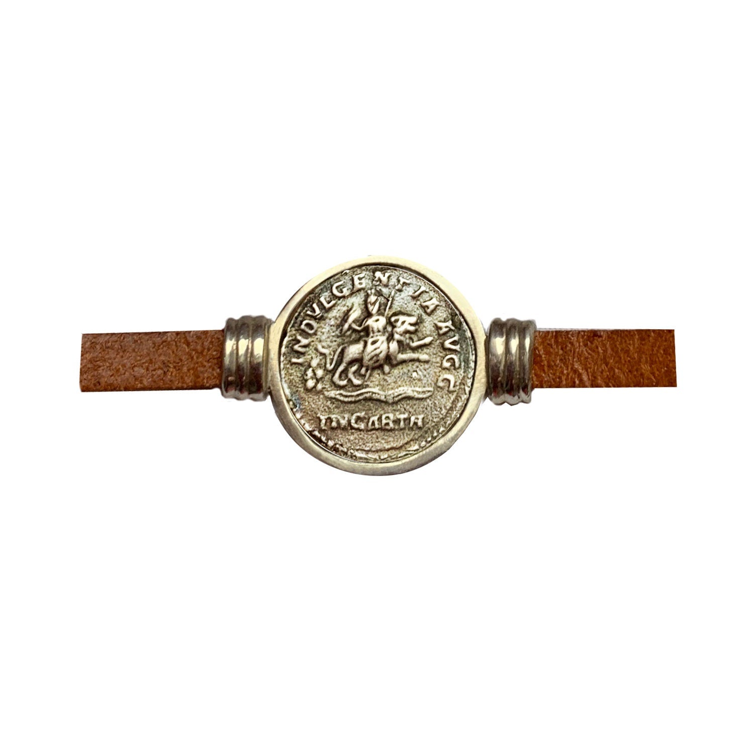 • Handmade 100% Made in Italy • Authentic Roman Coin 3rd Cent. AD • Band material: Leather, Sterling Silver 925