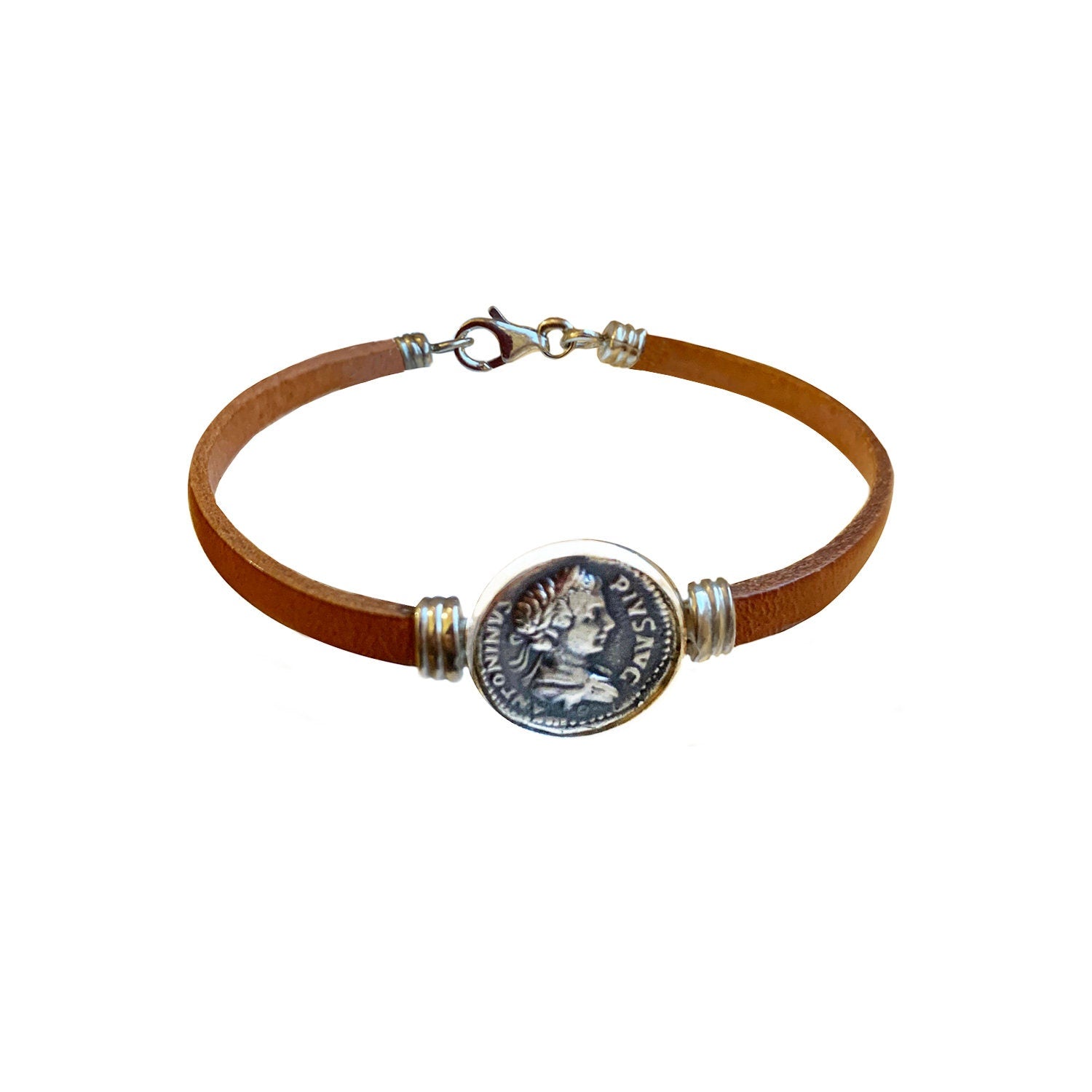 Authentic Roman coin Silver and Leather Bracelet depicting Emperor Caracalla