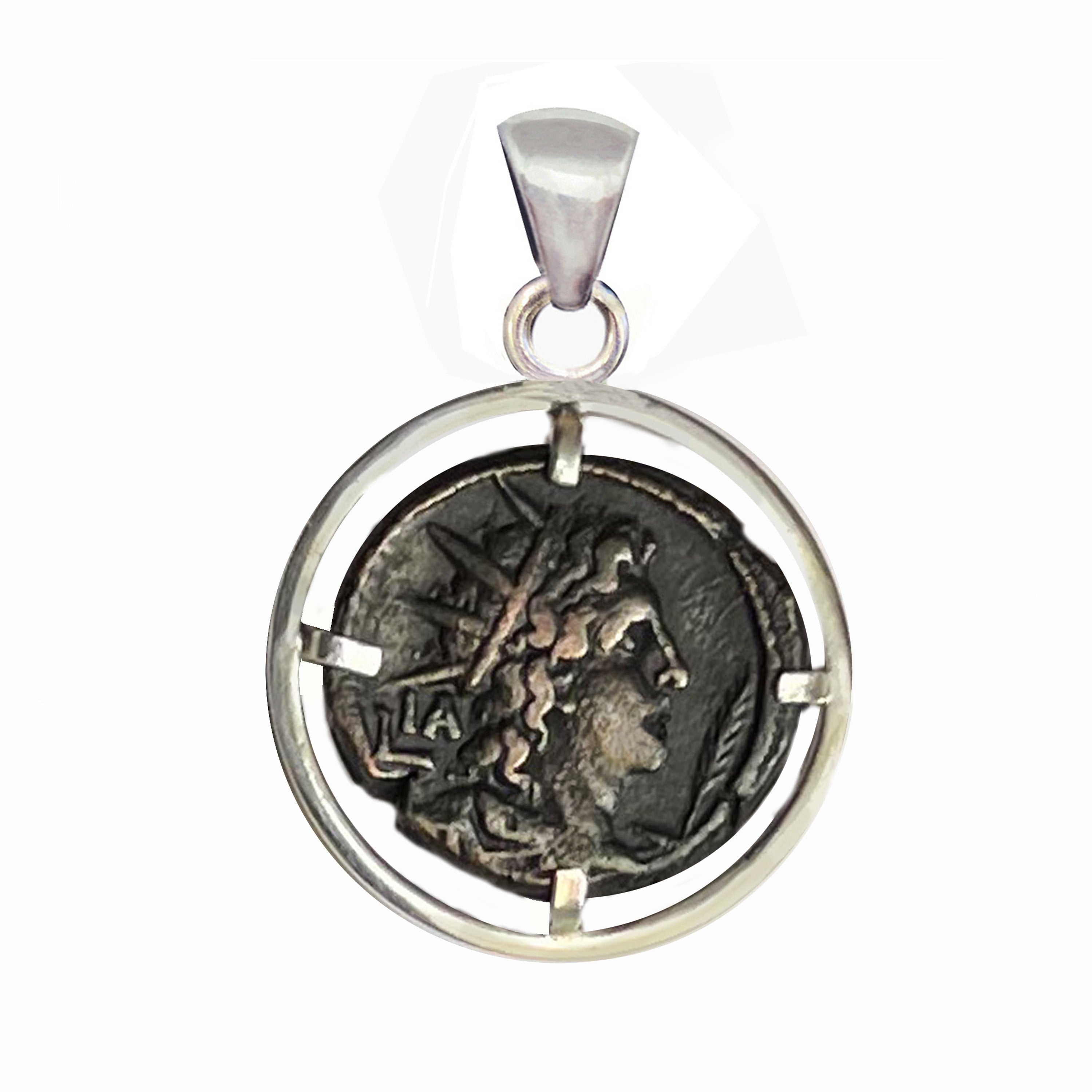 SUN - HELIOS Genuine Ancient Roman Bronze Coin 3rd Cent. AD Silver Pendant