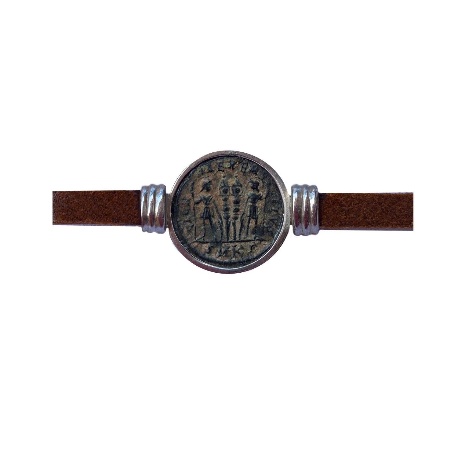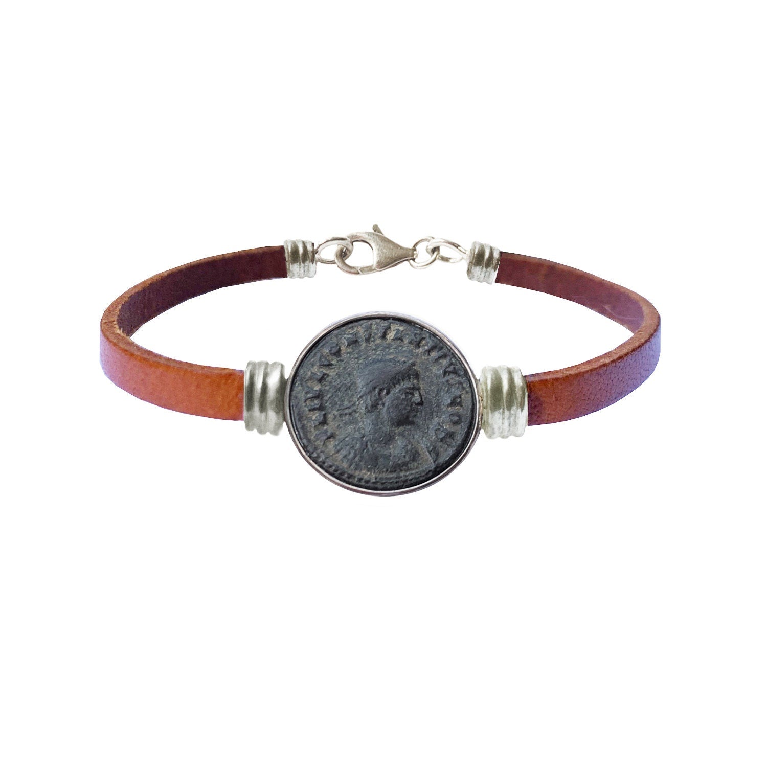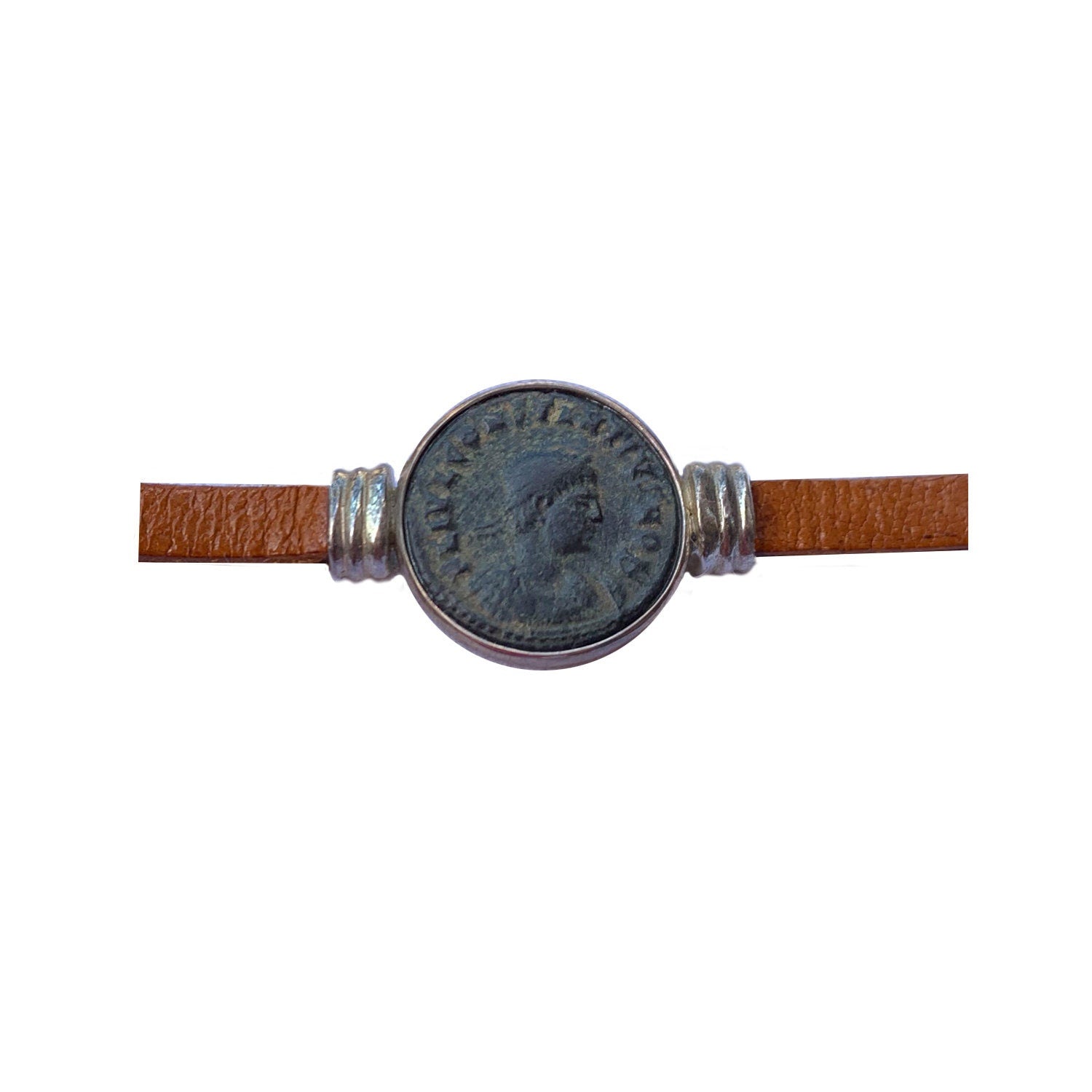 Authentic Roman coin Silver and Leather Bracelet depicting Emperor Constantius II