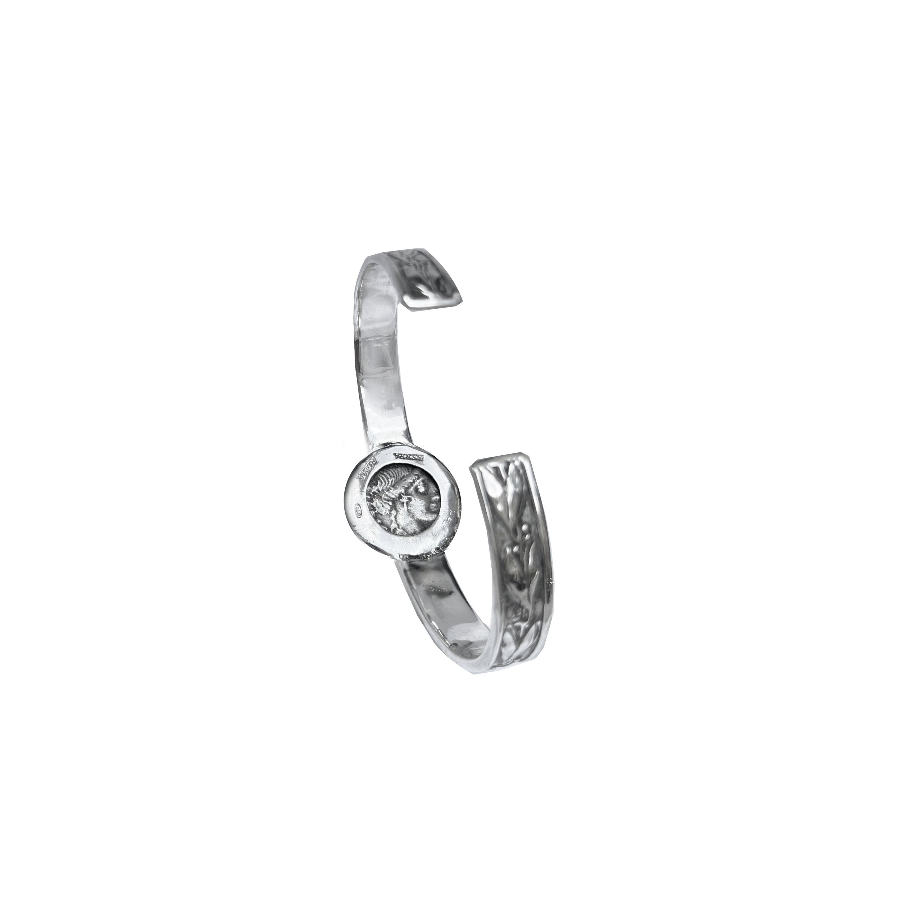 In this bracelet, in sterling silver, an authentic Roman coin from the 1st century BC has been set, which depicts the "dextrarum iunctio", or two right hands shaking: in ancient Rome, in addition to being the typical gesture of the two spouses after marriage, this gesture meant harmony, affinity, friendship and loyalty. On the other side of the coin we can see the depiction of the Pietas.