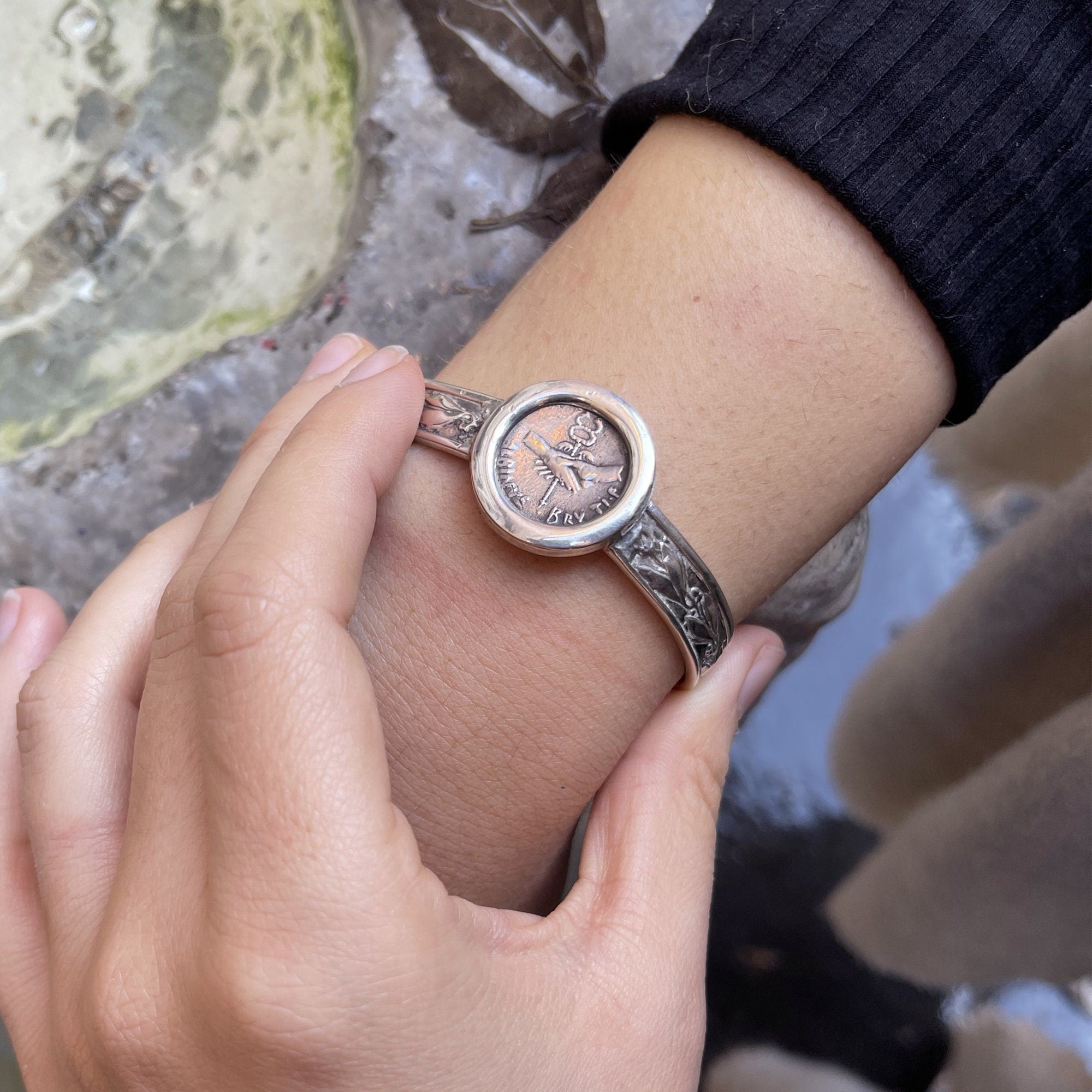 Authentic Roman coin Silver Bracelet depicting "Dextrarum Iunctio"