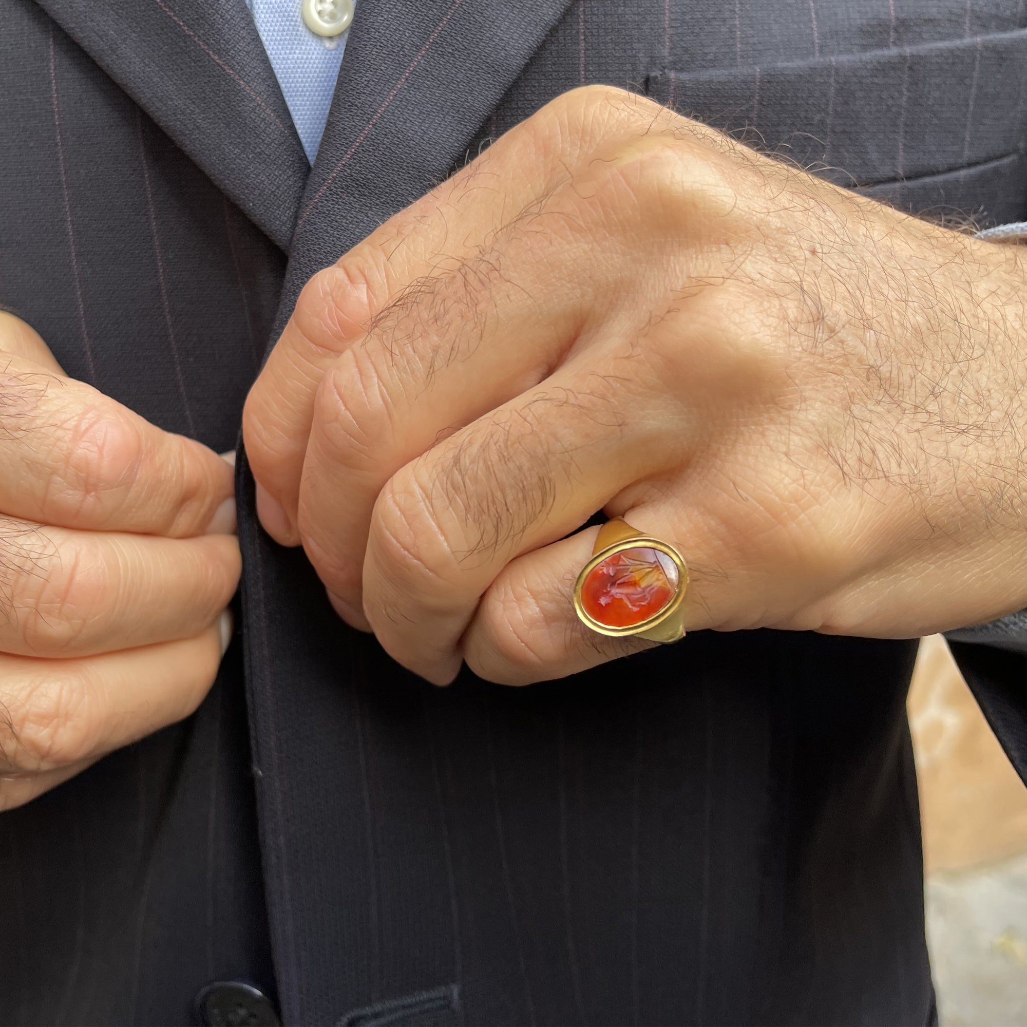 • Handmade 100% Made in Italy • Authentic Intaglio 2nd-3rd cent AD • Gemstone: Carnelian • Size: 7 1/2 US Adjustable • Band material: Gold 18KT • Order Processing Time: 1 Business Day • Worldwide Delivery Time: 1-5 Business Days