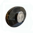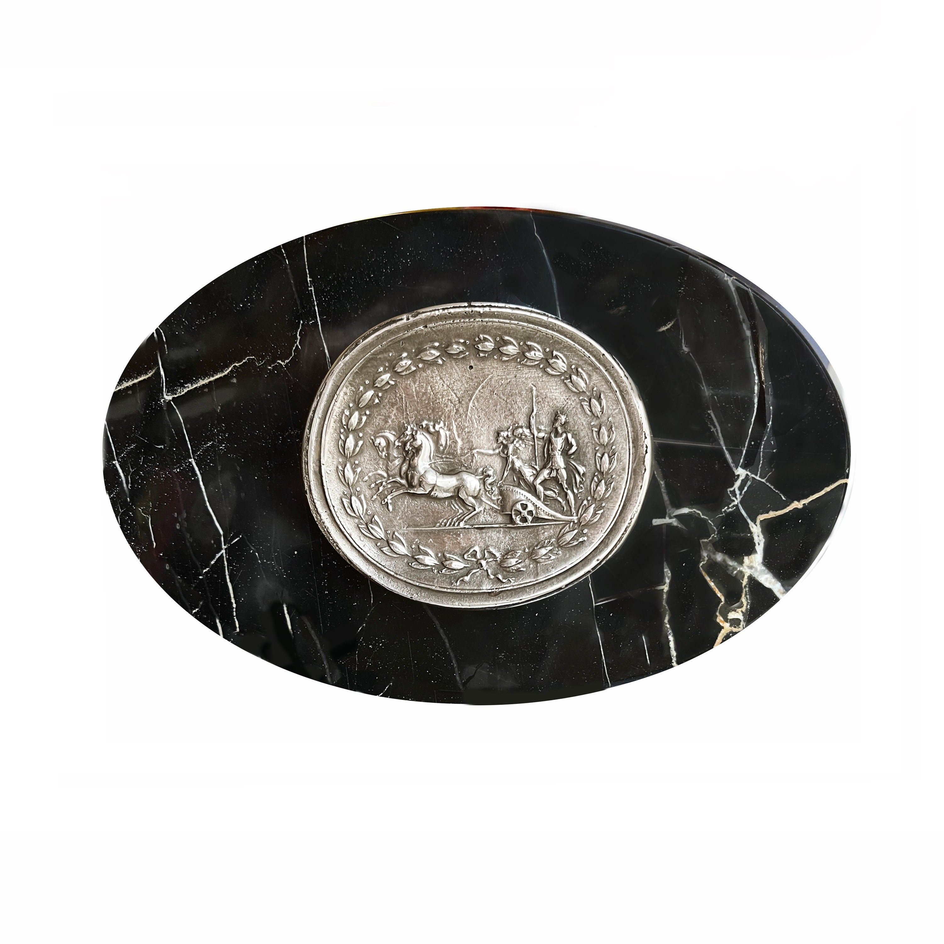 Portoro marble paperweight with sterling silver plaque depicting the Emperor Augustus on the chariot of winged Victory