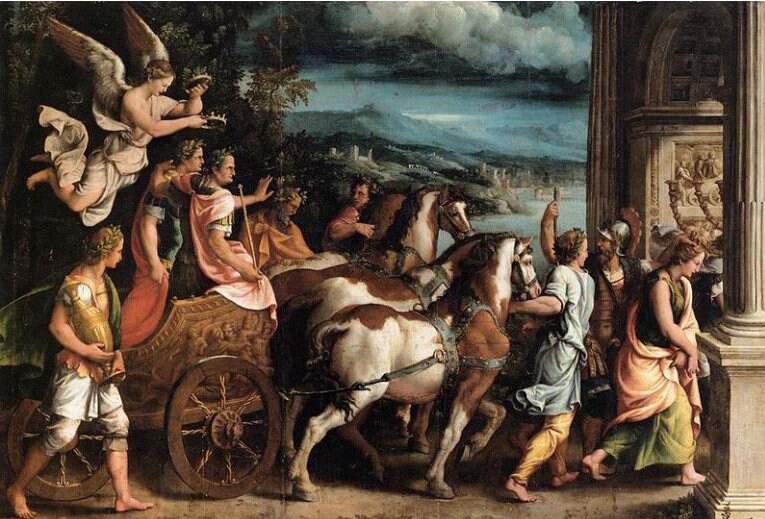 In the early Republican age the Triumph's chariot was pulled by a pair of horses, which later became 4 and after Augustus also 6 ... also following a victory achieved by a general, the Triumph was always paid to the Emperor.