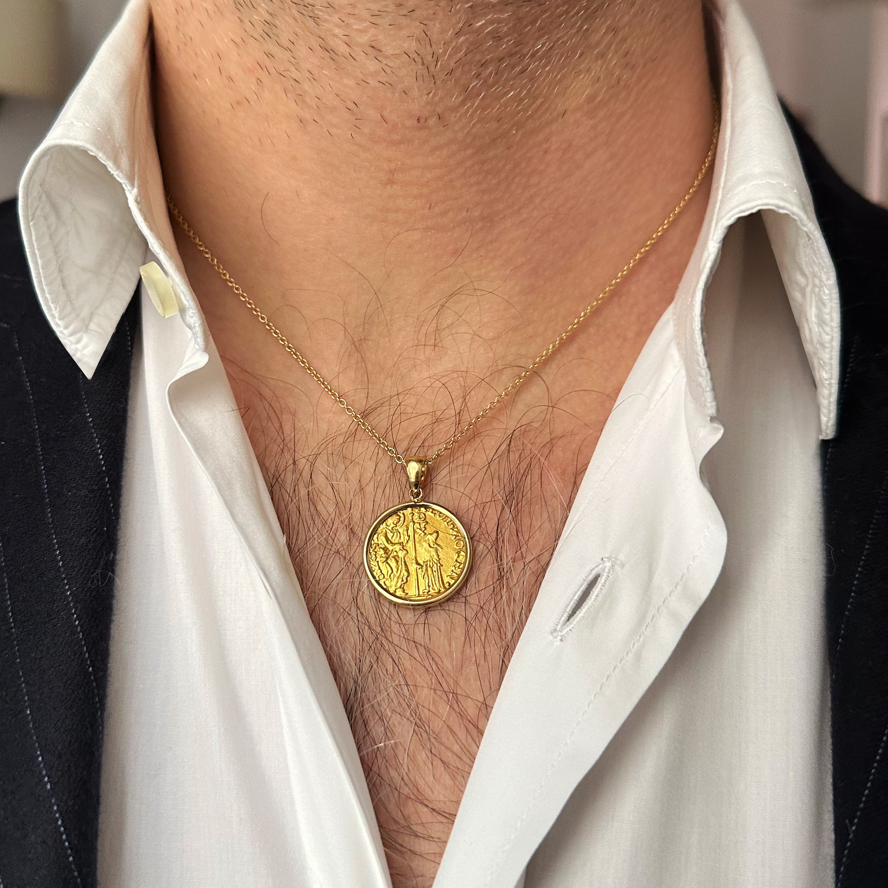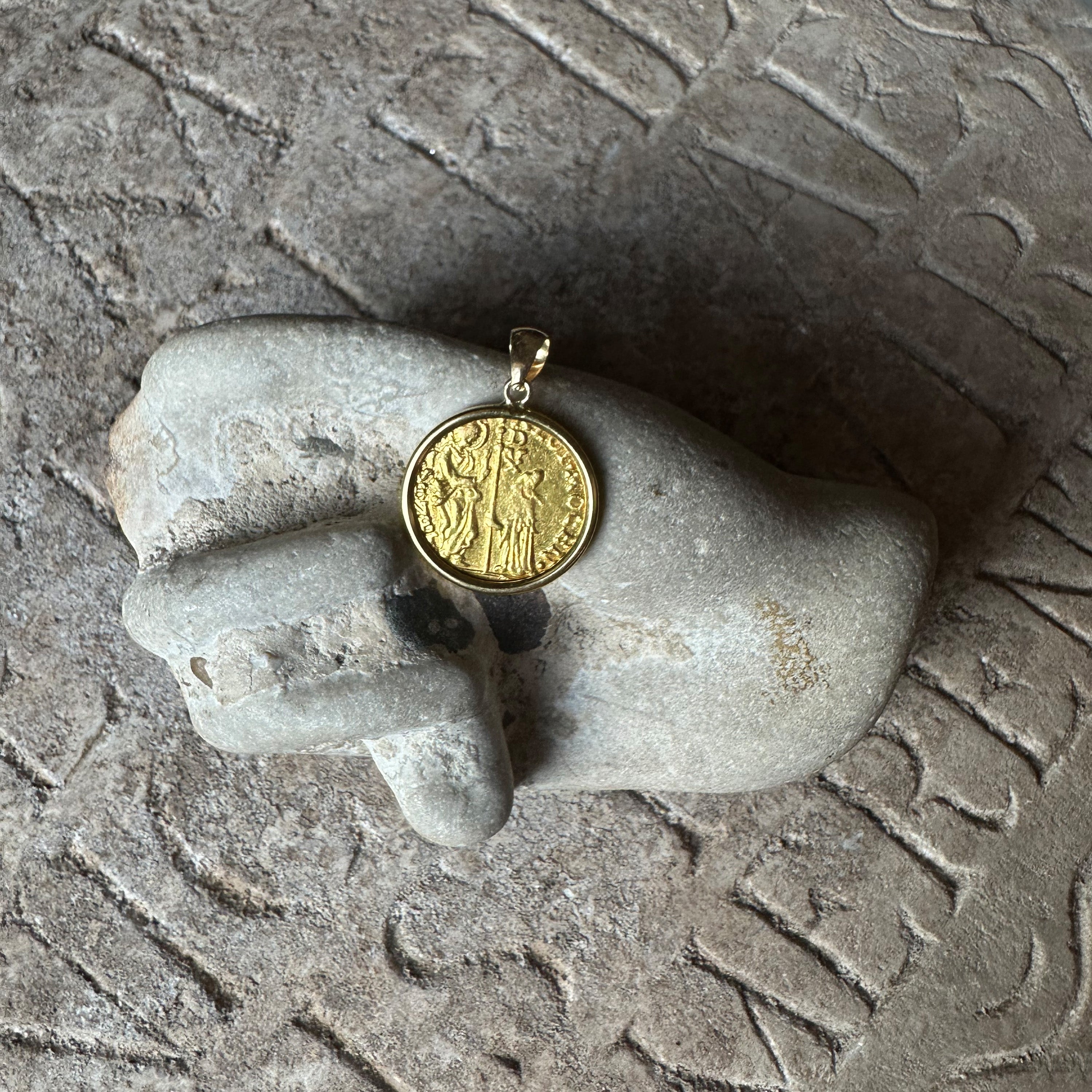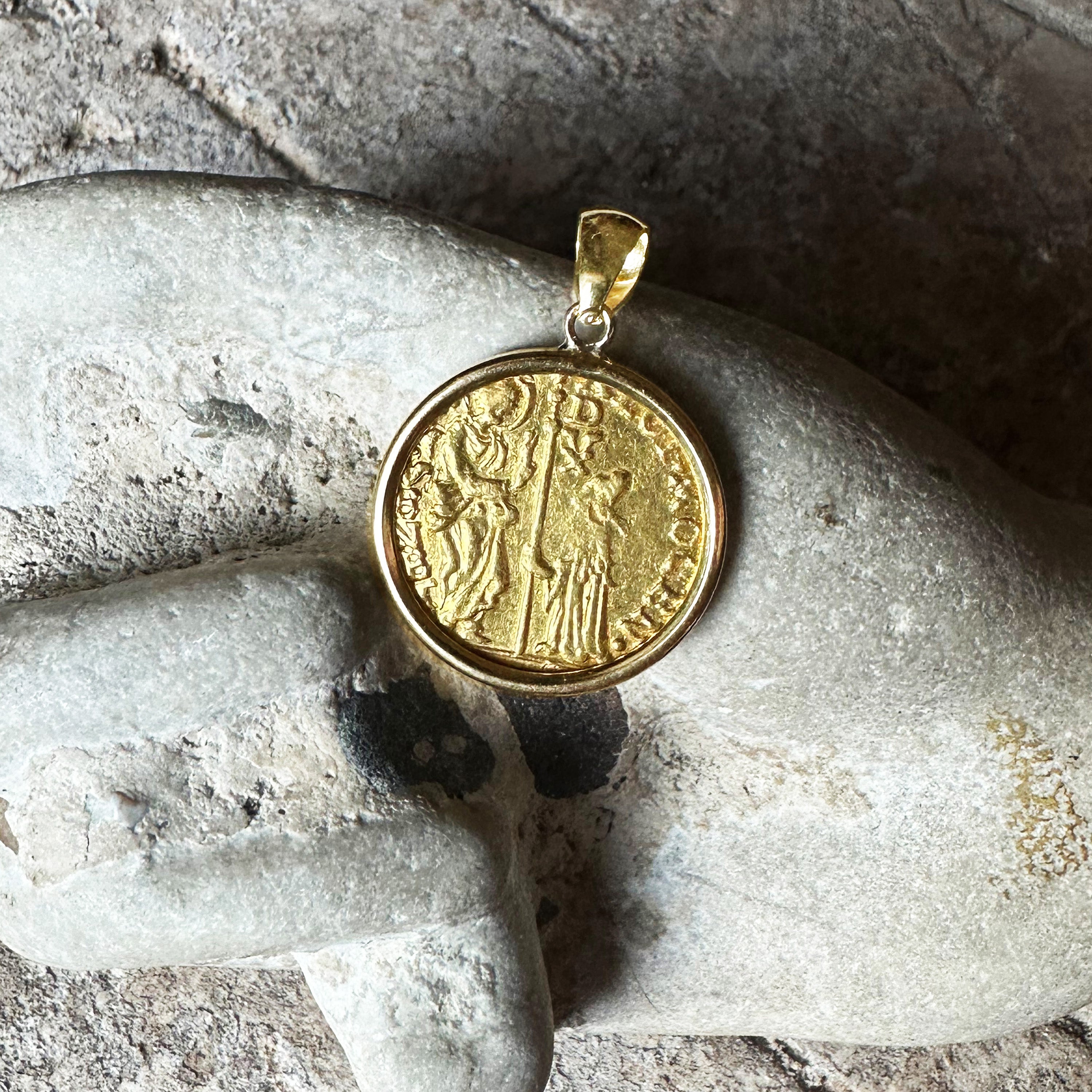 This pendant beautifully showcases a genuine piece of history, not only as a striking jewelry piece but also as a conversation starter and a unique artifact from the age of Venetian Republic. Crafted in solid 18kt gold, it is a timeless way to carry a piece of the past with you. Ideal for history enthusiasts, collectors, or anyone who appreciates intricate and meaningful artistry.