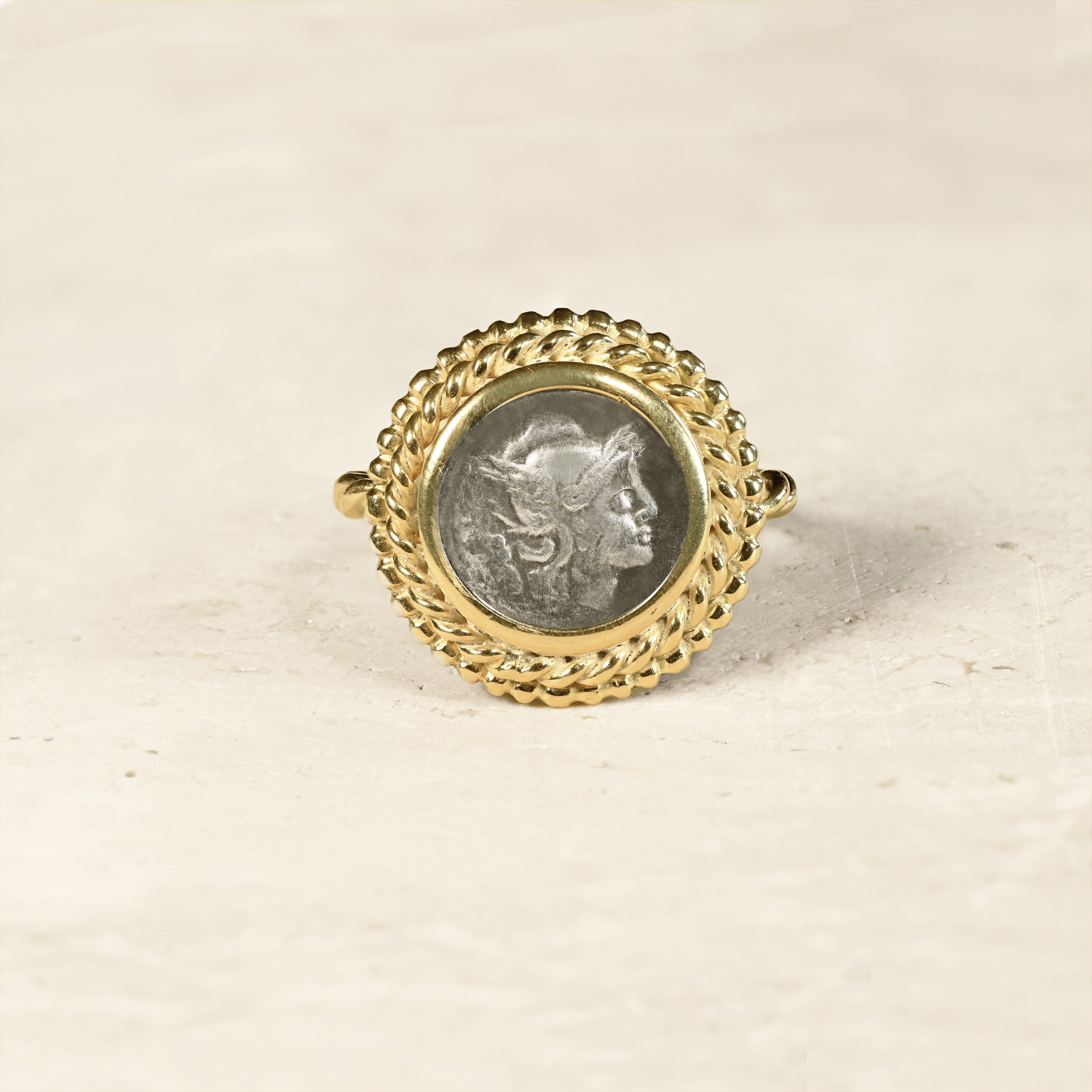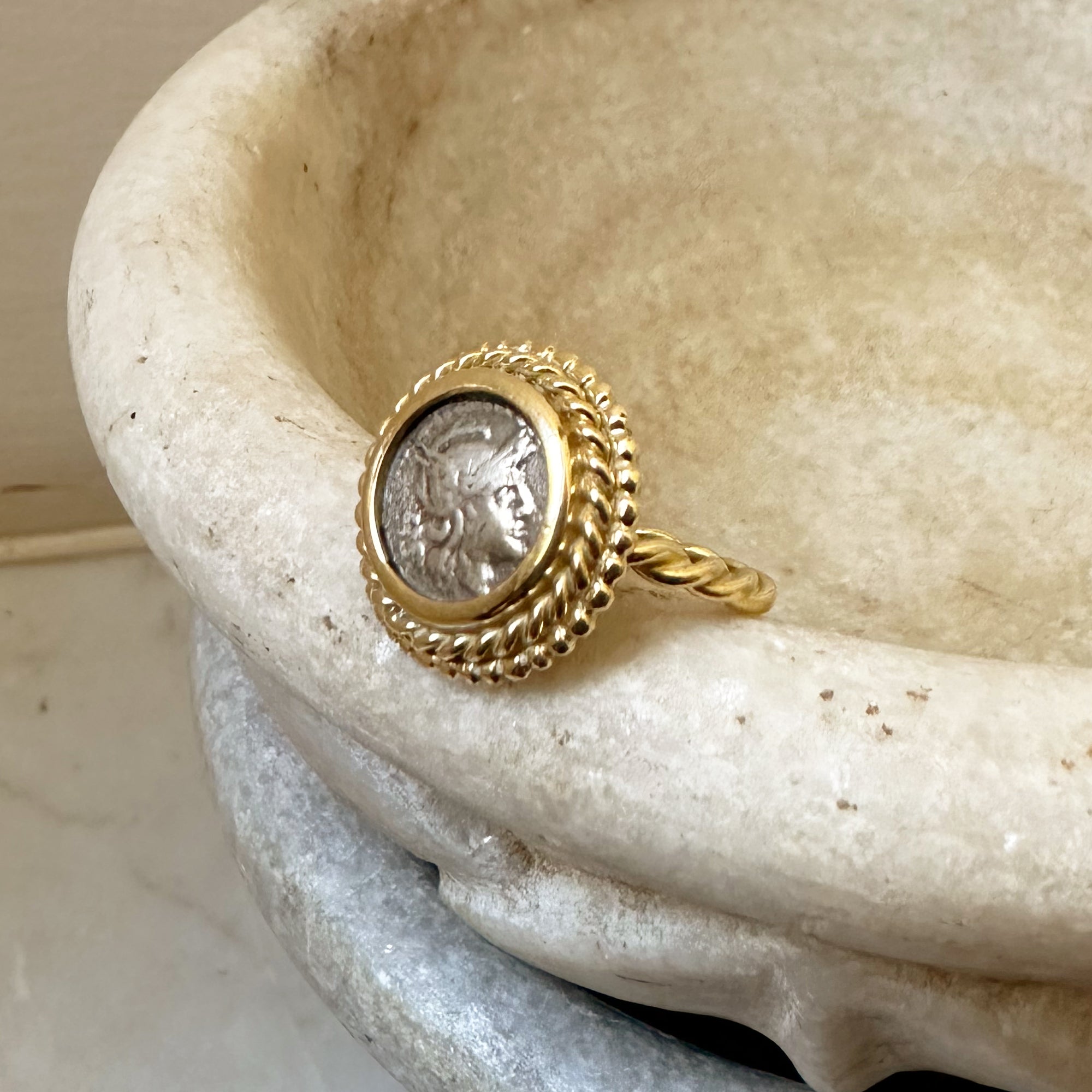 GODDESS ROME Authentic Ancient Roman Coin 211 BC 18 Kt Gold Ring