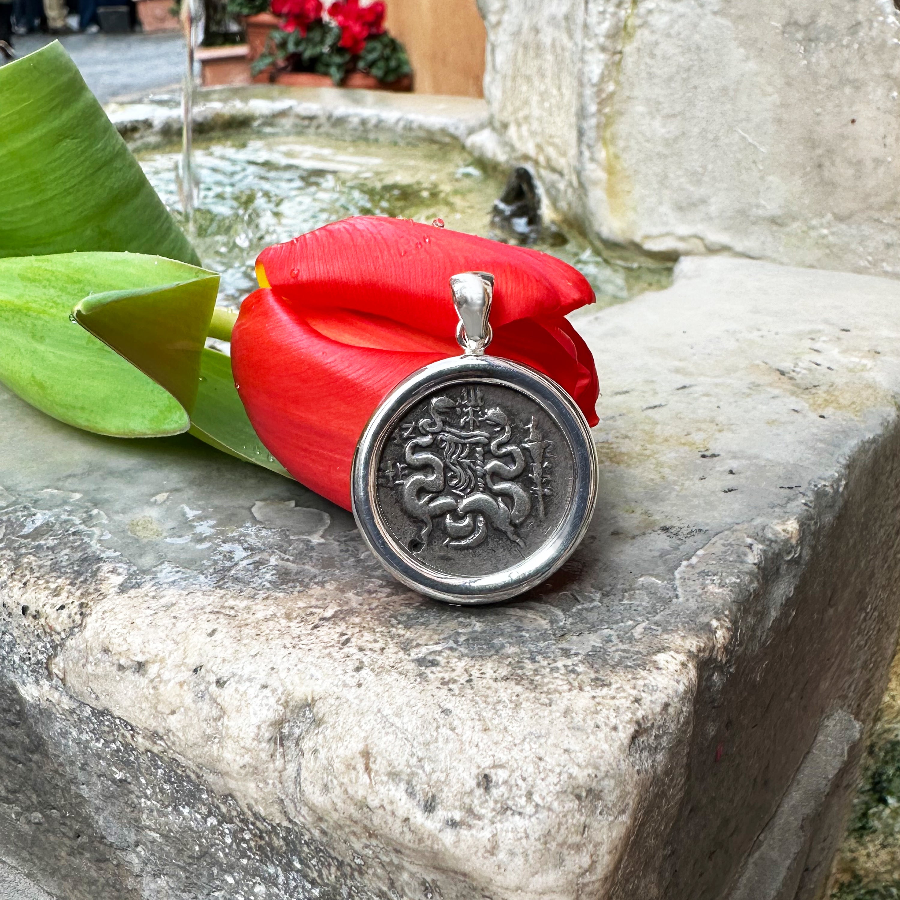 Our jewelry store, Serra Roma, proudly presents an exquisite collection that beautifully honors the ancient traditions of Greek and Roman civilizations. Each piece in our collection, including authentic ancient Roman and Greek coins and intaglios, is accompanied by a certificate of authenticity, providing proof of its historical significance and origin.