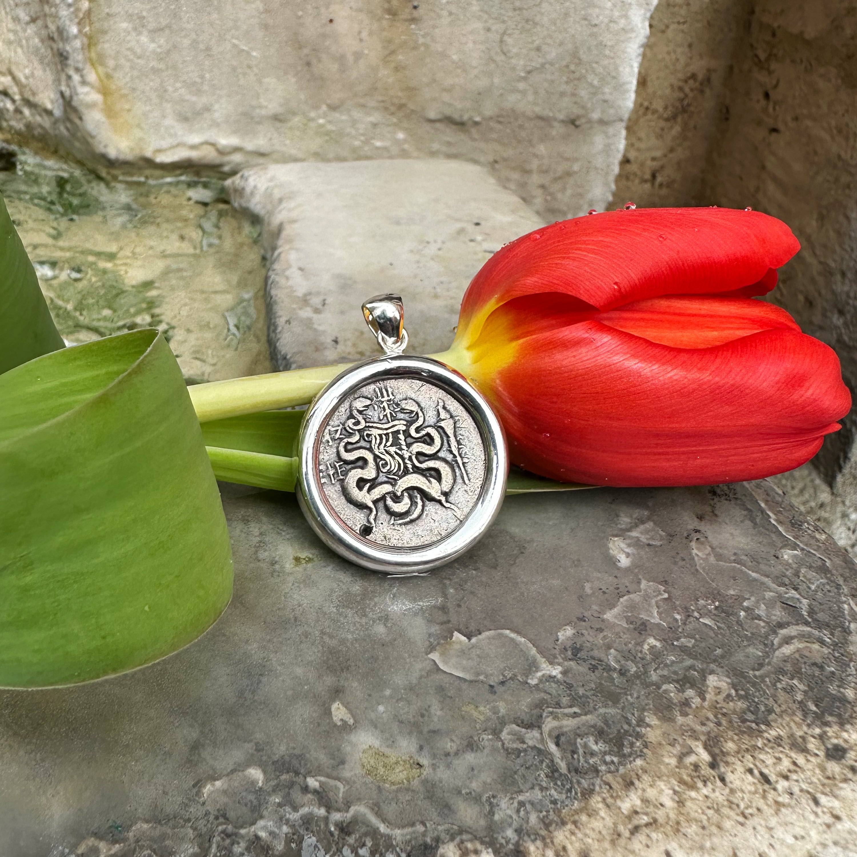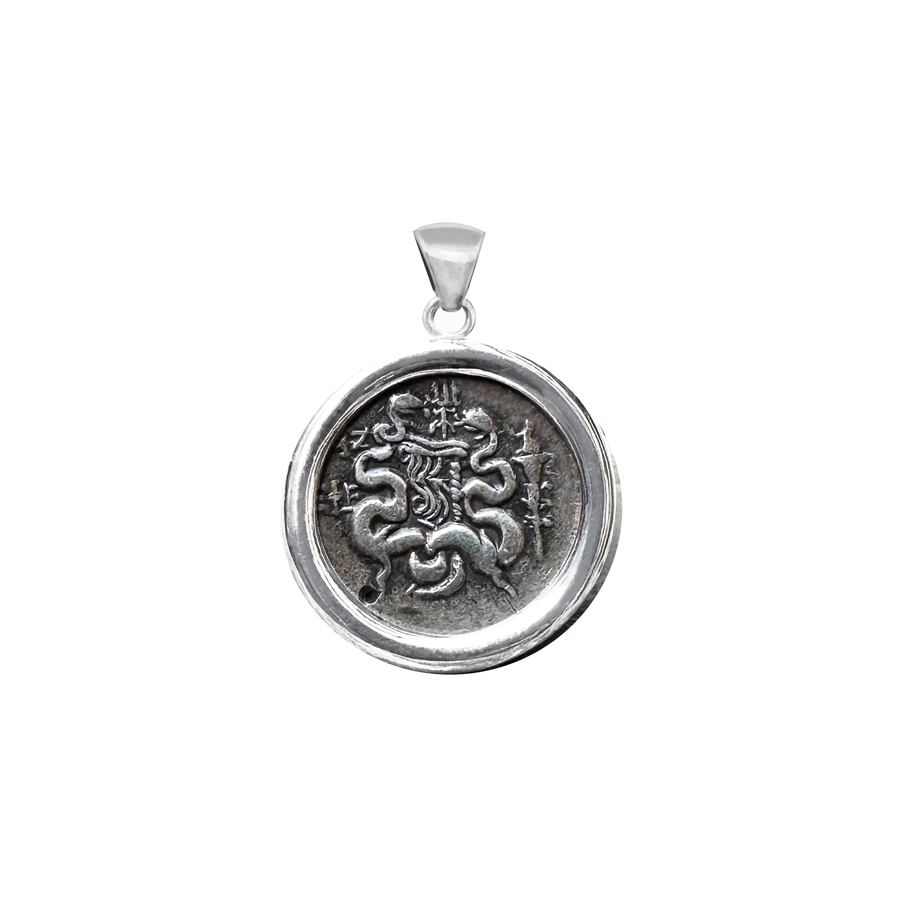 BOW BEETWEN TWO SNAKES Genuine Ancient Greek coin 190-133 BC Silver Pendant
