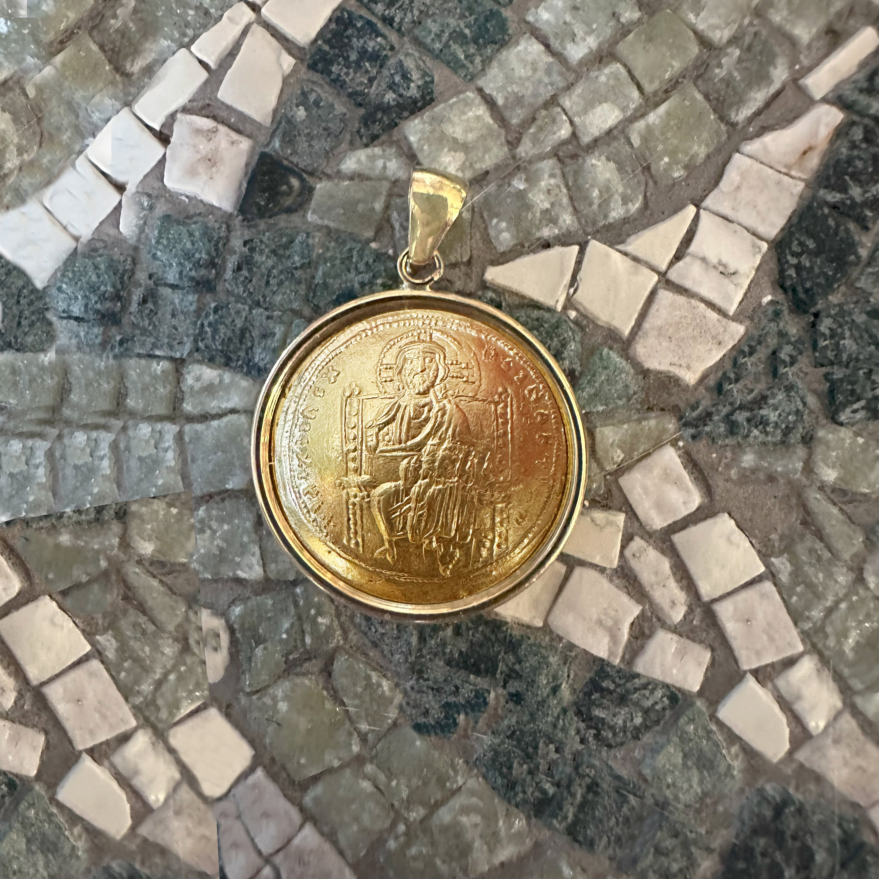 CHRIST Genuine Byzantine Gold Coin 10th Cent. AD 18kt Gold Pendant; Michael, Constantius and Andronicus on rear