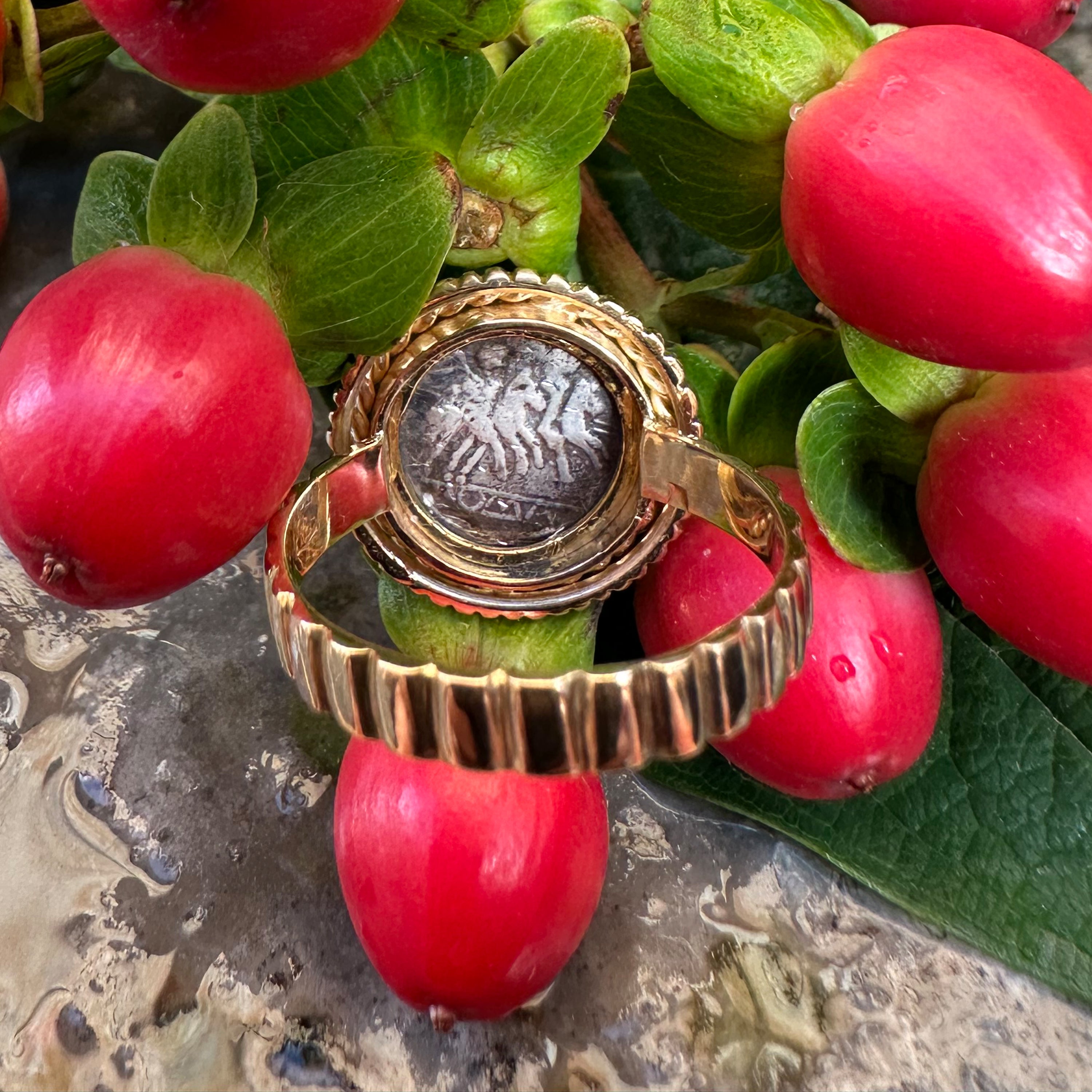 GODDESS ROME Authentic Ancient Roman Coin 211 BC 18 Kt Gold Ring