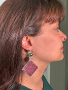 These handmade earrings are meticulously crafted by our skilled goldsmiths using ancient Red "Porphyry" Roman marble and green "Serpentino" from Greece. These marble fragments once adorned the floors and walls of imperial villas, adding to their grandeur and elegance. Characterized by irregular light green and yellow spots, Serpentino was quarried along the Sparta road and prized for its unique beauty.