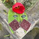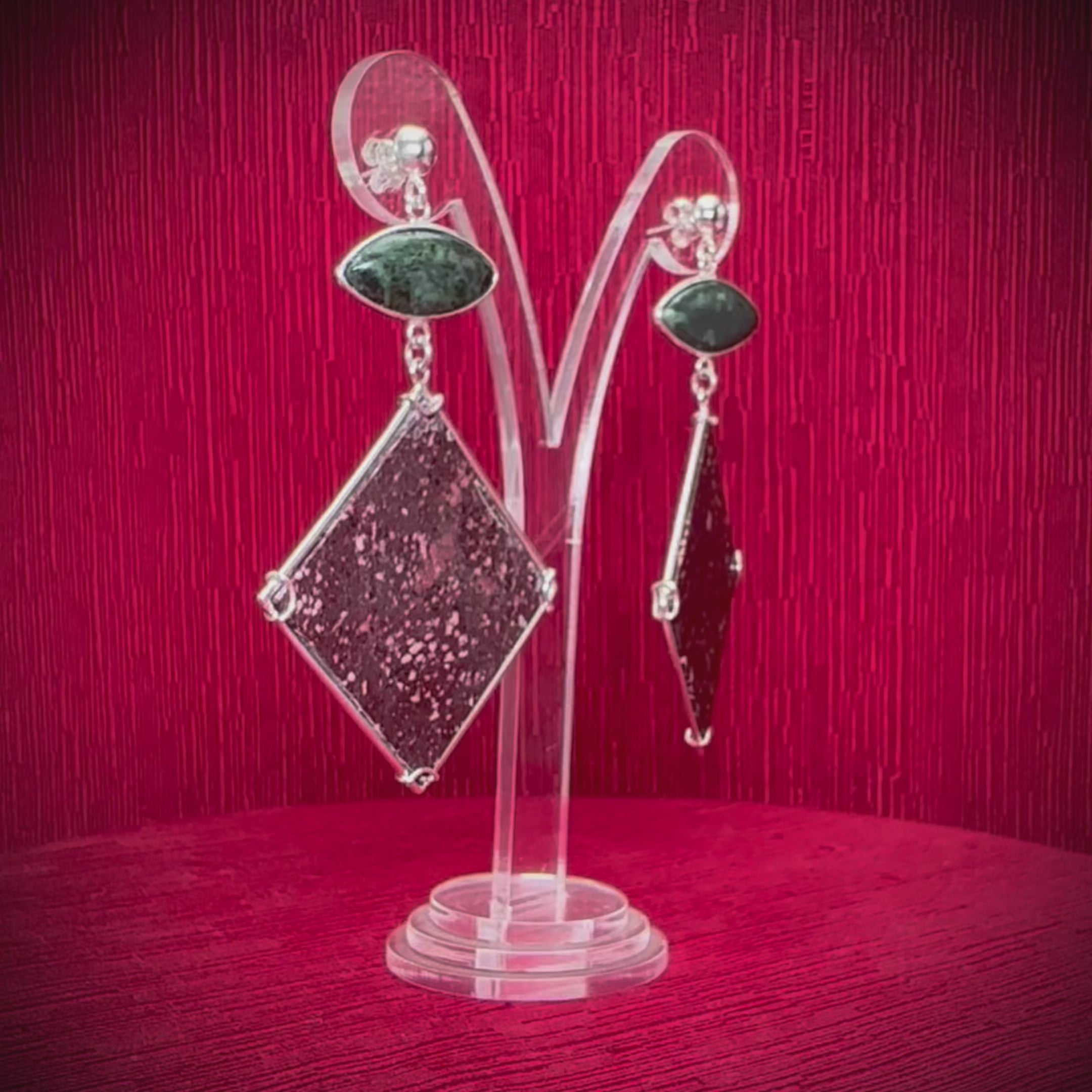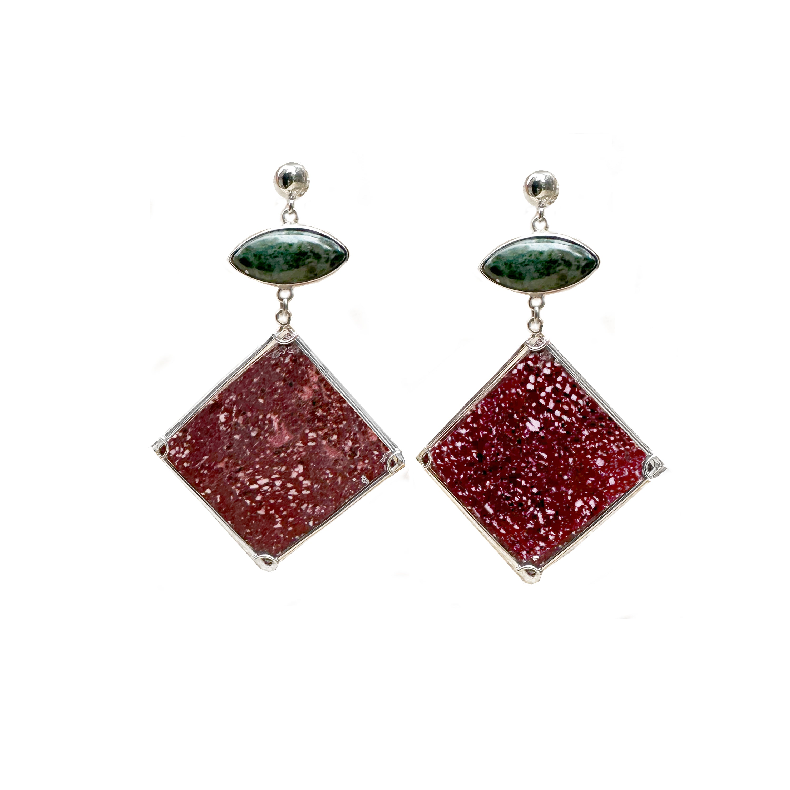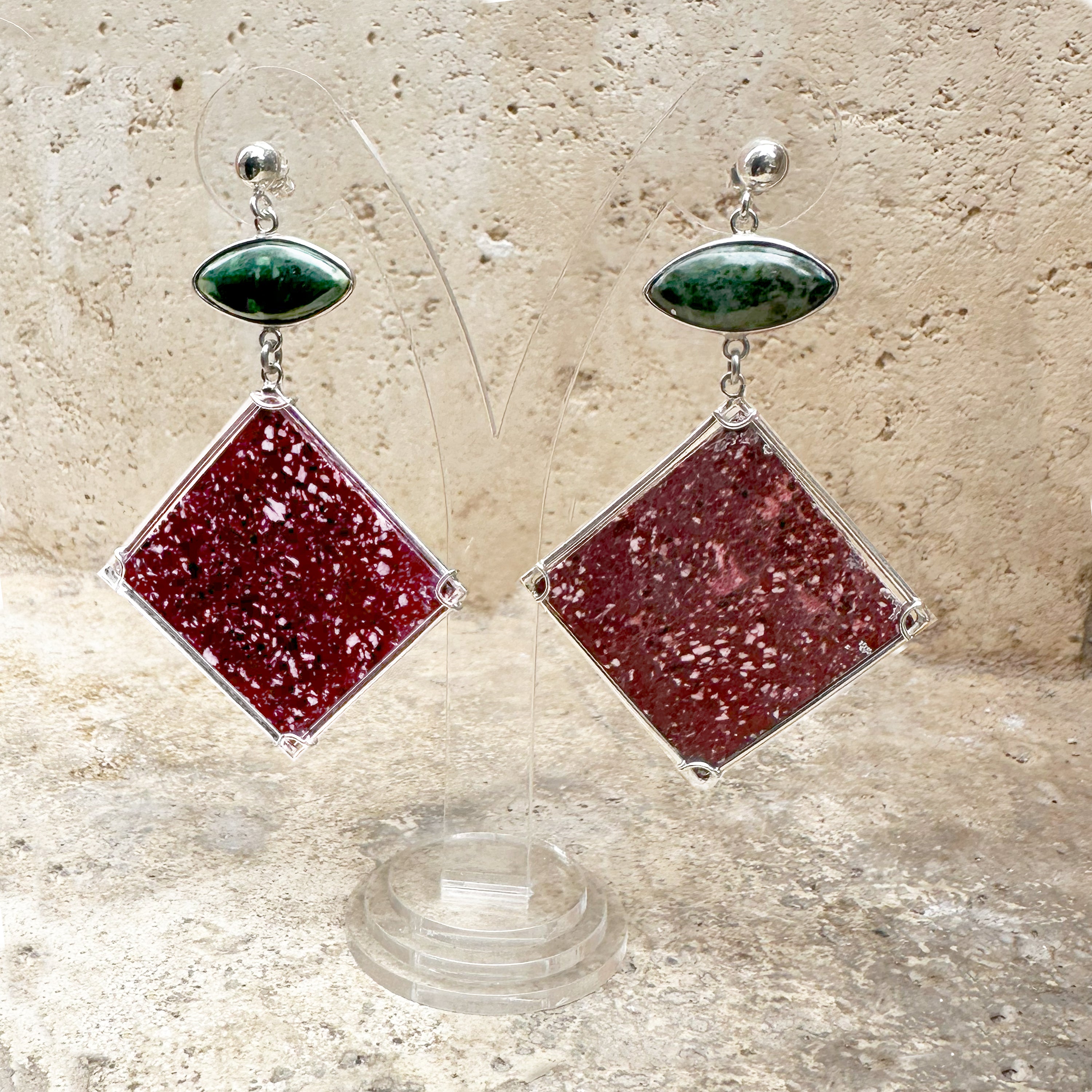 Green Greek Serpentino and Red Roman Porphyry Marbles Sterling Silver Earrings