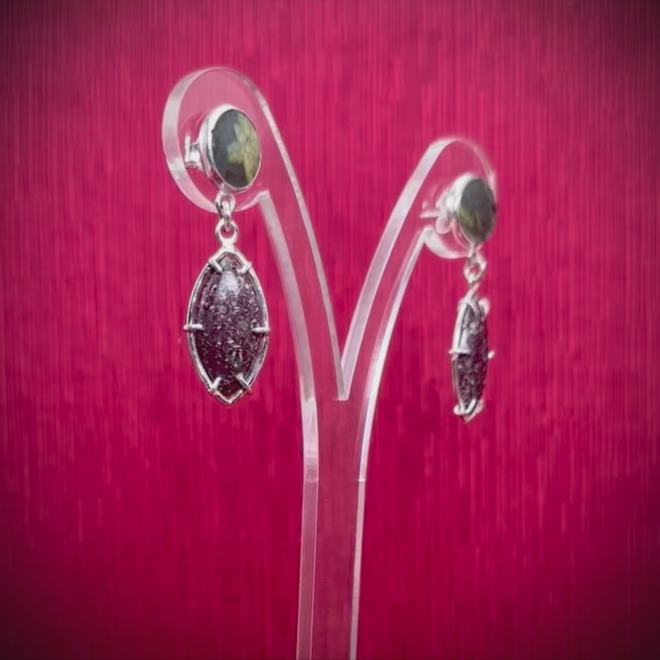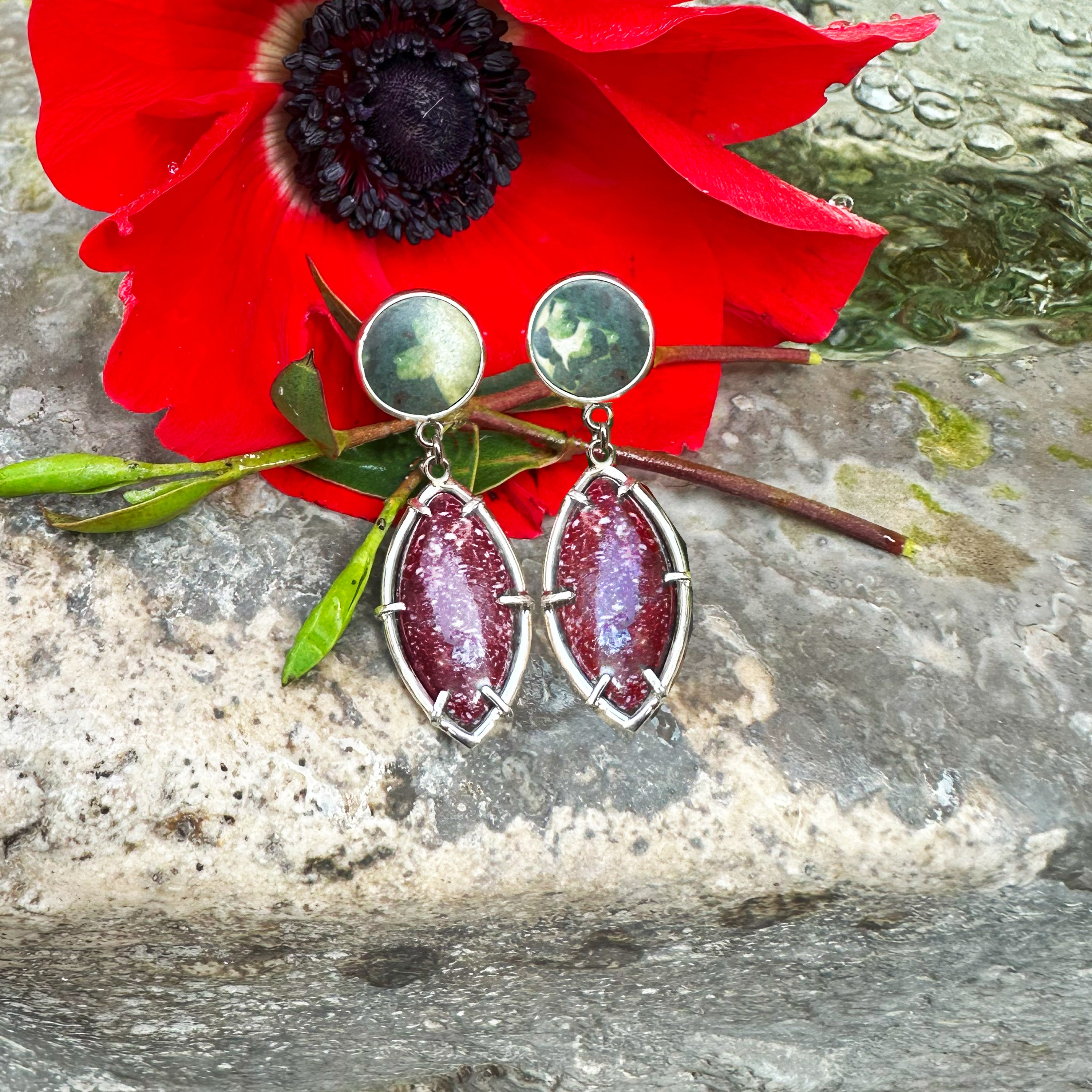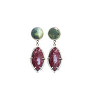 Green Greek Serpentino and Red Roman Porphyry Marbles Sterling Silver Earrings