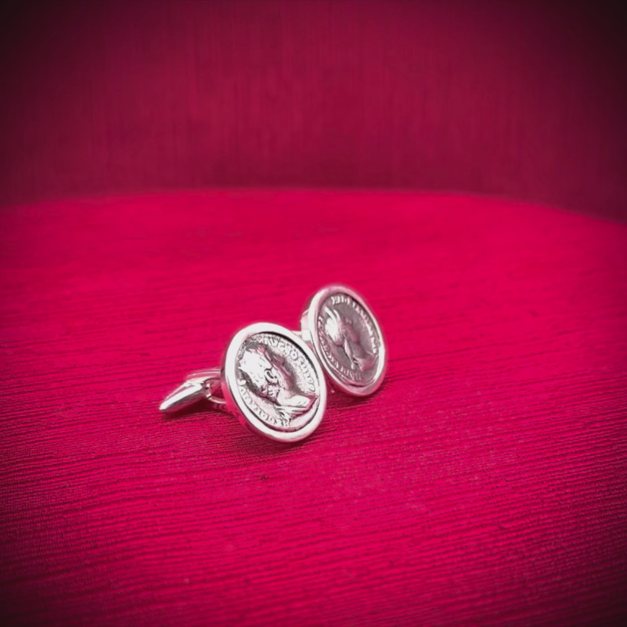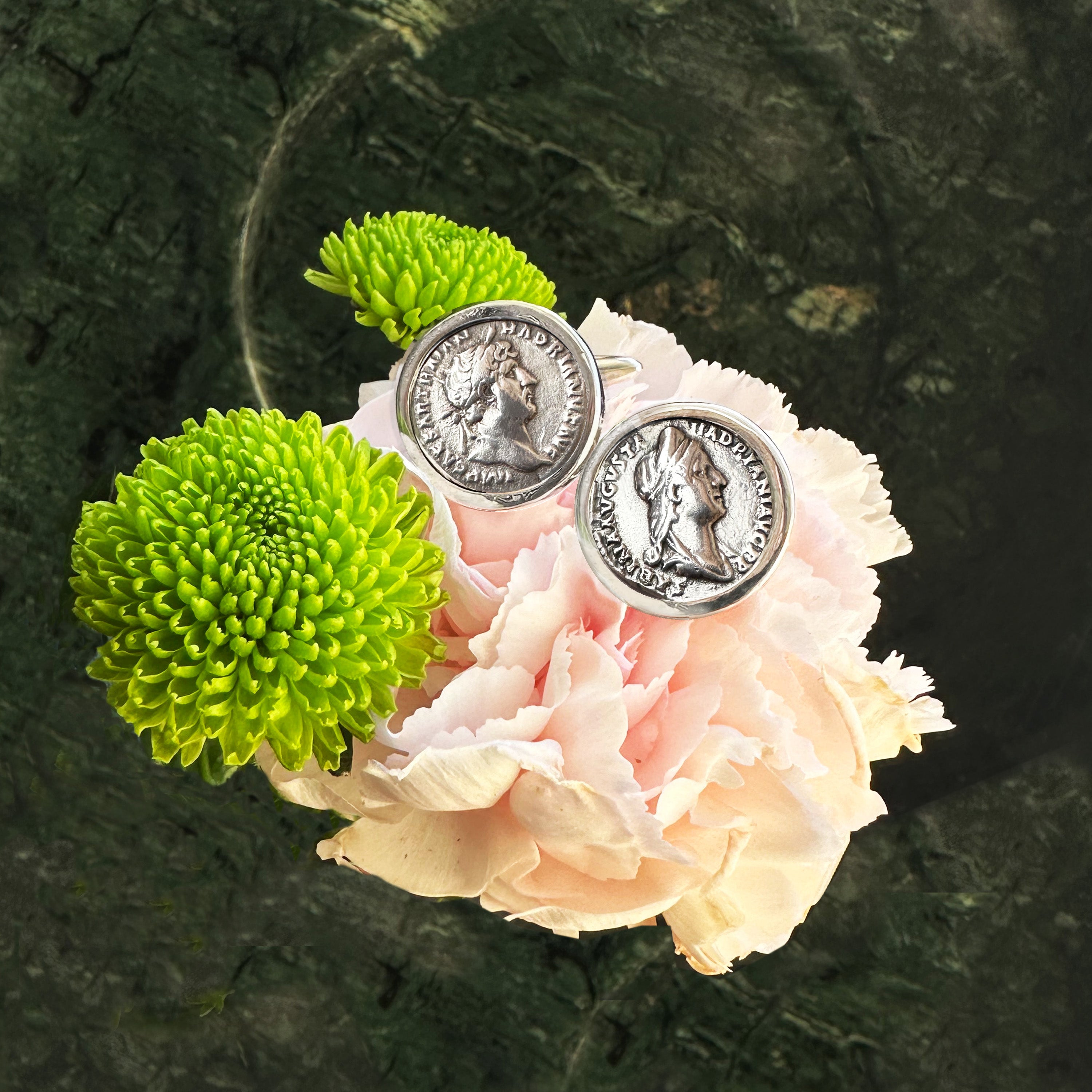 Ancient Roman coins silver cufflinks depicting Emperor Hadrian and his wife Sabina