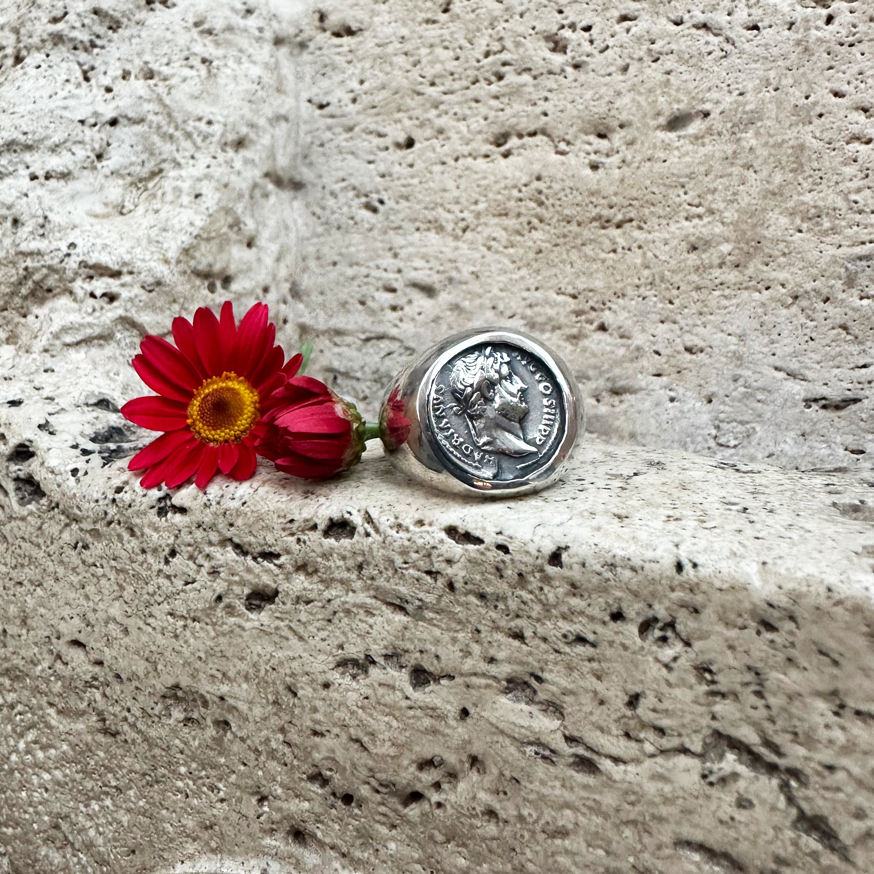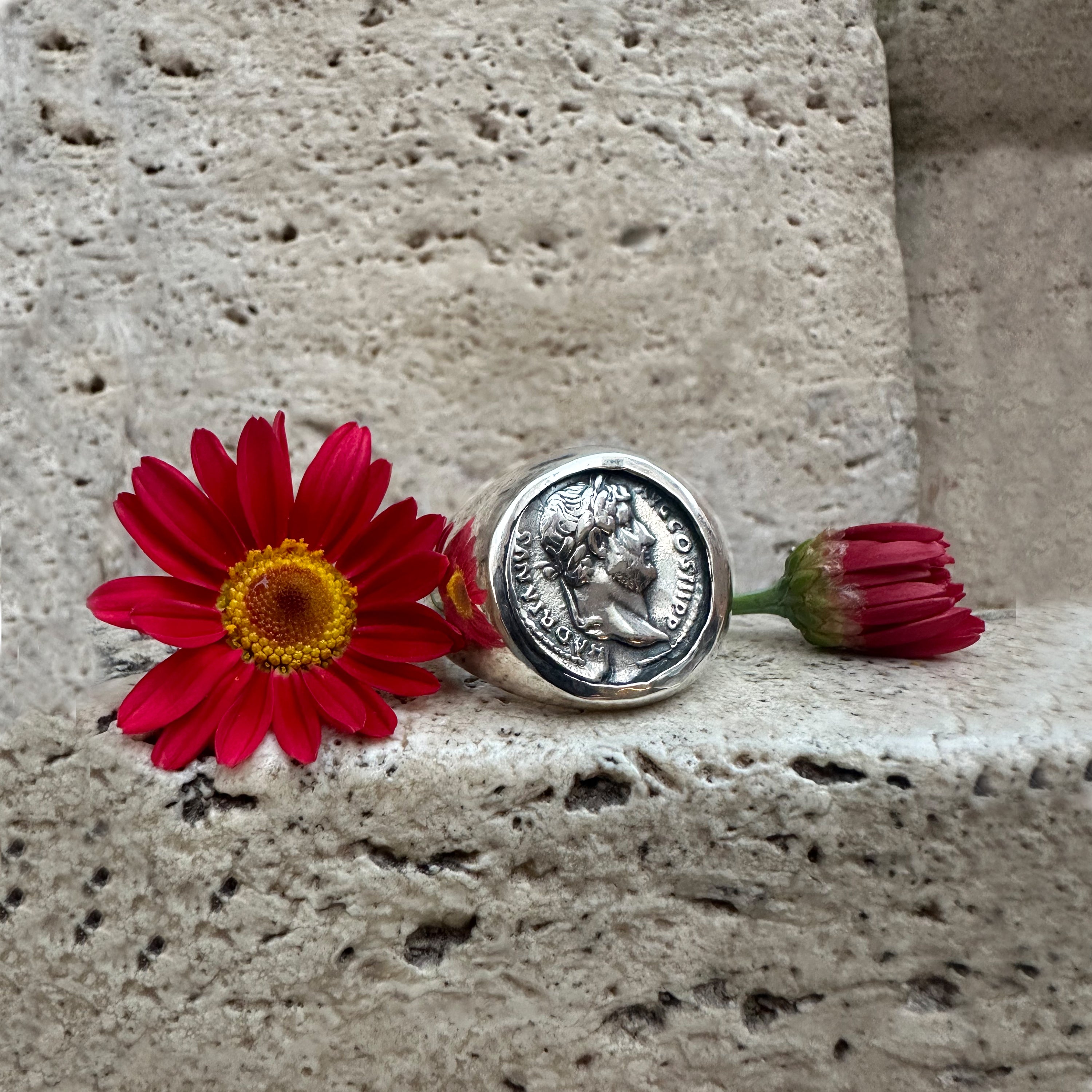EMPEROR HADRIAN Authentic Ancient Roman Coin 2nd century AD Silver Ring