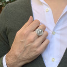 This sterling silver ring holds an authentic Roman coin dating back to the 2nd century AD featuring Emperor Hadrian. On the reverse side of the coin, the goddess Fortuna is depicted with scales and a cornucopia.