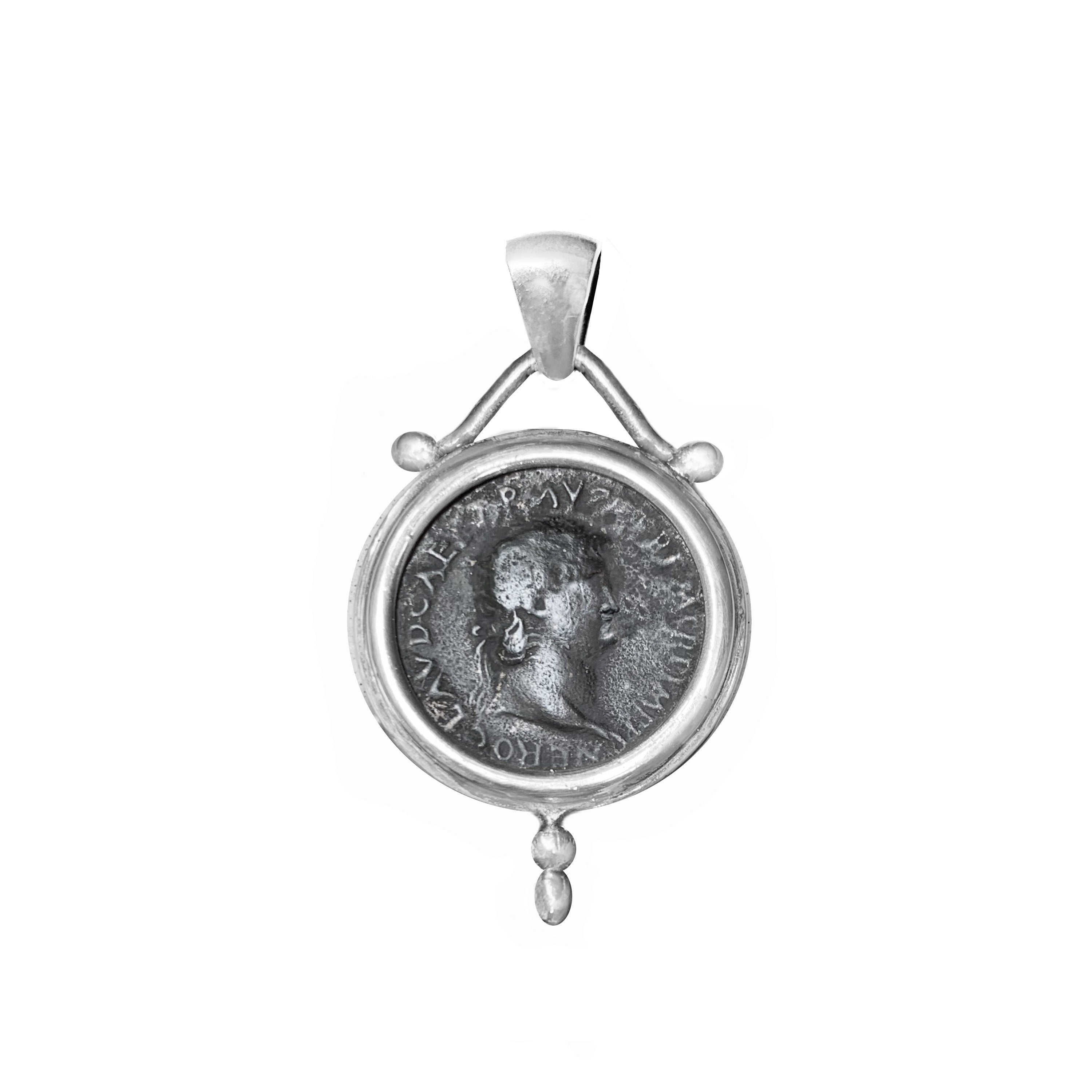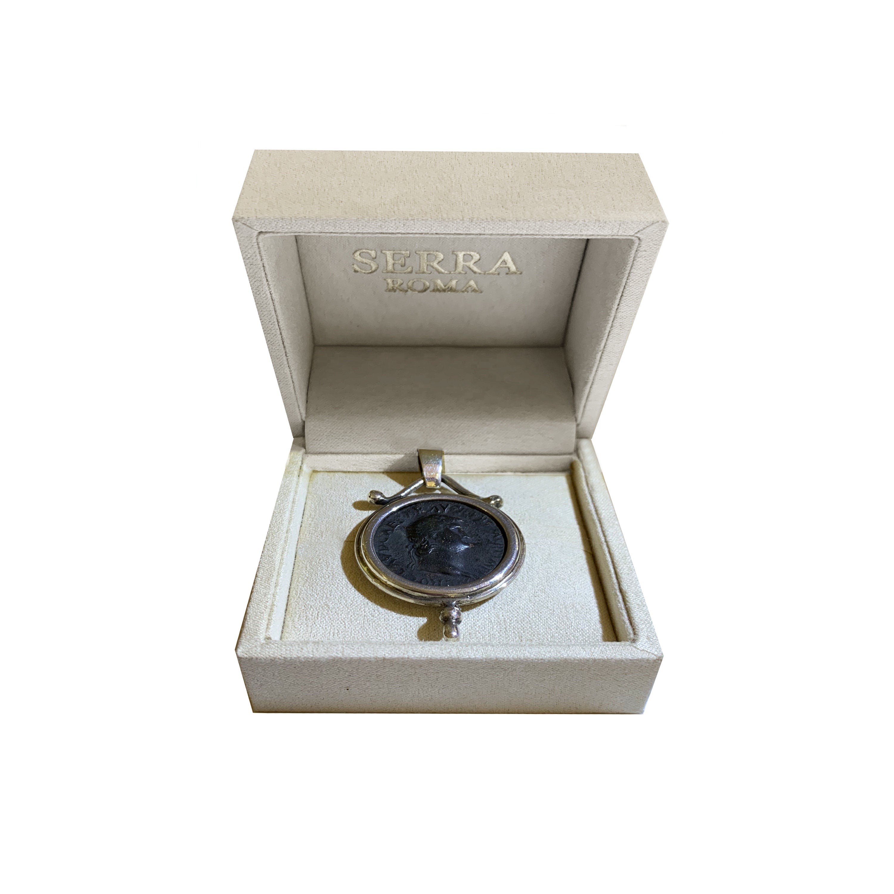This sterling silver pendant showcases an authentic Roman coin dating back to the 1st century AD,