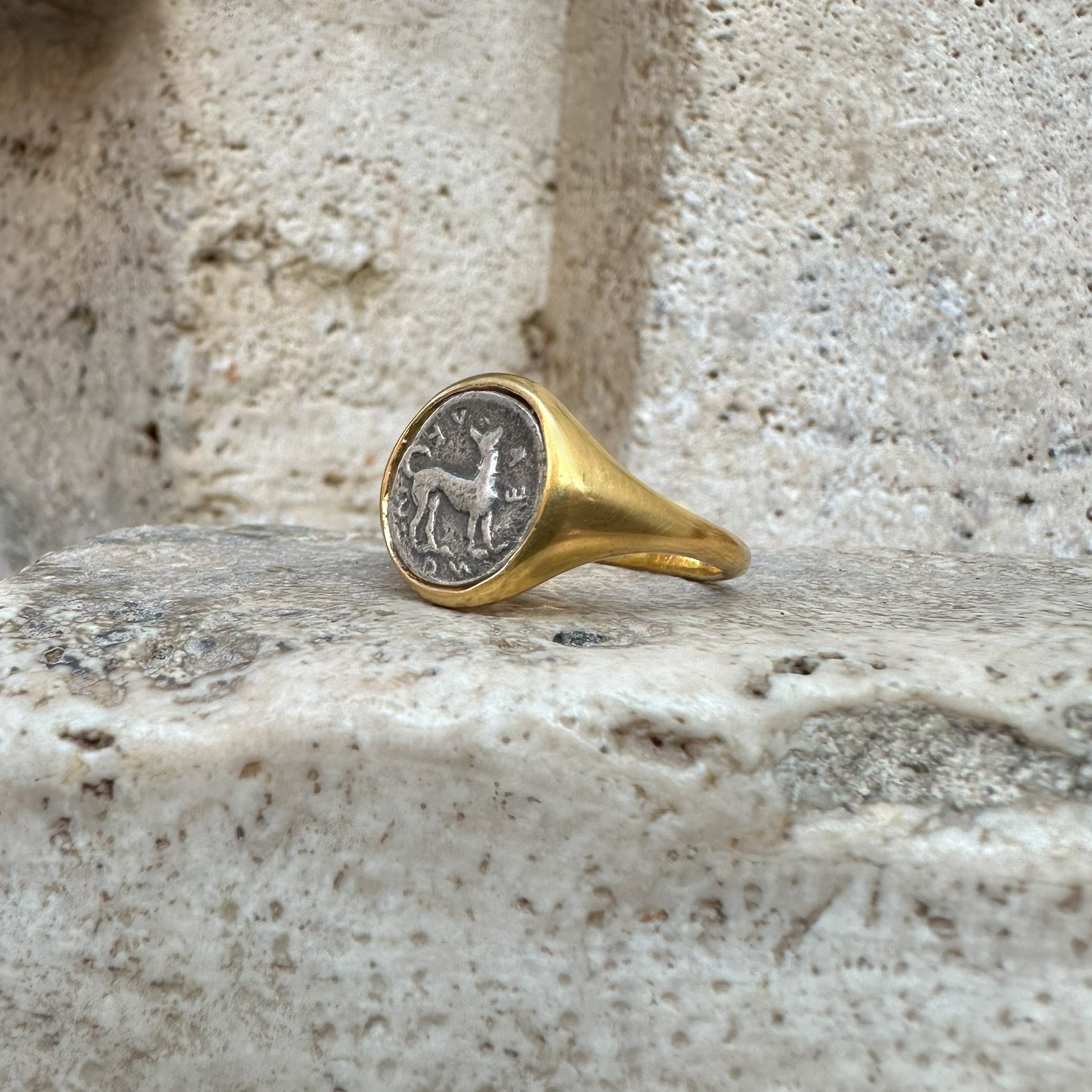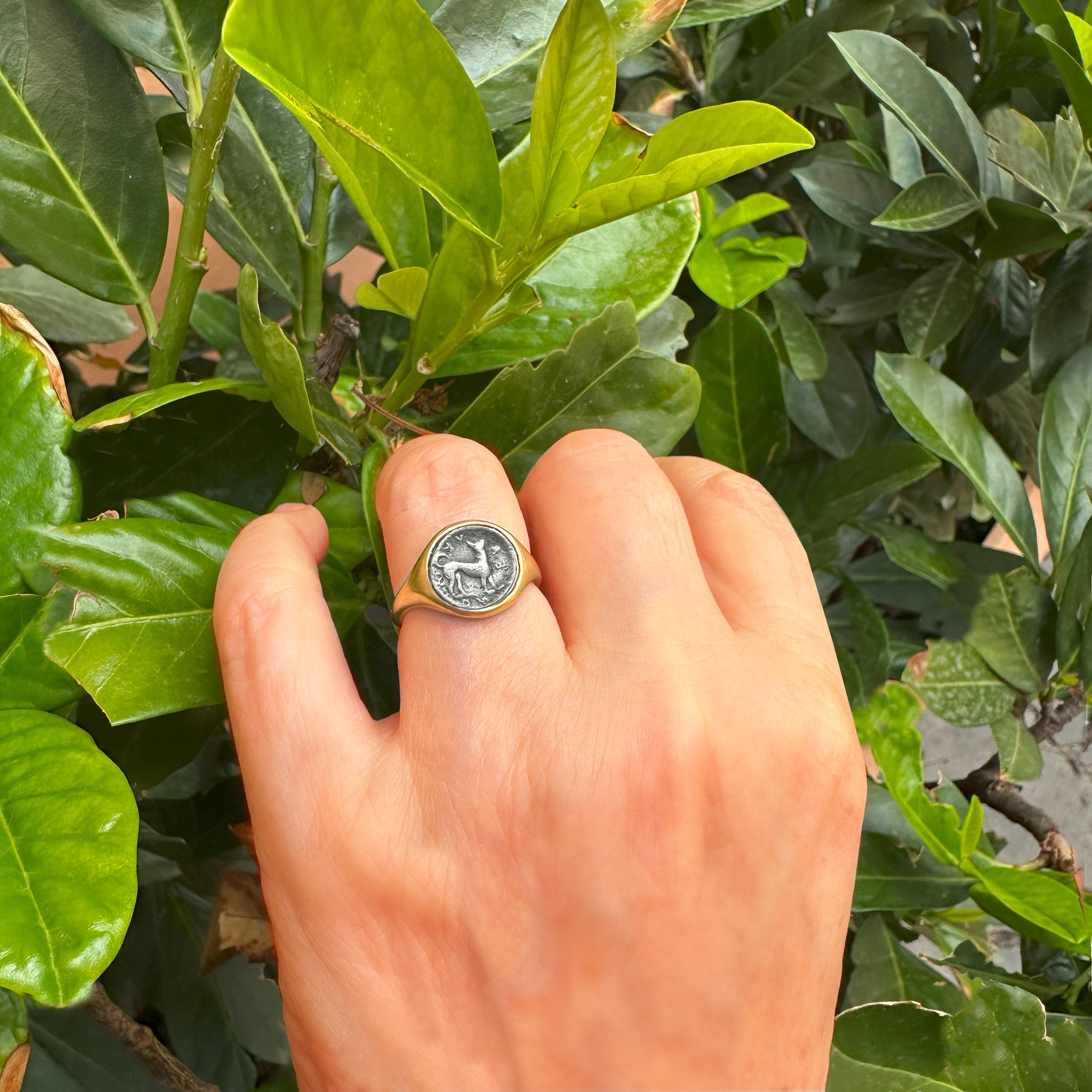 HOUND DOG Authentic Ancient Greek Coin 460-450 BC 18 Kt Gold Ring