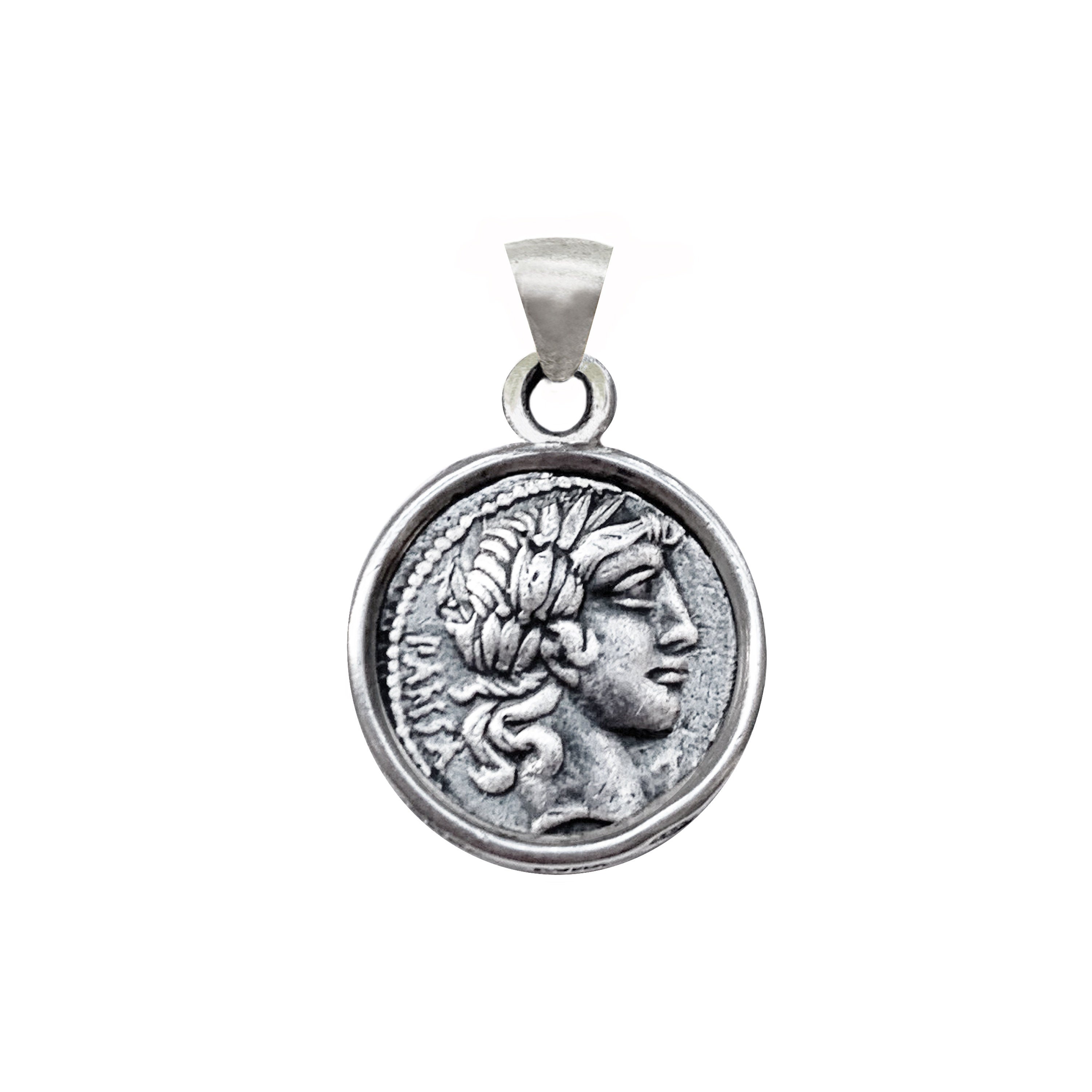 Genuine Roman Silver Coin Pendant depicting God Apollo, symbol of Beauty