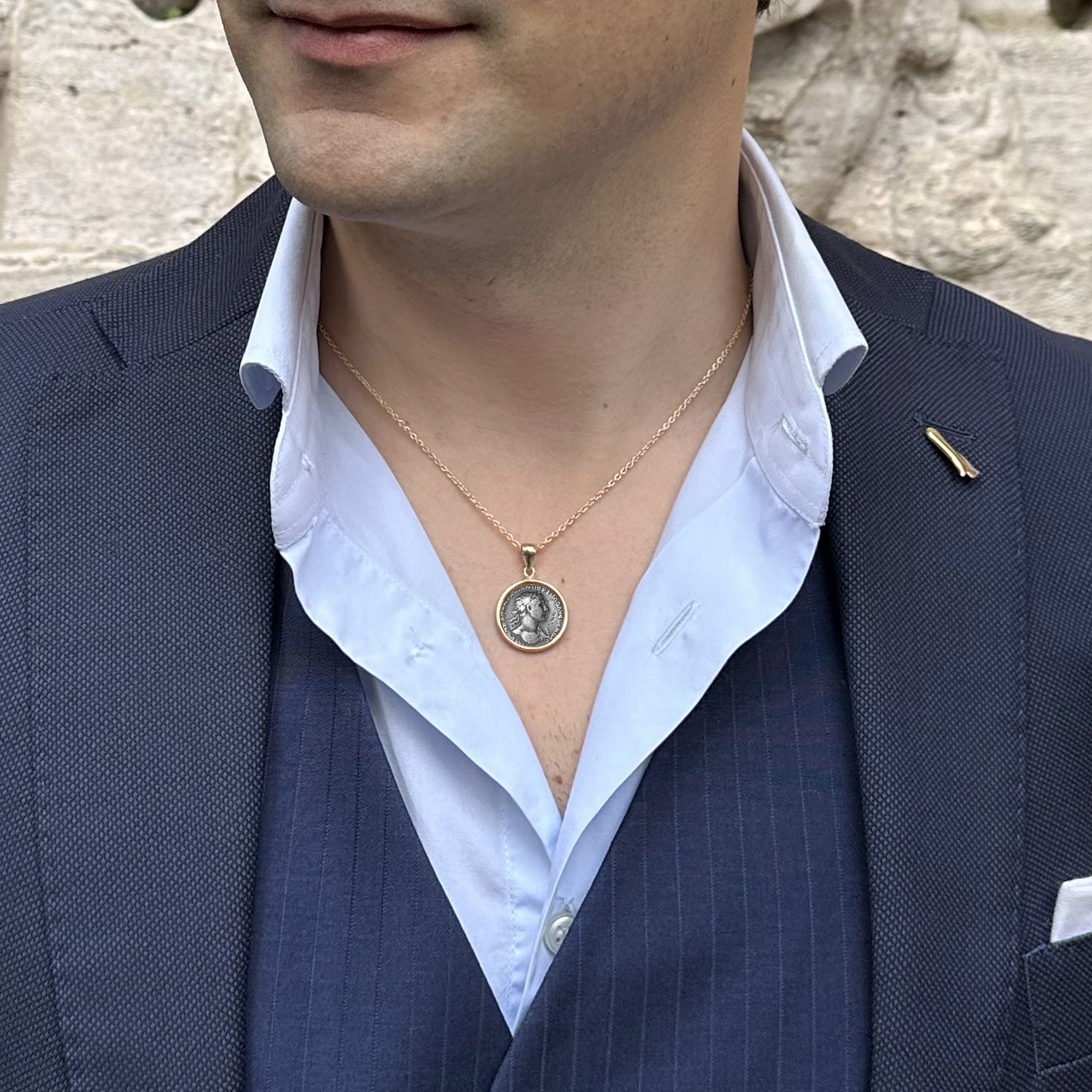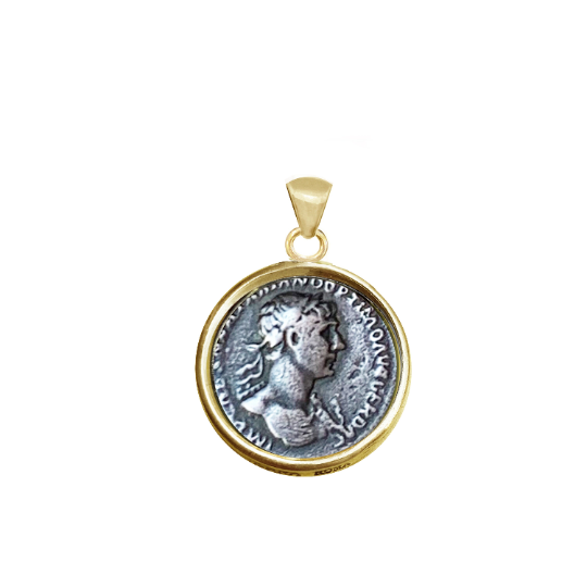 Genuine Ancient Roman coin 2nd cent. AD 18Kt gold pendant depicting Emperor Trajan