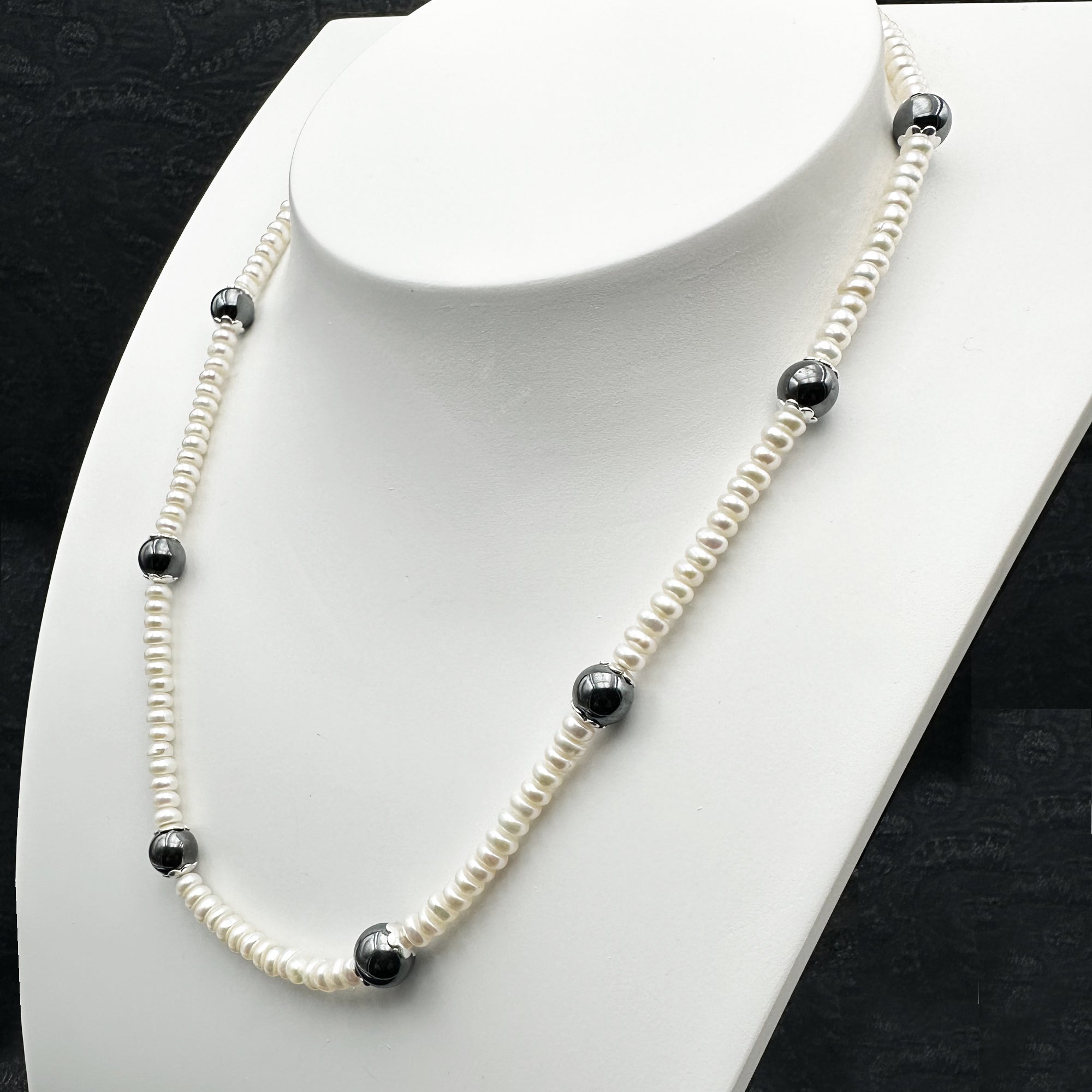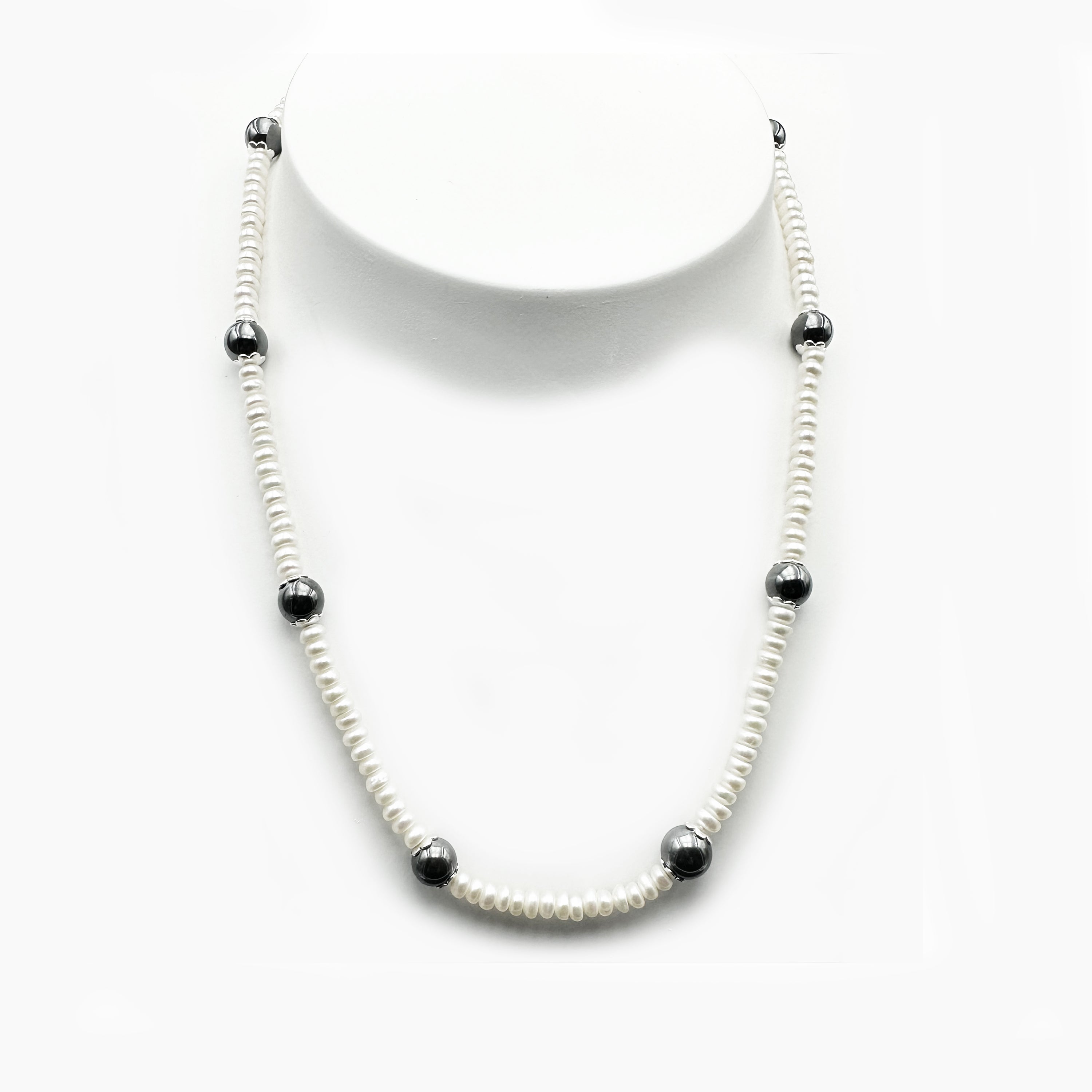 Onion-Shaped Freshwater Pearls and Hematite Silver Necklace