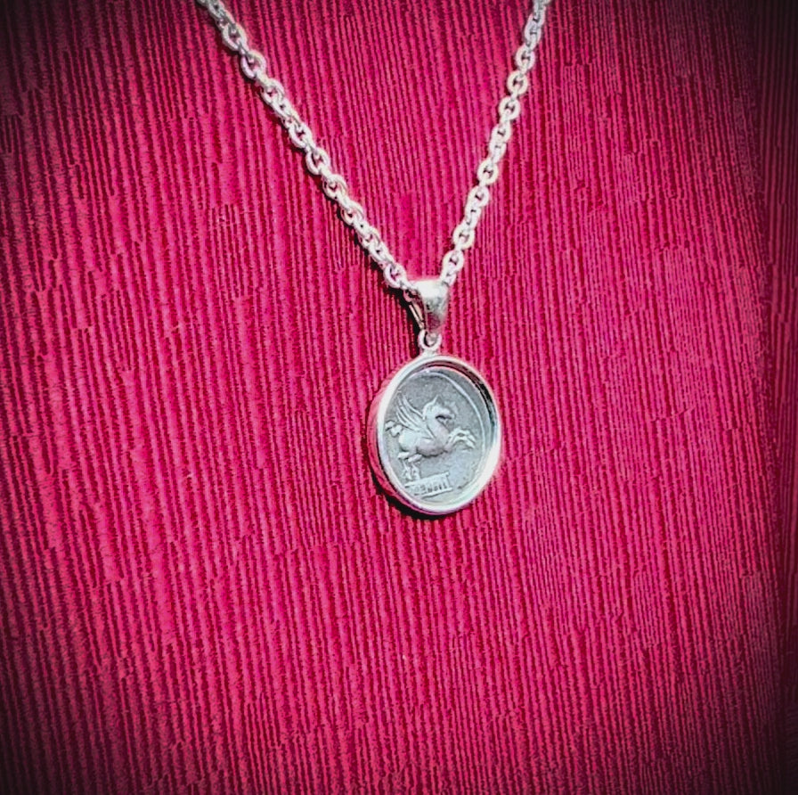WINGED HORSE PEGASUS Genuine Ancient Greek Coin 90 BC Silver Pendant