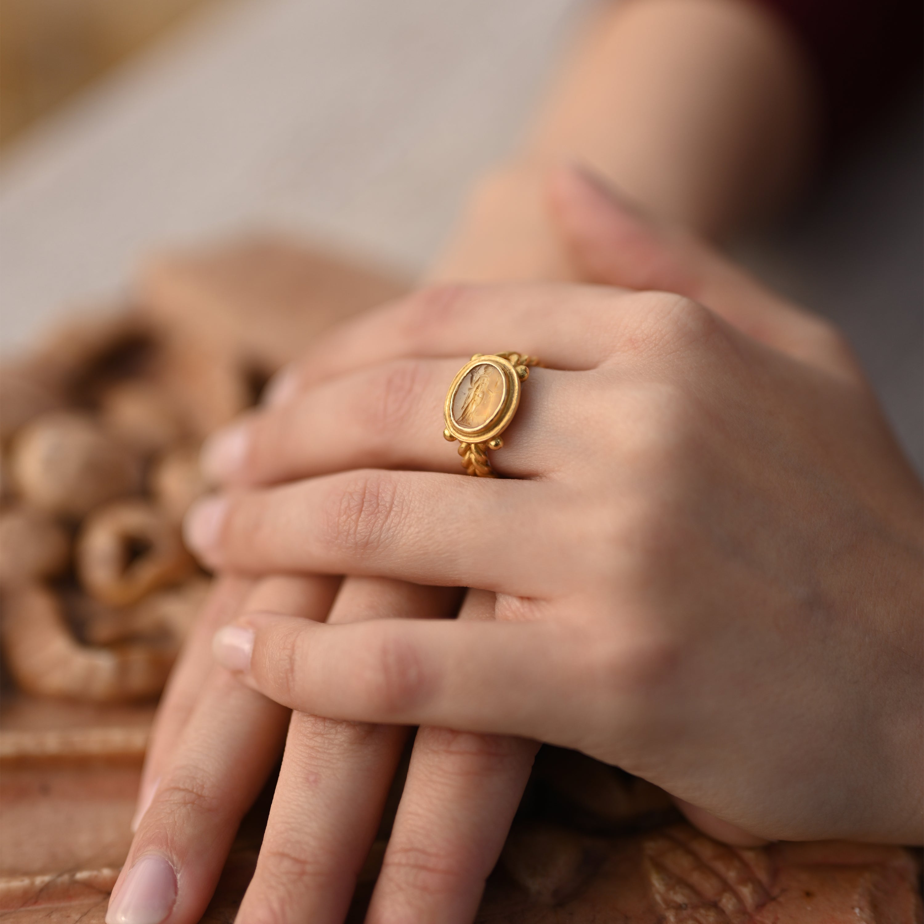 Our jewelry store, Serra Roma, proudly presents an exquisite collection that beautifully honors the ancient traditions of Greek and Roman civilizations. Each piece in our collection, including authentic ancient Roman and Greek coins and intaglios, is accompanied by a certificate of authenticity, providing proof of its historical significance and origin.